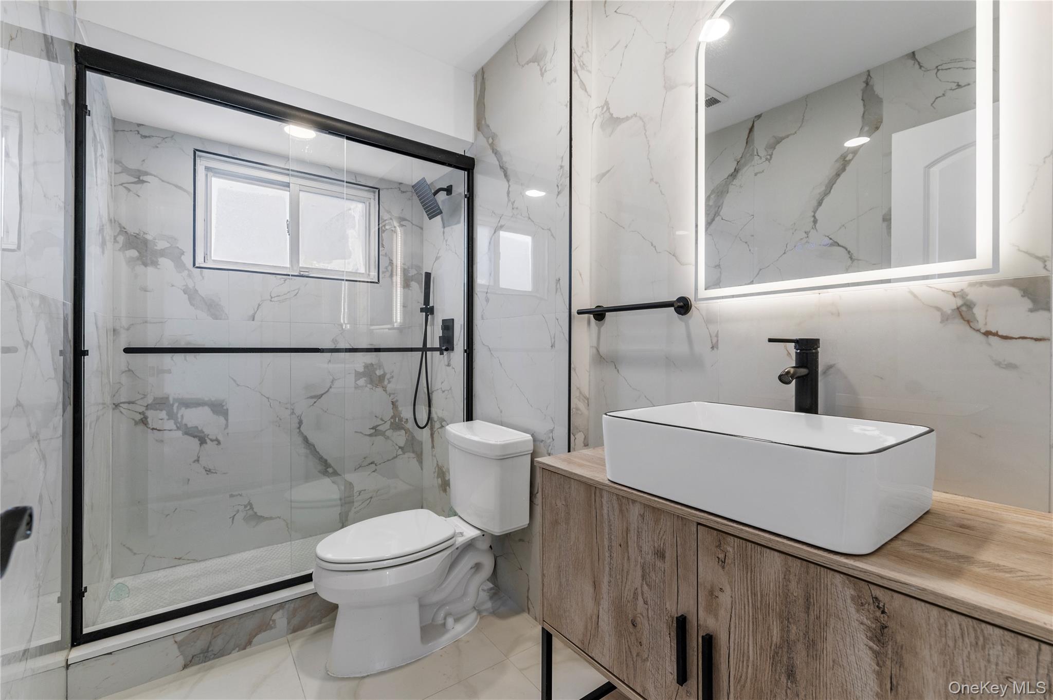 SIMPLY STUNNING!! This more than 3000 sqft living space plus addisional finished basement, meticulously gut-renovated residence is truly better than new, offering the perfect blend of comfort living and modern luxury. Step through the welcoming front porch into a sunlit foyer instantly setting the tone for the sophistication that defines the rest of the home. The main level features a beautifully open layout connecting the inviting living room, formal dining area, and a chef’s kitchen outfitted with top-of-the-line appliances with an 8 feet long center island. Just off the kitchen, a cozy breakfast nook overlooks the serene backyard and opens to a brand-new deck—ideal for morning coffee or effortless outdoor entertaining. Two spacious bedrooms and a stylish full bath complete the first floor, offering flexibility for guests or multigenerational living. Upstairs, discover three generously sized bedrooms, including a luxurious primary suite that serves as a true private retreat. The spa-inspired en-suite bath features a soaking tub, double vanity, and separate shower, accompanied by a walk-in closet to complete the sanctuary. Two additional spacious two en-suites complete the upper level, offering comfortable accommodations for your family. The fully finished basement provides outstanding flexibility for modern living and includes a beautifully bathroom—perfect for recreation, work, or guests. Outside, the fully fenced property provides a private, tranquil backdrop with an enormous deck. Additional highlights include a brand-new asphalt roof, new 6-inch glossy gutters, fully paid-off solar panels, 1 car plus garage with new driveway and high-end interior and exterior trim work, gas is avaiable—all contributing to the overall sense of thoughtful craftsmanship and refined elegance. Located just steps from the Willits Elementary School, H. B. Middle School, the library, and shopping, this home is truly a rare find. With its custom finishes, thoughtful design, and unmatched comfort, it offers a lifestyle of sophistication, convenience, and effortless living.