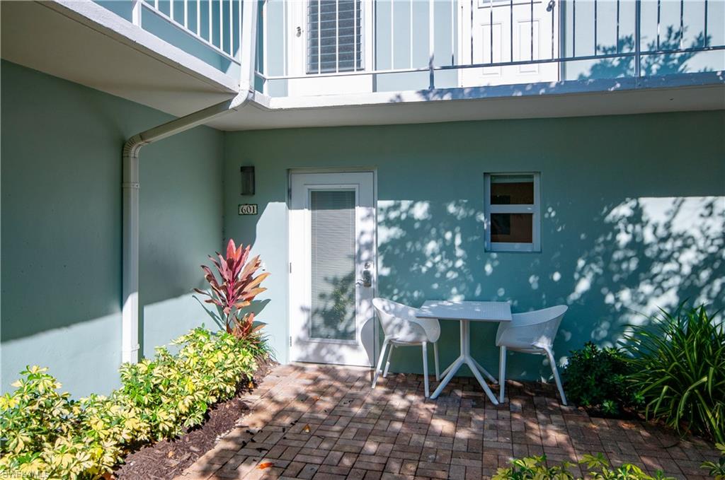 Lovely corner unit overlooking beautiful landscaping and yard! Newer kitchen and bathrooms, IN-UNIT laundry, new PVC pipes throughout condo, all new electric and electrical panel, new hot water heater, recently replaced compressor and coils in HVAC! Beautiful white kitchen, tile flooring throughout, enclosed flex room off the living room! This unit located at the end of a stunning courtyard with a little sitting area right outside the front door! Being offered turnkey furnished, just bring your personal items and start enjoying all of what Old Naples has to offer! Close proximity (1 block) to the City Dock, and 6 blocks to the beautiful sandy white beaches of the Gulf!