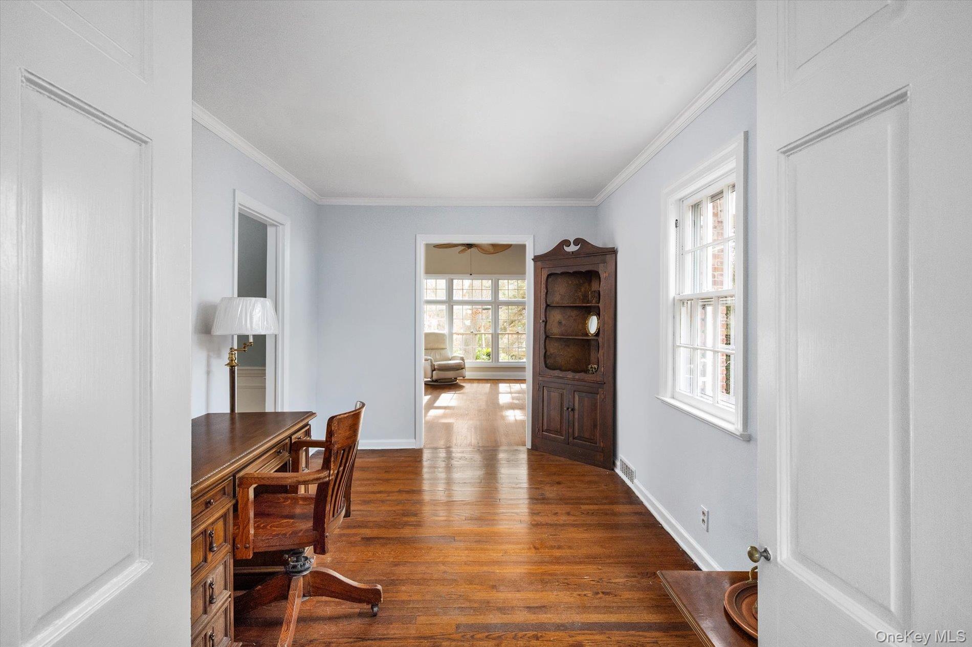 This classic colonial is located on a picturesque street in the village of Flower Hill, and has been meticulously maintained and updated throughout the years. This sunny home has original custom millwork, beautiful hardwood floors, and an inviting circular flow perfect for entertaining. The spacious and inviting living room has wood burning fireplace and original random width pegged oak floors leading to a charming room that is perfect as an office, music room or library. There is a graciously proportioned formal dining room Family room has cathedral ceiling with oversized windows overlooking the rear gardens and terrace. Sunny rear foyer with skylights connects the family room, dining room and kitchen to the outdoor entertaining terrace and patio . Kitchen has oak cabinets, new appliances and large breakfast area. The primary bedroom is generously proportioned with his and her closets and features new primary bath. The second bedroom offers privacy with an ensuite bath. Third and fourth bedrooms are beautifully sized with new hallway bath. There are two bonus rooms on the third floor with full staircase off the main hallway. The basement is a hidden treasure and features original recreation room with working brick fireplace, oversized windows, outdoor access, and large unfinished storage the full footprint of the home for a total of approximately 1300 square feet on the lower level. The property is perfect for entertaining with dining terrace and bluestone patio overlooking the private landscaped grounds. Award winning school district, close to both local shopping in town and Americana Manhasset, and walking distance to the Long Island Railroad. Great opportunity to make this beautiful classic colonial home your own!