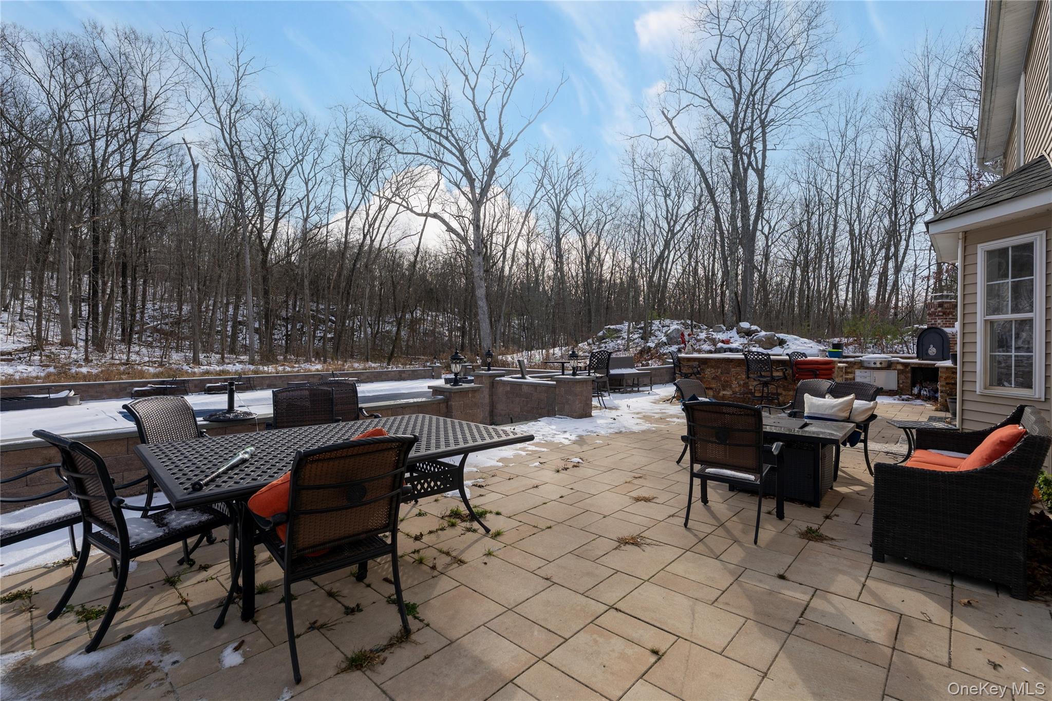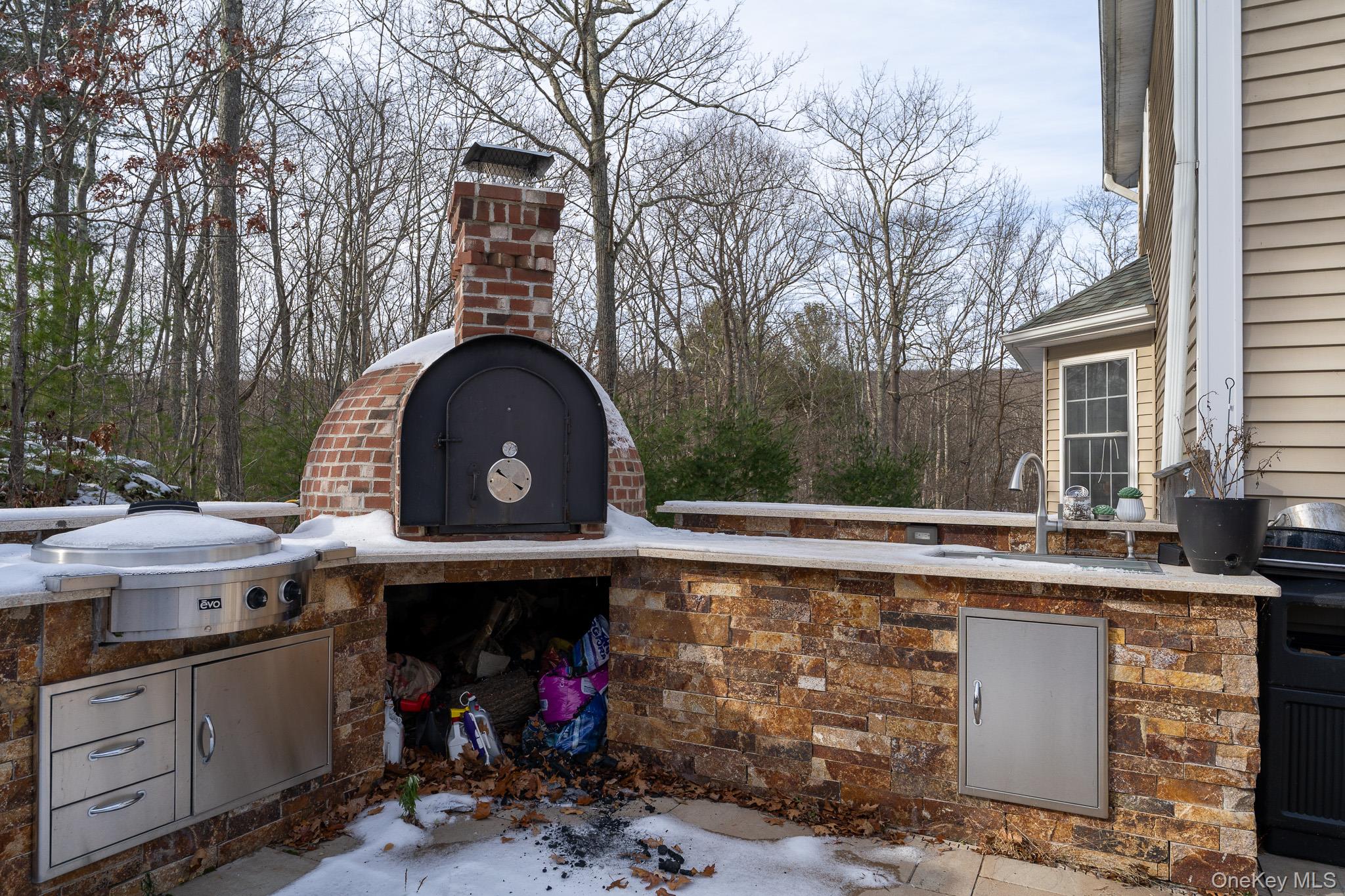 This property offers the perfect balance of privacy and convenience. The wooded backdrop creates a serene retreat, while the open floor plan and outdoor spaces make it perfect for gatherings. With its cathedral ceilings, formal dining room, and versatile office/den, Pride in ownership is clear in the outside entertainment area. 5, 000 sq ft of resort style patio with a beautiful inground pool with a built in jacuzzi. An exquisite outdoor kitchen with an oversized wood Burning brick oven for all your entertainment needs Complete privacy: Long driveway leads to a secluded setting surrounded by nature. Highlights include spacious layout: 4 bedrooms, 3. 5 baths, plus a first-floor office/den that can serve as a 5th bedroom. Elegant living room: Cathedral ceilings and large windows framing the wooded landscape. Family room with fireplace: Sliders open to the back deck for seamless indoor-outdoor living. Gourmet kitchen: Granite countertops, stainless steel appliances, solid wood cabinetry, and eat-in area with deck access. Outdoor amenities: Fire pit, hot/cold water outdoor shower, and expansive yard for entertaining. 3-car garage: Ample space for vehicles and storage. Built in 2005: Modern construction with timeless Colonial design.