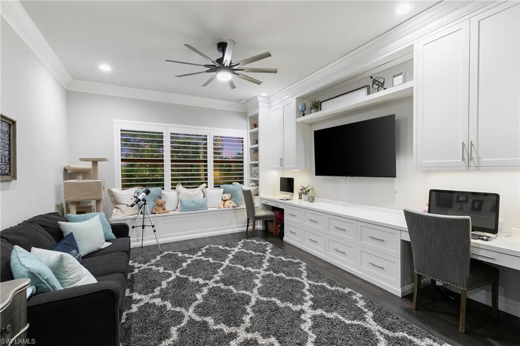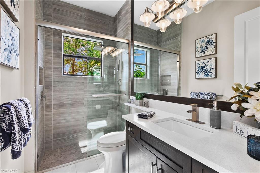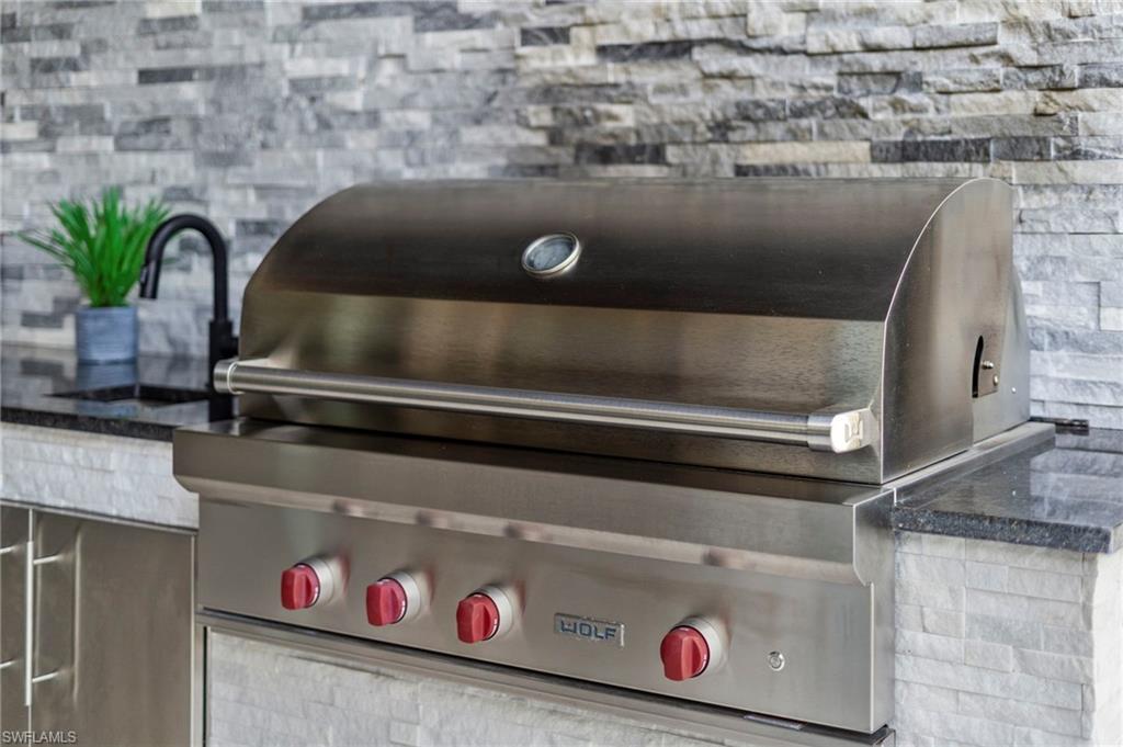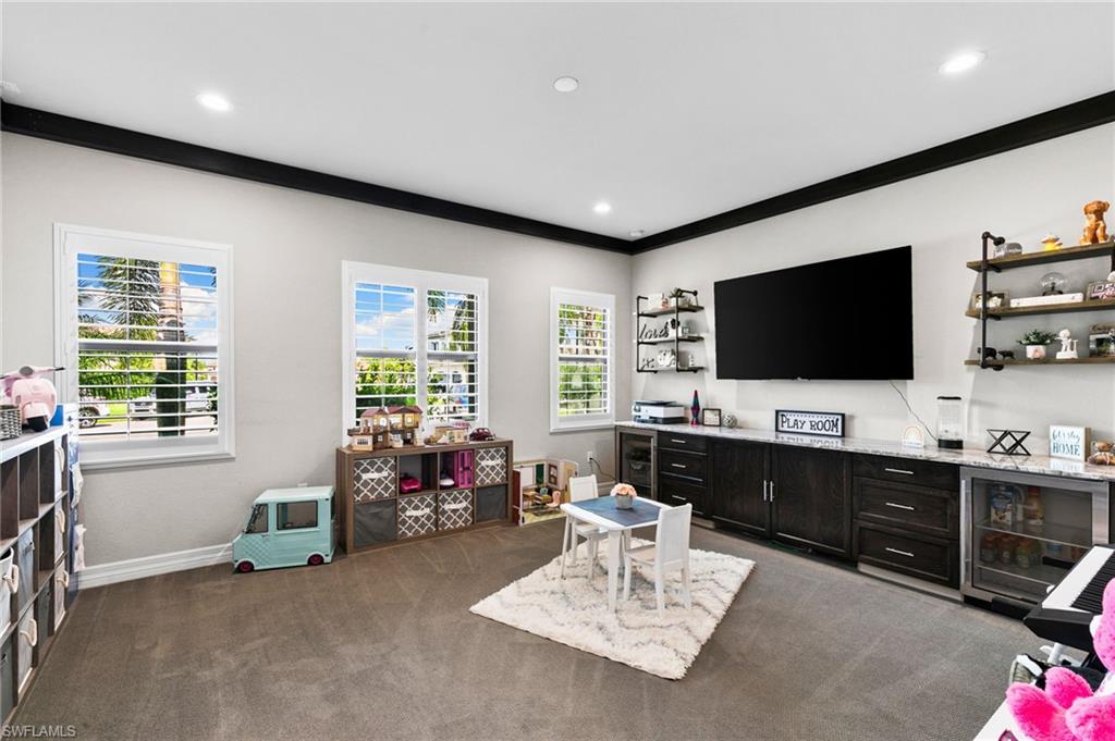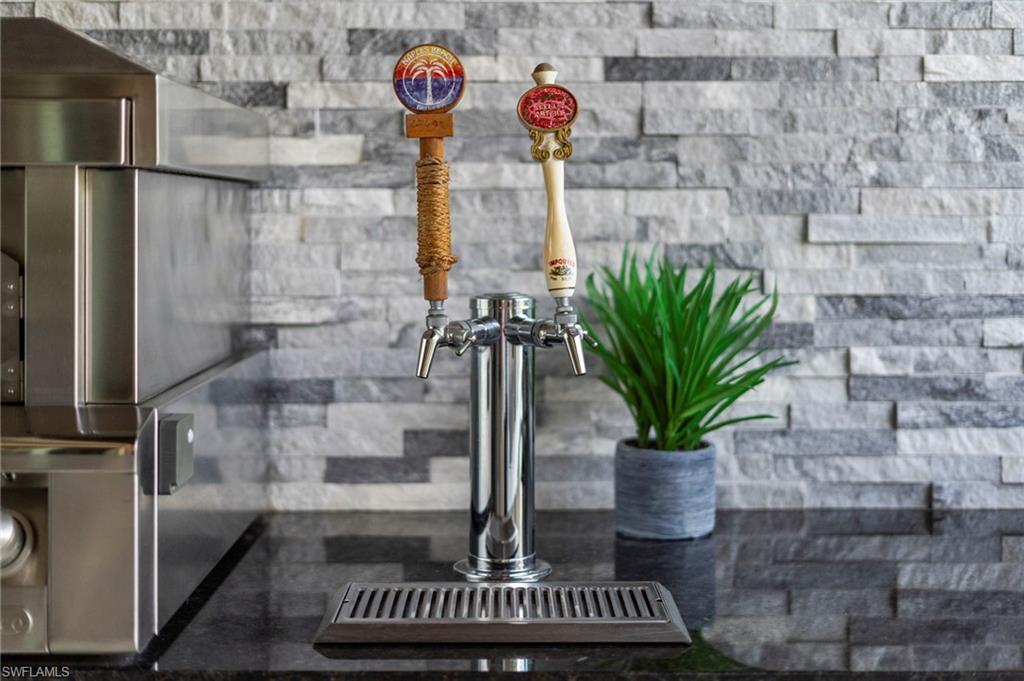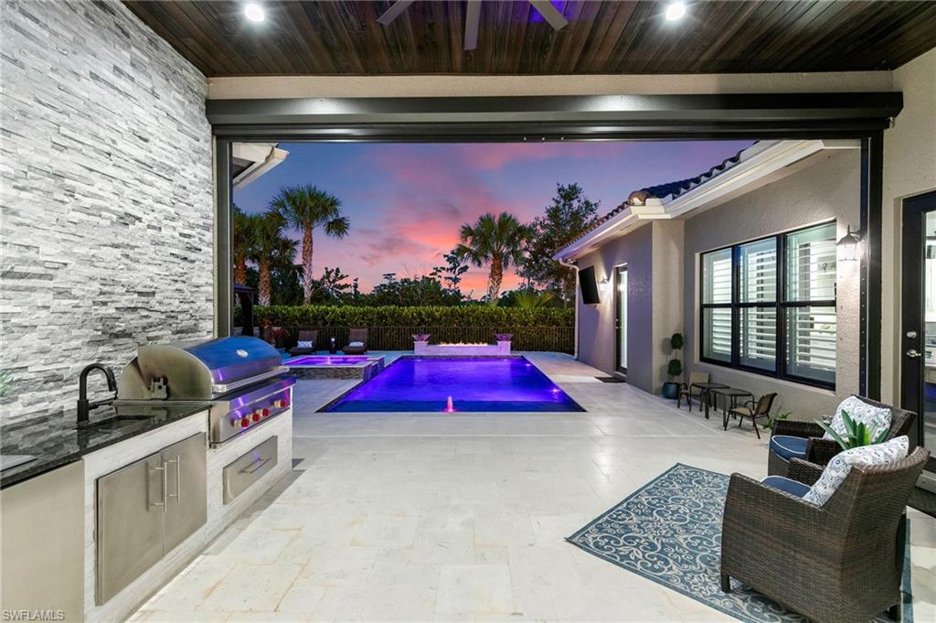 Set against a backdrop of exceptional privacy, this estate home unfolds around a striking outdoor retreat designed for year-round resort-style living. The expansive, fully fenced and professionally landscaped oversized lot showcases a custom pool & spa with dramatic fire & water features, a stone-paver lanai, motorized StormSmart screen, landscape lighting, a 12’ x 16’ gazebo, wood-paneled lanai ceiling, and a spectacular outdoor kitchen equipped with a 42” Wolf grill, Alfresco pizza oven, Perlick dual tab keg system, sink & Sub-Zero refrigeration—perfect for entertaining under the stars or enjoying sunny afternoons in your own private oasis. The home itself offers a seamless blend of architectural craftsmanship & thoughtful design. Spanning 3, 585 square feet, the flexible layout of the Charleston Grande includes three bedrooms, four full baths, a club room, and an expansive bonus room—allowing effortless conversion for additional bedroom space, home offices, play rooms, or media retreats to suit evolving lifestyles. Throughout the interior handcrafted millwork sets a sophisticated tone, including beams in coffered ceiling, 11. 5” crown molding, wainscoting, multiple custom built-ins, custom built closets, barn doors, and wood flooring in principal living areas. The crown jewel of the home is the gourmet chef’s kitchen featuring a professional-style appliance suite by Sub-Zero & Wolf, vented hood, pot filler, premium level V cabinetry, walk-in pantry cabinet, quartz counters & ambient lighting. A wine and coffee bar with a built-in Wolf coffee system, wine refrigerator, and custom cabinetry connects the living and dining areas—ideal for daily rituals or hosting. The primary suite comes complete with dual custom walk-in closets and a spa-inspired bath finished with marble floors, a Jacuzzzi soaking tub with custom stone accent wall, intelligent toilet/bidet system, and a premium Kohler DTV digital shower system. Every detail throughout the home reflects purposeful upgrades including, fully upgraded plumbing fixtures, elegant lighting and ceiling fans, programmable LED lighting, plantation shutters, a custom drop station, and extensive storage solutions. A well-appointed laundry room includes Electrolux pedestal W/D, cabinetry and sink. The three-car garage is finished with slat wall organization, overhead racks, a built-in workbench, and wall-mounted cabinetry. Residents enjoy the incredible lifestyle amenities of Stonecreek, featuring a grand clubhouse, resort & lap pools, state-of-the-art fitness center, indoor sports court, tennis and pickleball facilities, a splash pad, playground, and social gathering spaces. Ideally located in North Naples and zoned for A-rated schools, this exceptional setting offers close proximity to I-75, premier golf, upscale shopping and dining, and Naples’ celebrated white-sand beaches. This residence presents a rare opportunity to secure privacy, luxury, and the ideal SWFL lifestyle.