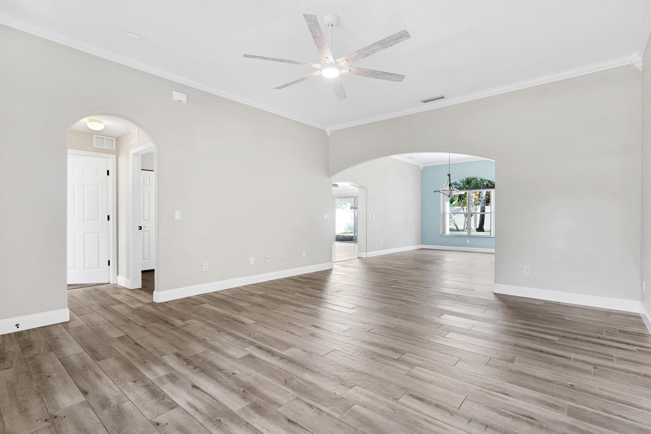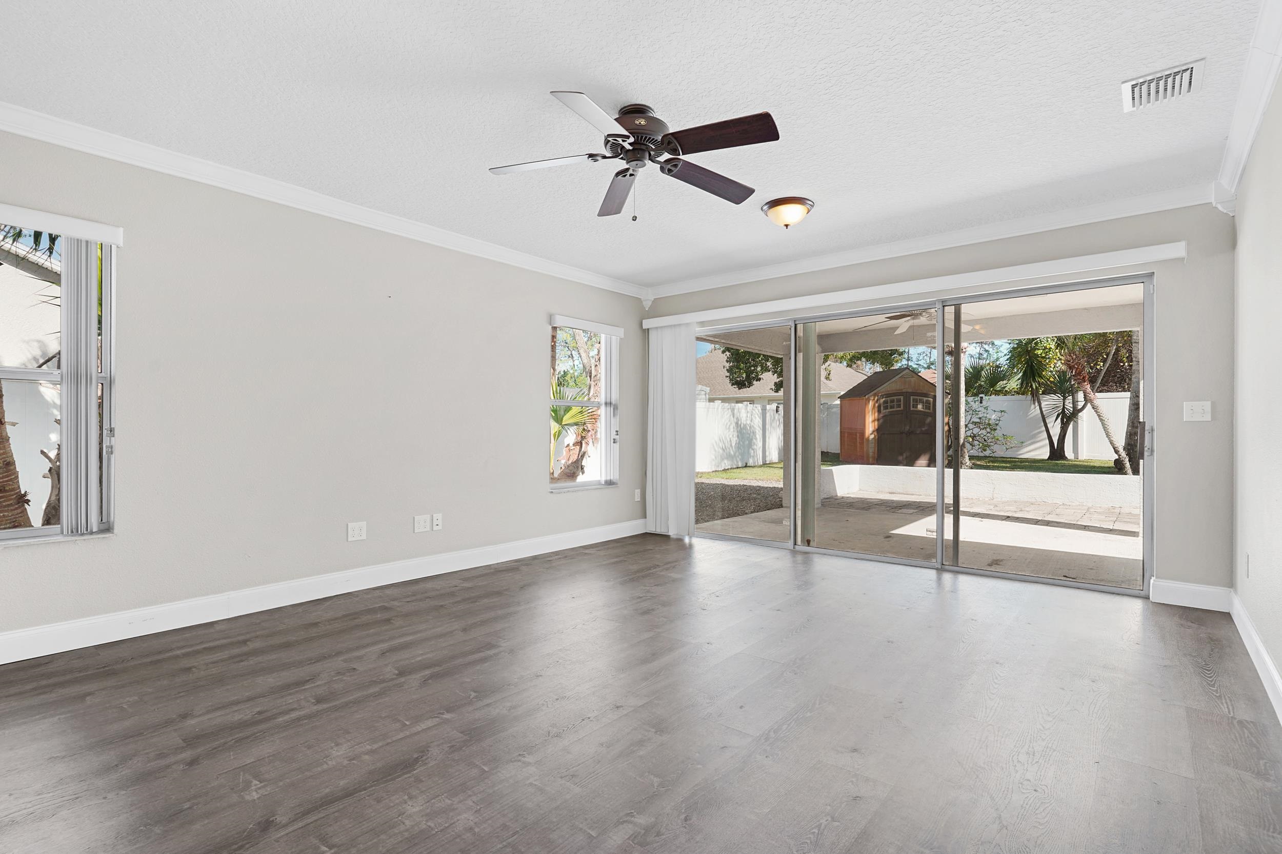 This beautifully maintained 1, 932 sq ft home sits on a generous . 29-acre homesite that backs up to a vacant parcel — offering added space, quiet, and privacy rarely found in the neighborhood. Originally built in 2003, the home enjoyed a thoughtful interior remodel in 2020, blending modern finishes with solid construction and long-term mechanical improvements already complete. Key Upgrades & Improvements You’ll Love: -2018 roof with a solar-powered attic fan for enhanced ventilation and efficiency -2020 hot water heater -New deep-well irrigation pump installed in 2021 — ideal for healthy landscaping with lower water costs -3-stage filtration system on the refrigerator water line for cleaner, better-tasting water -New HVAC installed July 2023 for trouble-free cooling and comfort in Florida weather Step inside to airy 10' ceilings throughout the living and dining rooms, creating an open, elegant sense of space. A comfortable family room anchors the heart of the home, beautifully set apart by 12' wide triple sliders that flood the area with natural light and provide seamless access to the outdoors — perfect for entertaining or relaxing. Outside, enjoy the tranquility of your oversized yard backing to undeveloped land — ideal for savoring coffee on the patio, gardening, or building your dream backyard oasis. Whether you’re looking for your first home, a retirement retreat, or a low-maintenance move-in ready property, this one delivers value and comfort from day one.