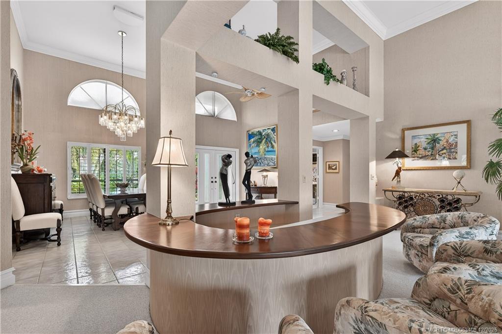 Renovated Custom Golf Home. 3 Ensuite Bedrooms plus Office. 3rd Bedroom/Guest Suite has been expanded from screen-enclosed patio with its' own A/C & Hot Water Heater. Open concept between Living Room, expanded Family Room, & Kitchen. Unique sunken Bar in Living Room. Granite Kitchen Counters & half-bath off Laundry. Full Hurricane window protection. Patio Deck includes Pool & extra-large Spa. "Private" yet with golf view. Must See! Located in Harbour Ridge Y&CC with 2 Championship Golf Courses, Tennis, Pickle Ball, Fitness Center, Salon, Doggie Park, Nature Trail & Clubhouse on the St. Lucie River.