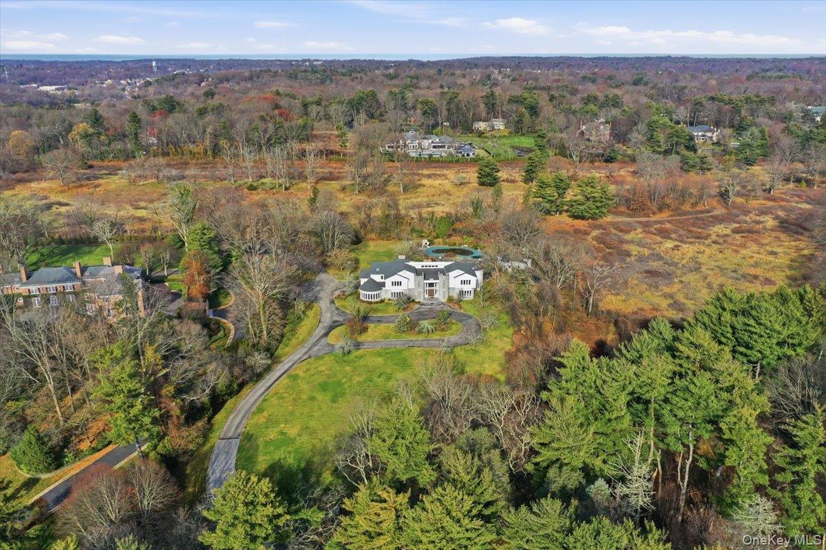 Nestled on a serene 3. 2 acre parcel in prestigious Old Brookville, this striking contemporary residence offers 8, 201 square feet of luxurious living space designed for modern comfort and grand scale entertaining. A private drive leads to the impressive home, showcasing clean architectural lines, expansive glass, and a commanding presence. Inside, the home features sun filled open spaces, soaring ceilings, and seamless indoor outdoor flow. Walls of windows capture views of the manicured grounds, while multiple living areas provide versatility for both intimate gatherings and large events. The chef’s kitchen, formal dining room, and spacious great room create a perfect setting for refined living. The estate includes multiple ensuite bedrooms, a serene primary suite, and dedicated spaces for work, fitness, or recreation. A rare detached guest house with a 4 car garage offers exceptional storage and car-collector appeal. Outdoors, enjoy resort-style living with a sparkling waterfall pool, generous patios, and expansive lawns ideal for entertaining, relaxation, and privacy. A true Old Brookville retreat, combining contemporary design with distinguished estate living.