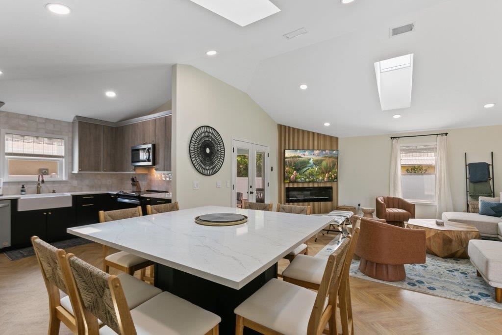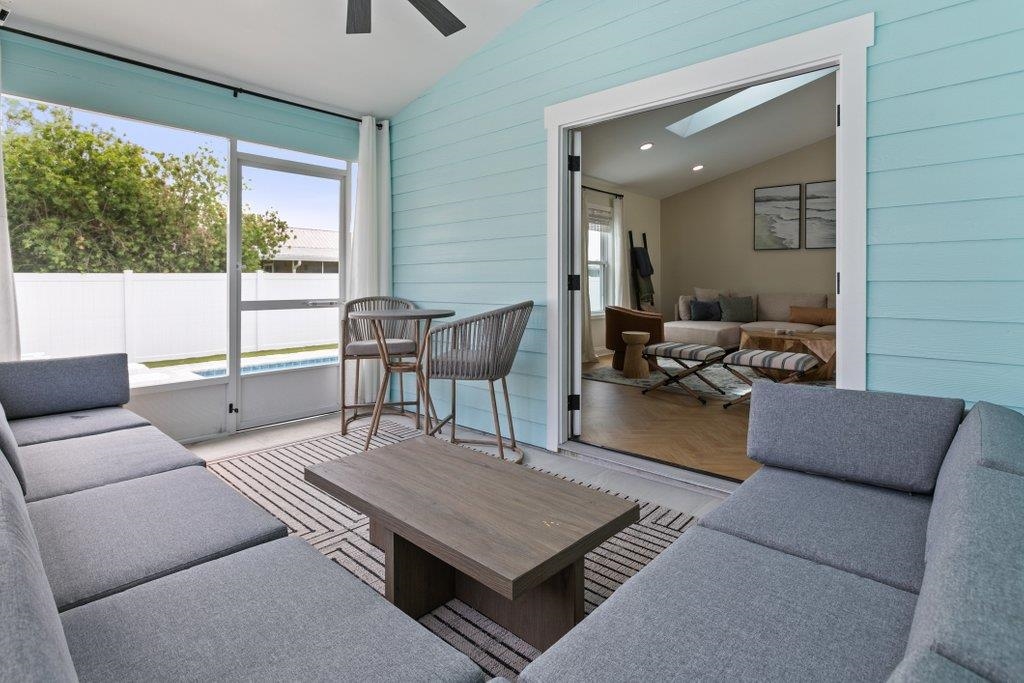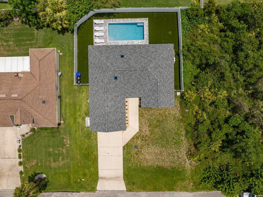 Beautifully updated 3BR/2BA home located just two blocks from Butler Beach. Offered with brand-new modern furnishings, this coastal retreat features a European-style kitchen and baths with sleek cabinetry and contemporary finishes. The primary suite boasts a spa-like bathroom with step-in shower, freestanding soaking tub, and modern fixtures. Light and airy interiors are enhanced by skylights and stylish beach-inspired décor. Enjoy an electric fireplace, screened porch, and private backyard with saltwater pool and paver patio—perfect for relaxing or entertaining. 2 Car garage was converted to a game room with AC/Heat but can easily be converted back. Ideal as a primary residence, 2nd home, or short term rental. Frank Butler Public Park offers a public boat ramp to the Intracoastal Waterway, picnic tables and is 2 blocks away. With dining, shopping, and amenities nearby, this home offers the perfect coastal lifestyle. Turnkey, completely furnished including linens, silverware etc. Come home all salty from the beautiful Butler beach and its no problem with the outdoor shower at your disposal. Dates of improvements. Pool 2025, water heater 2025, roof 2023, Furniture & Appliances 2025, Pool is maintained weekly. Ring camara and security system convey.