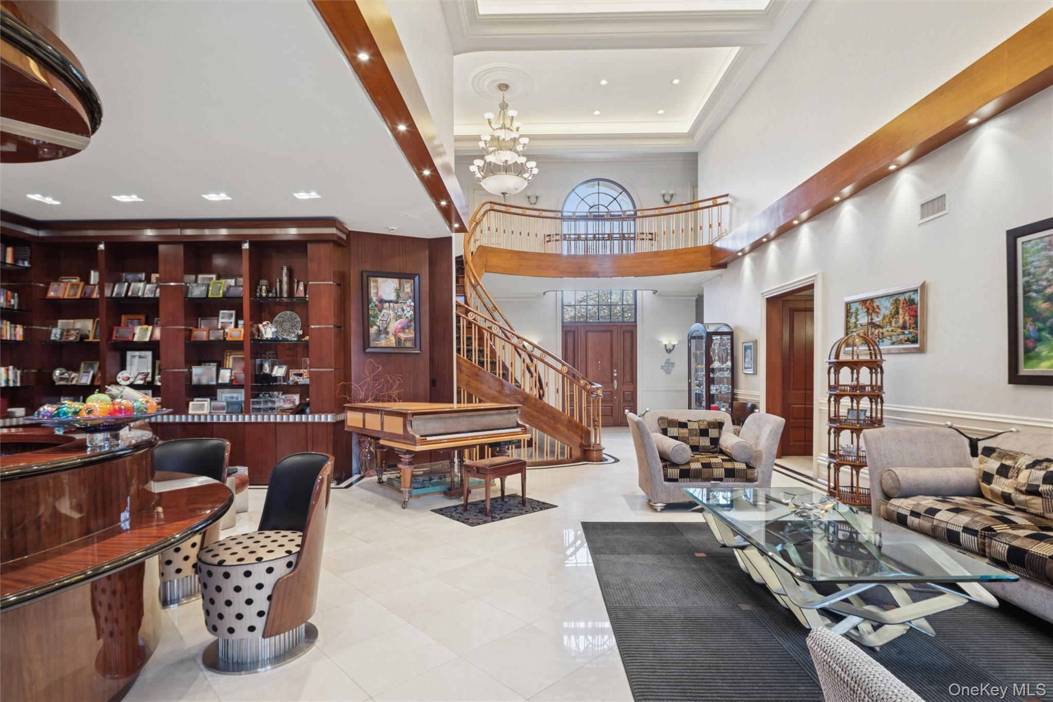 Welcome to this magnificent custom designed Estate! This prestigious brick colonial set on over an acre is in the exclusive village of Woodsburgh. This one of a kind home features 9 bedrooms, 9 full bathrooms, 3 half baths, and is perfectly designed for grand entertaining! Arrive through a stately circular driveway, flanked by two separate two-car garages (4 total) positioned on either side of the residence. Enter the breathtaking expansive foyer with soaring ceilings and experience the elegance of luxury living. With an open floor plan and attention to detail the home showcases 10 foot ceilings and 22 feet in the grand living room which boasts an adjacent library. The first floor features a primary suite that offers dual ensuite bathrooms, 2 home offices, as well as a guest suite. The heart of the home is the chef's eat in kitchen, which seamlessly flows to a great room and oversized formal dining room, ideal for hosting gatherings of any size. The sweeping staircase leads to the second floor, designed for comfort and privacy with 6 generously sized bedrooms and 5 bathrooms. Throughout the level, you'll find an abundance of closet space and sitting areas to gather. The massive walkout basement, provides a bedroom and 2 bathrooms. It is an entertainers paradise complete with a full recreation area, an indoor endless lap pool and gym. There is even an event space with custom bar and kitchen. Additional features include 2 laundry rooms, an elevator to all 4 floors and a dumb waiter. The excitement continues outside with a gunite salt water pool and hot tub, sports court, large patio and landscaped grounds. Built for both comfort and leisure, this Woodsburgh home truly has it all. Make this dream home your dream come true home! Do not miss this one! Too much to list but no detail has been missed.