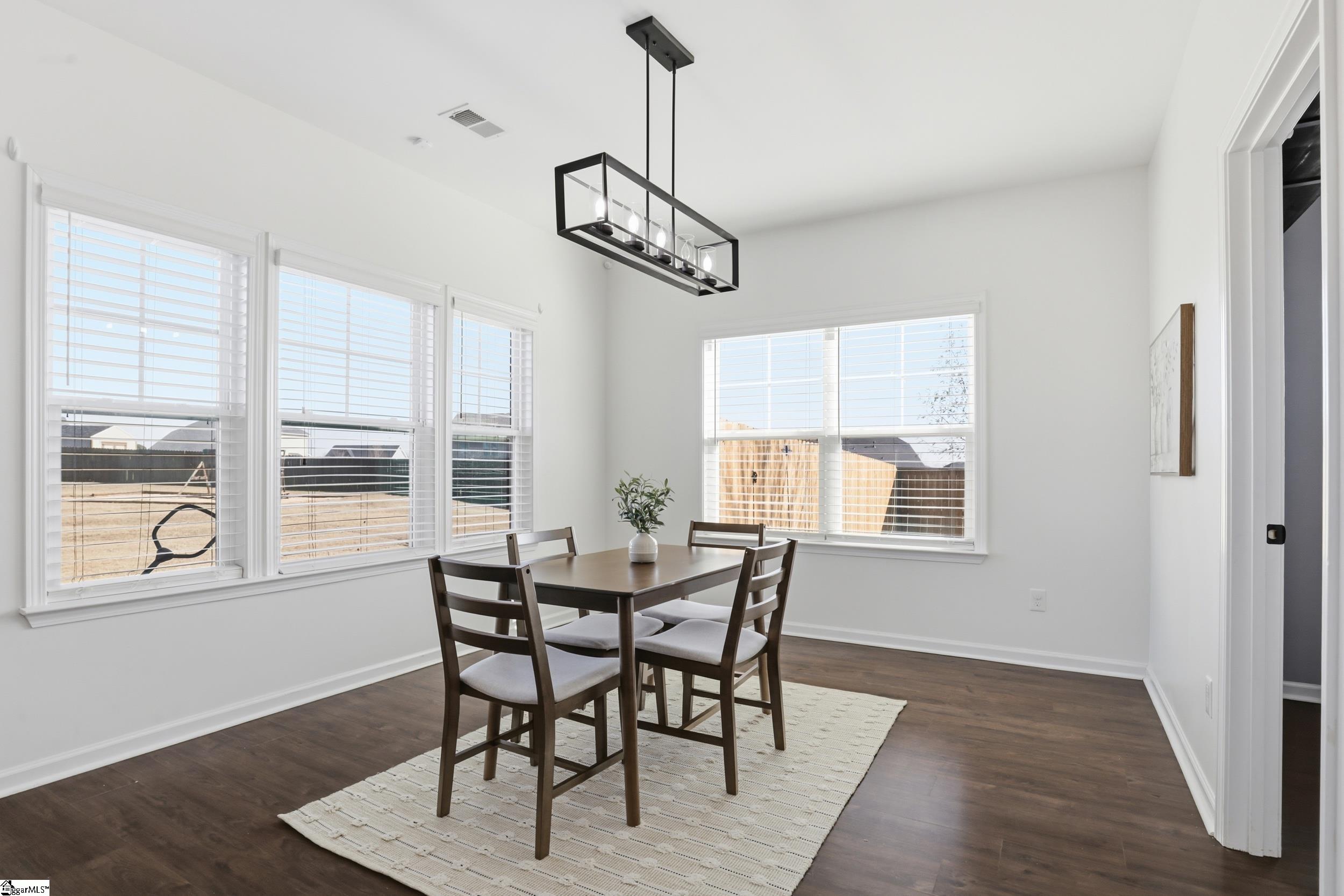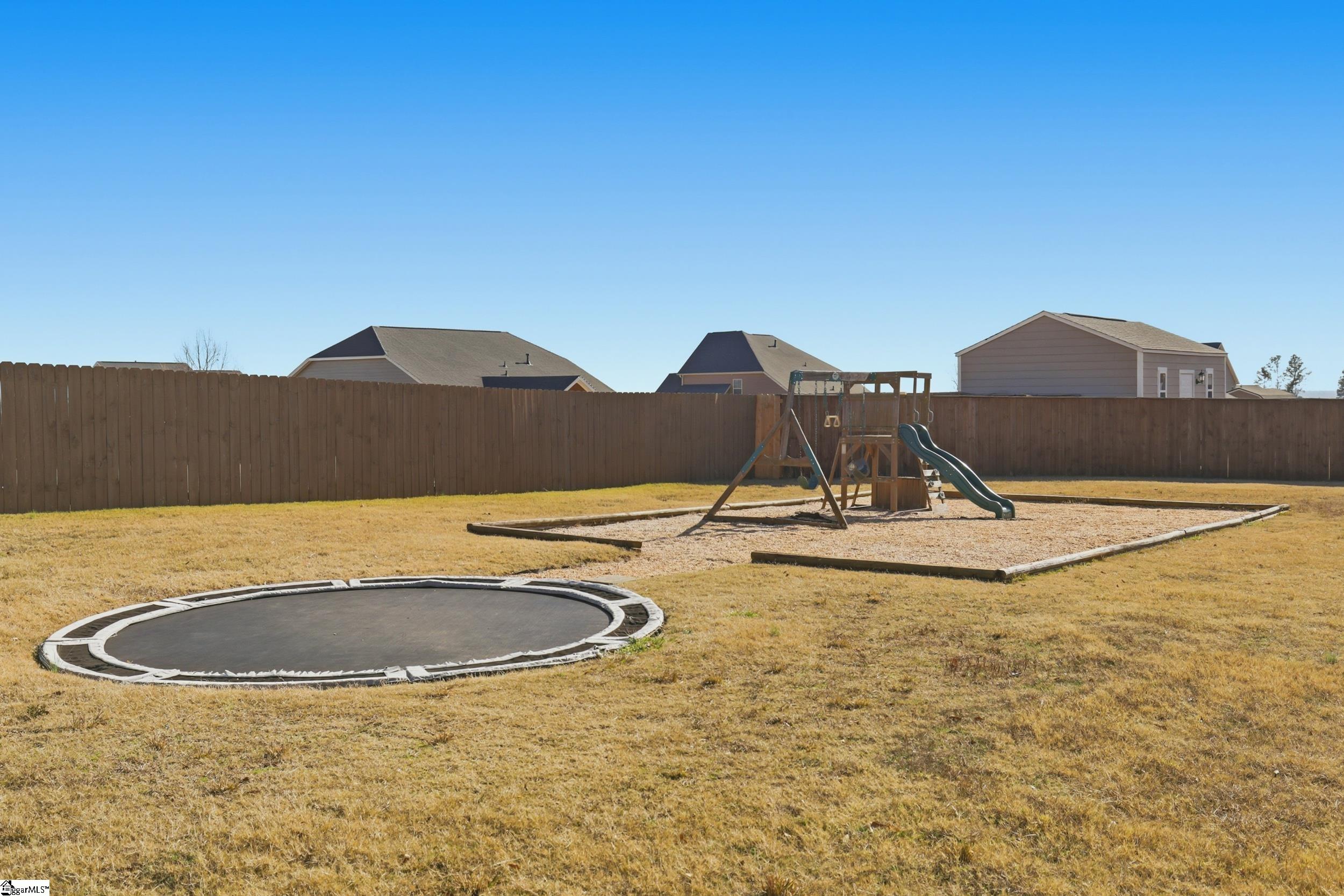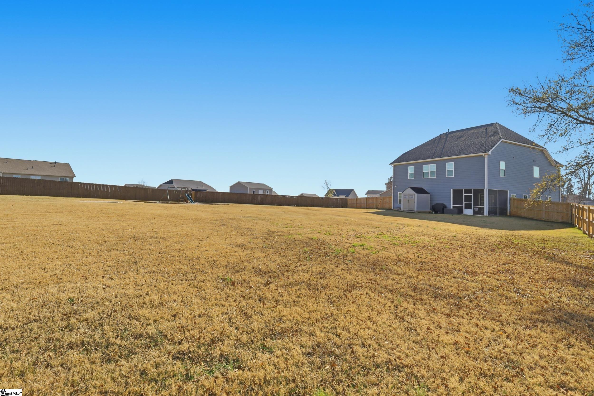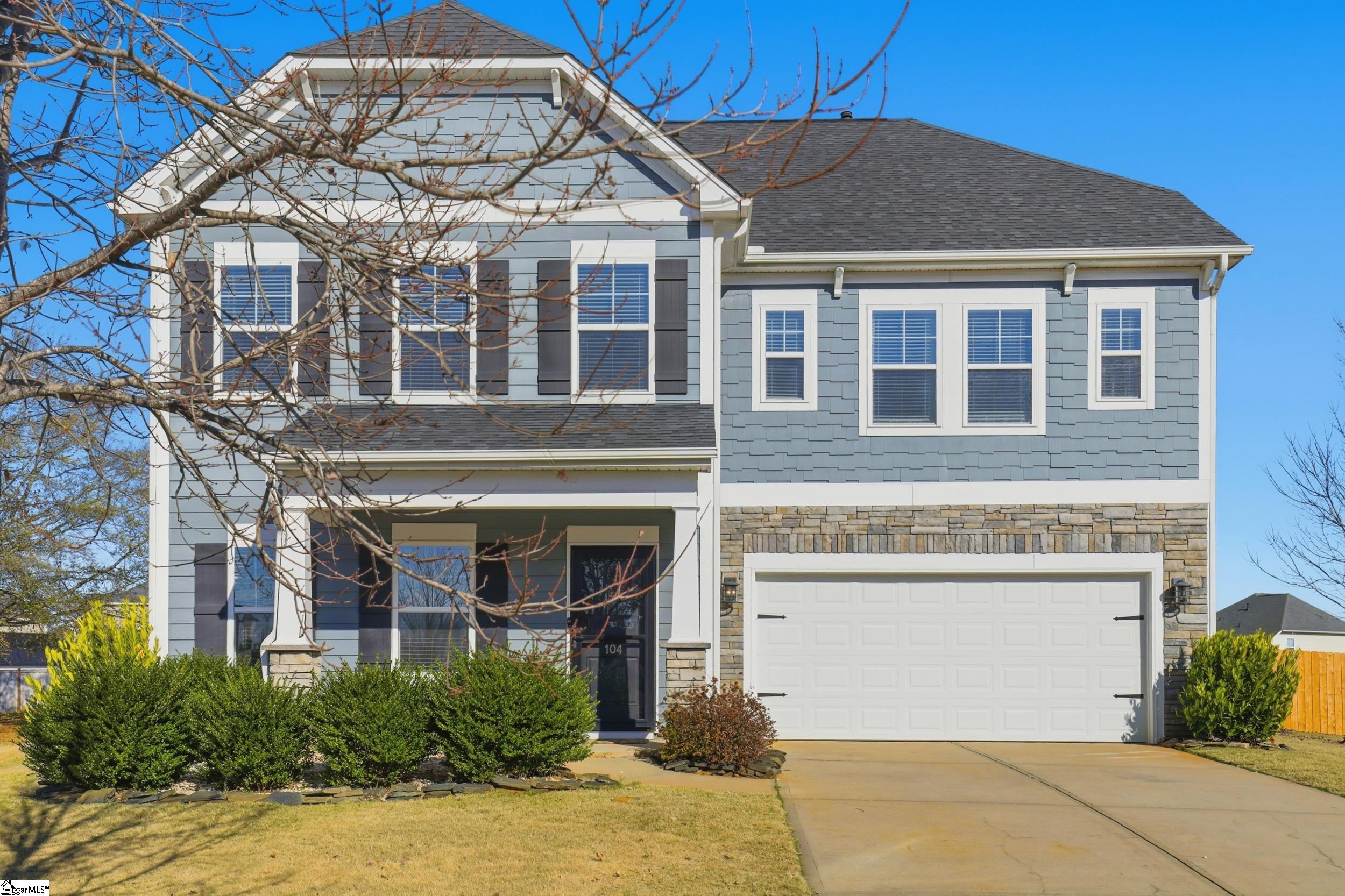 Welcome to 104 Upland Drive - a beautifully updated residence tucked away at the end of a private cul-de-sac, in the coveted Hunt Meadows community! This five-bedroom, three-and-a-half-bath home sits on a perfectly level half-acre lot, complete with a brand-new fence, playset, and in-ground trampoline—an ideal outdoor haven for both relaxation and play! Inside, the home feels fresh and modern thanks to a long list of thoughtful upgrades: new interior paint throughout, updated door and cabinet hardware, new bathroom countertops, mirrors, light fixtures, and faucets, plus new ceiling fans, a brand-new range, and a new dishwasher. The main level welcomes you with an airy yet cozy layout. A striking feature wall sets the tone as you enter, leading to a living room warmed by a gas log fireplace and opening onto a serene screened-in porch. A charming powder bath, spacious formal dining room with elegant coffered ceilings, and beautiful architectural accents make the main level both functional and inviting. The lovely kitchen features quartz countertops, subway tile backsplash, gas range, shiplap touches, under-cabinet lighting, and an oversized bar perfect for gathering. A sunny breakfast nook and a versatile flex room nearby provide endless options for dining, working, or unwinding. Upstairs, the expansive primary suite offers a private retreat with dual vanities, a garden tub, walk-in shower, private water closet, and an oversized walk-in closet. Four additional bedrooms and two full baths ensure ample room for family or guests, while an additional flex space serves beautifully as a playroom, media room, or home office. With unbeatable access to Easley, Greenville, shopping, dining, and highly rated Hunt Meadows and Wren schools, this home offers the perfect blend of comfort, and convenience. Come experience all that 104 Upland Drive has to offer—schedule your showing today!
