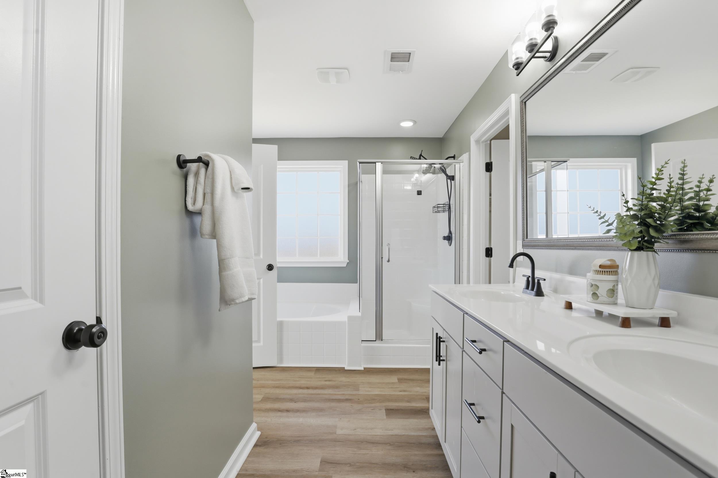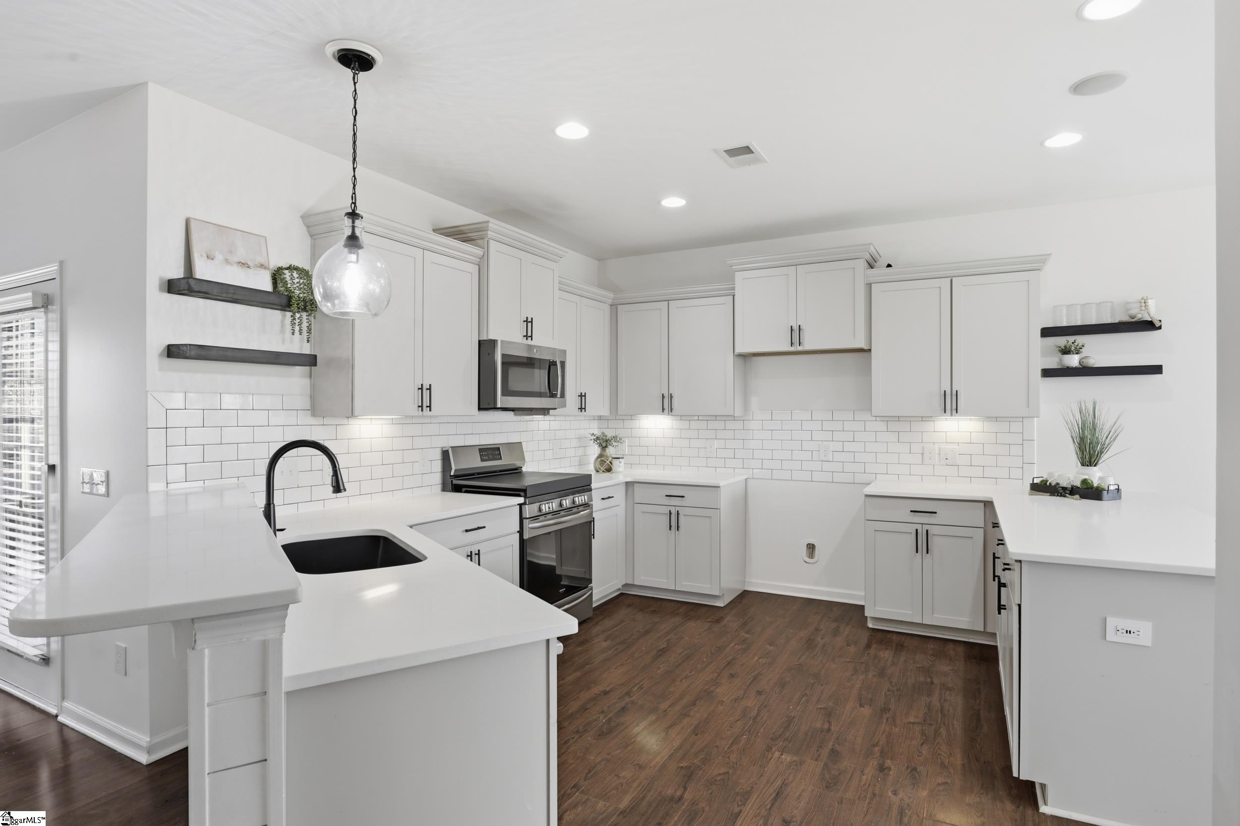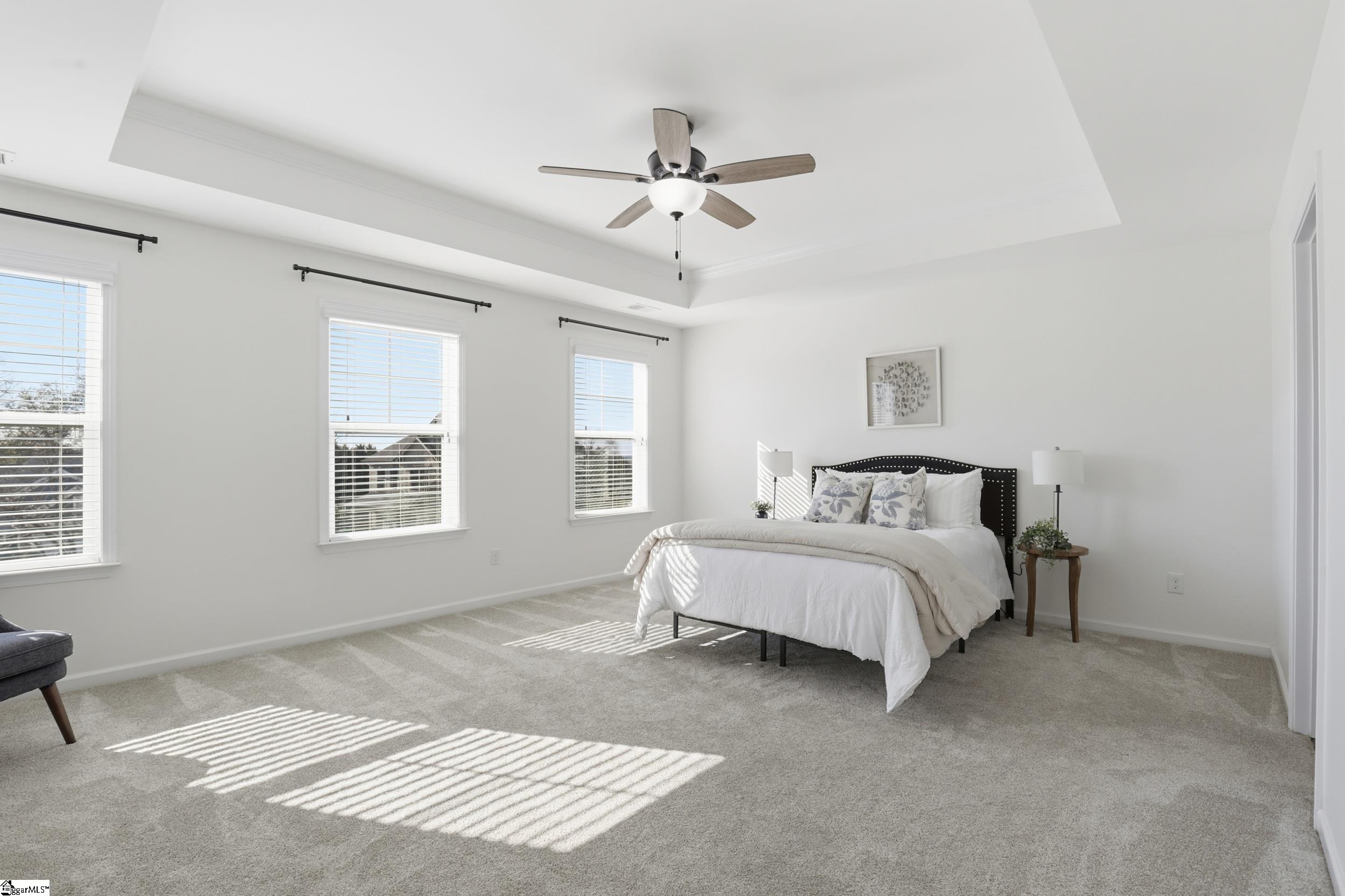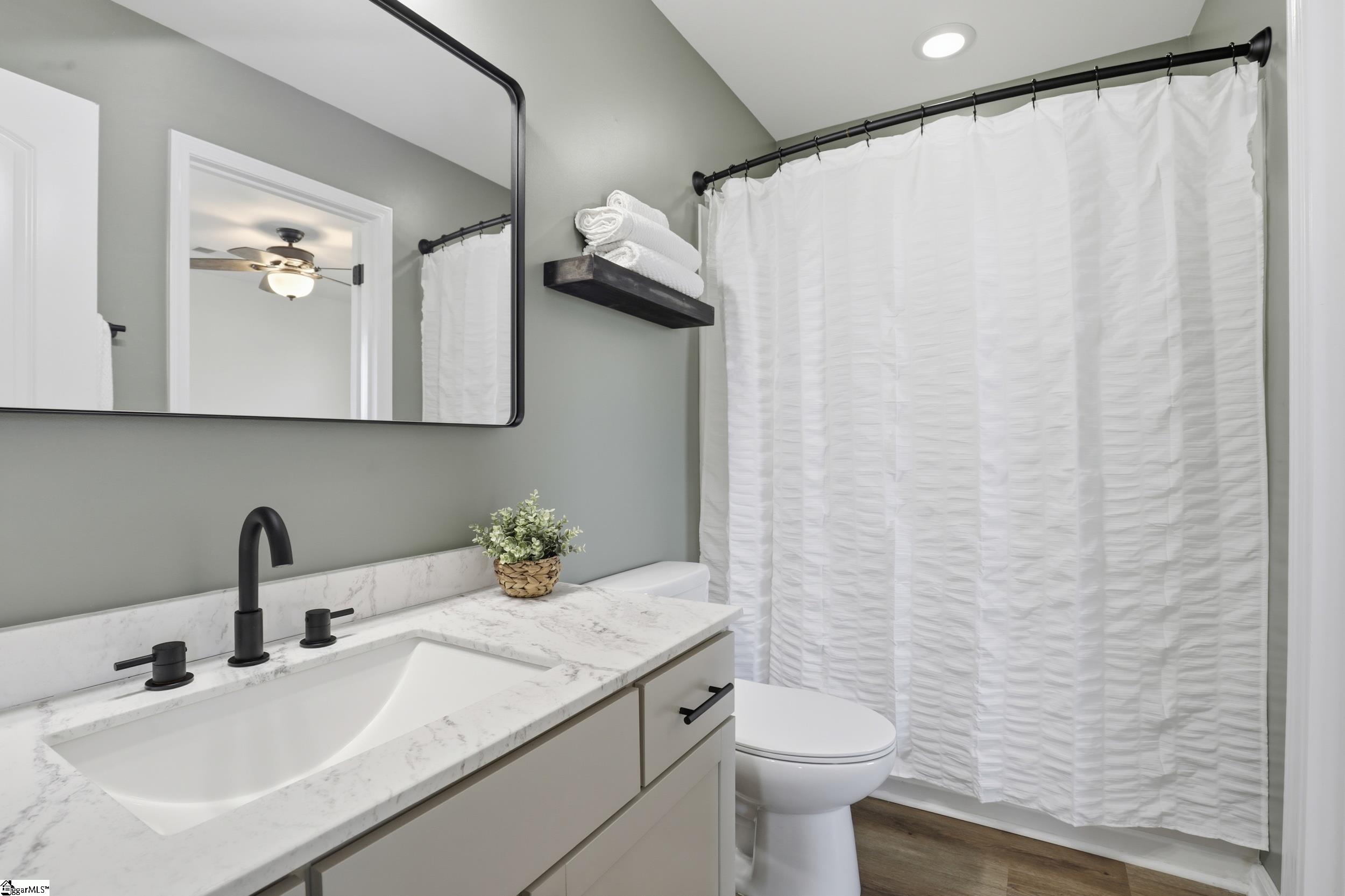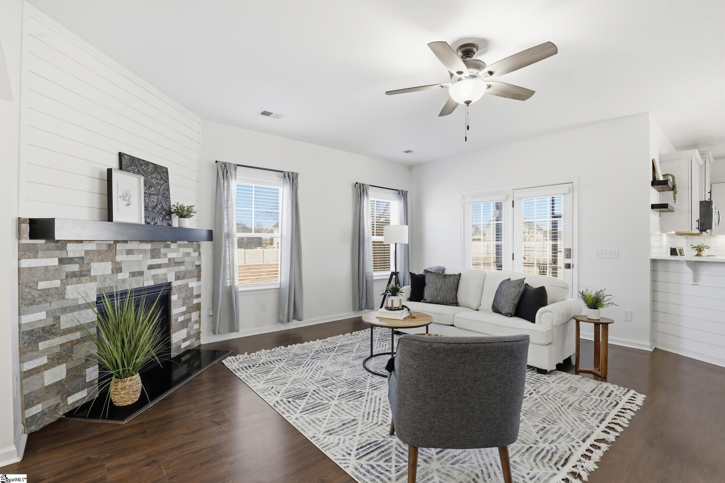 Welcome to 104 Upland Drive - a beautifully updated residence tucked away at the end of a private cul-de-sac, in the coveted Hunt Meadows community! This five-bedroom, three-and-a-half-bath home sits on a perfectly level half-acre lot, complete with a brand-new fence, playset, and in-ground trampoline—an ideal outdoor haven for both relaxation and play! Inside, the home feels fresh and modern thanks to a long list of thoughtful upgrades: new interior paint throughout, updated door and cabinet hardware, new bathroom countertops, mirrors, light fixtures, and faucets, plus new ceiling fans, a brand-new range, and a new dishwasher. The main level welcomes you with an airy yet cozy layout. A striking feature wall sets the tone as you enter, leading to a living room warmed by a gas log fireplace and opening onto a serene screened-in porch. A charming powder bath, spacious formal dining room with elegant coffered ceilings, and beautiful architectural accents make the main level both functional and inviting. The lovely kitchen features quartz countertops, subway tile backsplash, gas range, shiplap touches, under-cabinet lighting, and an oversized bar perfect for gathering. A sunny breakfast nook and a versatile flex room nearby provide endless options for dining, working, or unwinding. Upstairs, the expansive primary suite offers a private retreat with dual vanities, a garden tub, walk-in shower, private water closet, and an oversized walk-in closet. Four additional bedrooms and two full baths ensure ample room for family or guests, while an additional flex space serves beautifully as a playroom, media room, or home office. With unbeatable access to Easley, Greenville, shopping, dining, and highly rated Hunt Meadows and Wren schools, this home offers the perfect blend of comfort, and convenience. Come experience all that 104 Upland Drive has to offer—schedule your showing today!