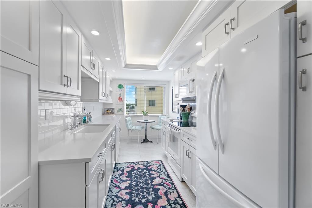 Perfectly positioned between Venetian Bay and the Gulf, this sixth-floor residence at Harborside West in The Moorings offers a peaceful retreat with tasteful finishes, featuring 3 bedrooms, 2. 5 baths, and 1, 702 square feet of living space. Enjoy beautiful sunrises, panoramic bay views, dolphins at play, and tranquil breezes from the spacious glass enclosed lanai with versatile sliding windows. The split-bedroom floor plan provides privacy and comfort with en-suite bathrooms and generous closets in both the primary and guest suites, while the third bedroom may also serve as an office and is conveniently located near the well-appointed half bath. The kitchen offers upgraded custom cabinetry and abundant natural light. Additional conveniences include two deeded parking spaces, one under the building, and one under the detached carport, and an extra storage closet. Harborside West provides exceptional amenities including a beautifully renovated social room with a full kitchen, fitness room, heated pool, grill area, library, hobby room, fishing pier, bike storage, and vehicle wash area, all within a friendly, secure building with on-site management. Ideally located within walking distance of Venetian Village and just across the street from beach access, residents may also join the Moorings Homeowners Association for private beach access.