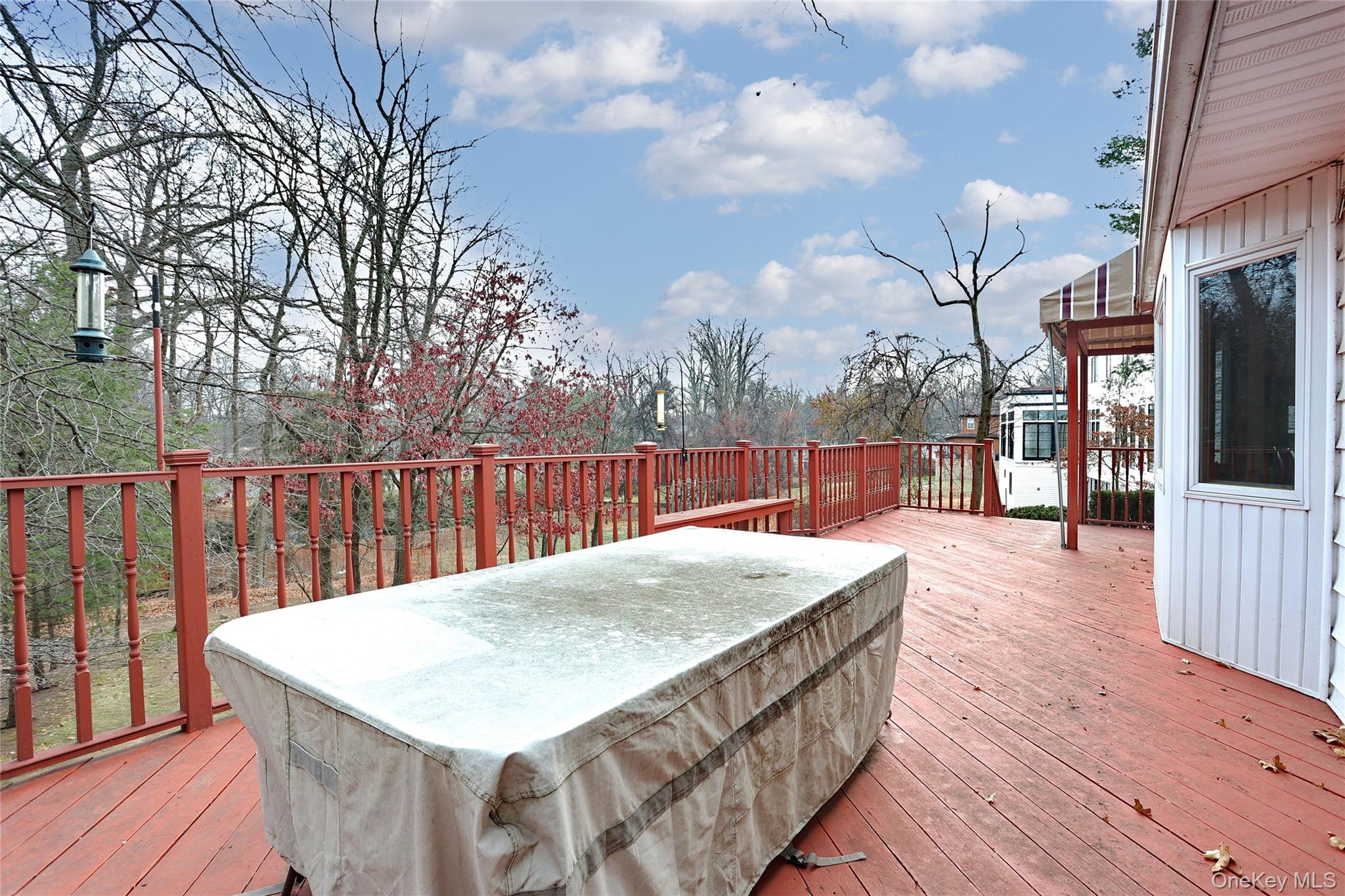 Monsey! Beautifully cared-for extended Jardin Hills Split situated on a quiet street. Features a spacious kitchen with loads of cabinetry, granite counters, two sinks, and tiled flooring. Beautiful oversized deck with retractable awning overlooking an expansive, private yard—perfect for outdoor enjoyment. Inside, enjoy a warm and inviting living room with a brick fireplace and an oversized dining room that easily seats 20. Upstairs offers 4 bedrooms and beautifully updated bathrooms. The lower level includes a generous family room and an additional bedroom or study. A wonderful home with room for everyone!