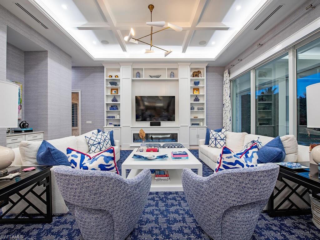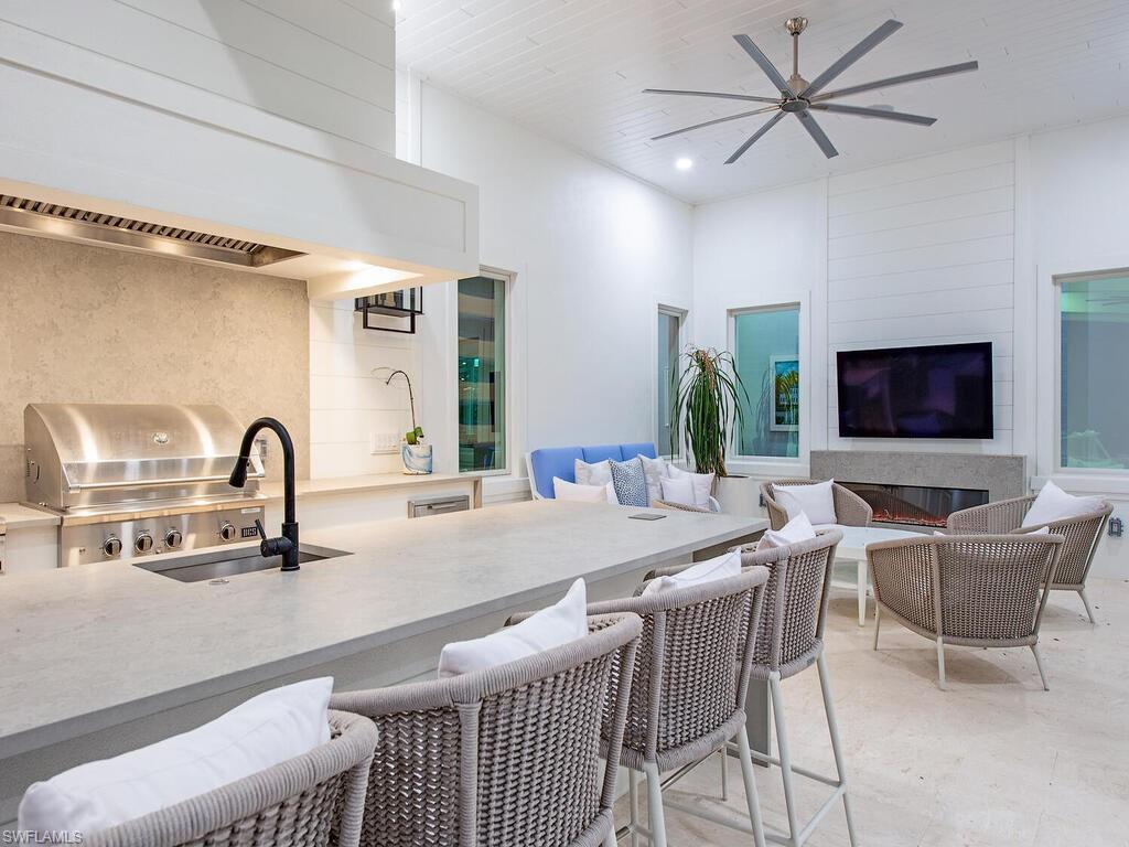Situated in prestigious Pine Ridge Estates, this exceptional residence epitomizes luxury living. Set on a sprawling 1. 72-acre corner lot with two driveways and lush landscaping, the home features a gourmet kitchen with Sub-Zero and Wolf appliances, Quartzite island, walk-in wine cellar, and abundant custom cabinetry. The dramatic living room boasts 27-foot ceilings, a sleek wet bar, and seamless indoor-outdoor flow. A formal dining room overlooks the expansive backyard oasis. The elegant primary suite offers dual walk-in closets and an opulent en-suite bath with soaking tub, walk-in shower, dual vanities, and abundant natural light. A stylish den provides a serene workspace. Upstairs, four spacious bedrooms are accessible via a private elevator or twin staircases, along with a cozy family room, loft, and second laundry area. Outside, enjoy your private resort: a 24’ x 43’ pool with sun shelf and spa, outdoor fireplace, full cabana kitchen, and covered lanai perfect for entertaining. The climate-controlled 5-car garage offers ample storage. Just minutes from Mercato and a short drive to Waterside Shops and downtown Naples, this refined estate is the ultimate dream home.