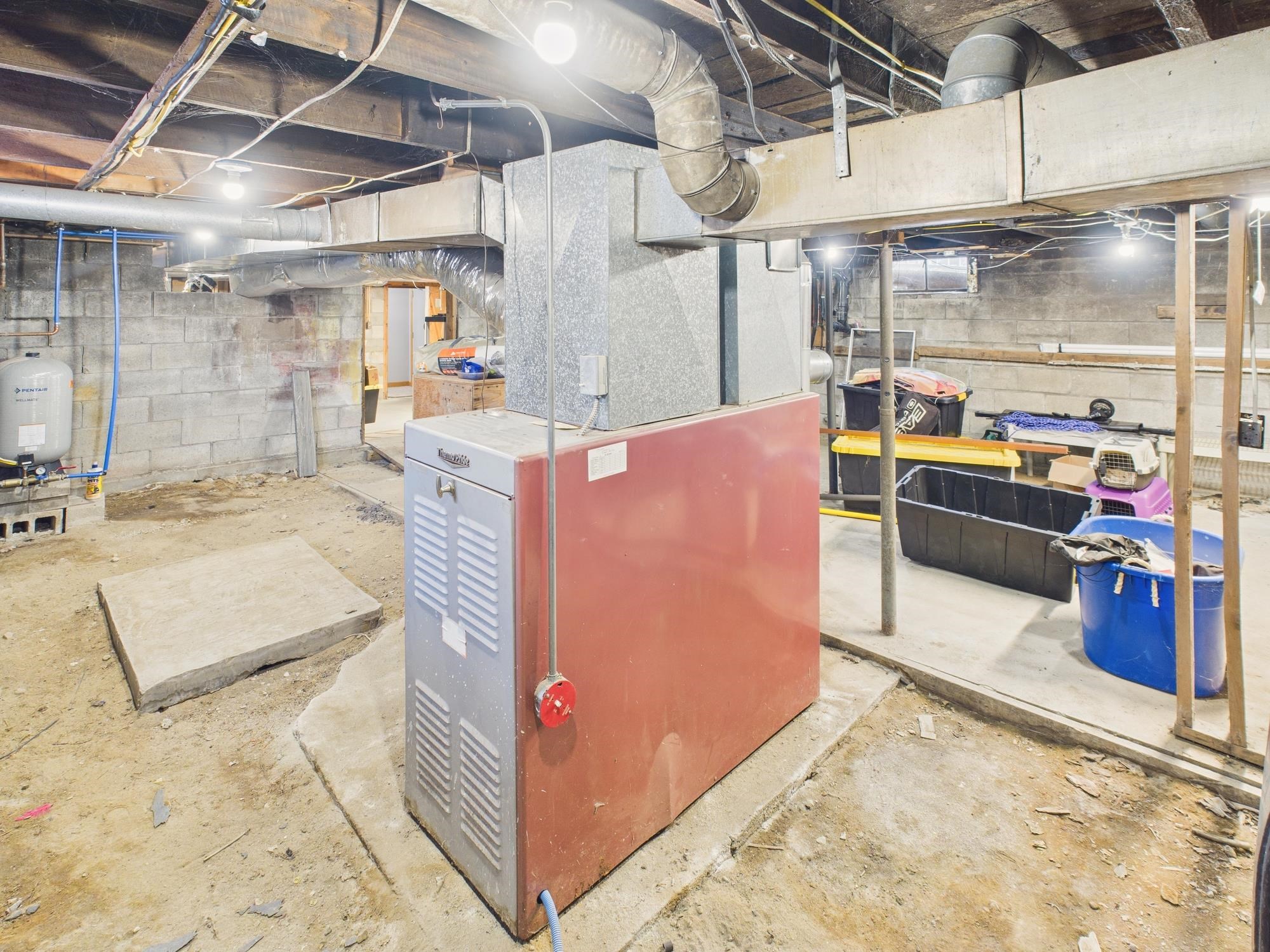 Opportunity knocks! Own a charming, affordable ranch on a spacious 7. 8-acre parcel of rolling land. This inviting home is designed for easy single-level living, featuring three comfortable bedrooms and two full bathrooms. The practical eat-in kitchen with an island flows smoothly onto the back deck for enjoyable outdoor meals. The primary bedroom offers a spacious, two-room retreat with a private en-suite featuring a step-in shower. Two additional bedrooms and a full bath round out the main level. A dedicated dining room is perfect for entertaining. Need extra space? Discover a finished bonus room in the basement and potential in the partially finished attic. The expansive yard is ready for your vision. Plus, benefit from included solar panels!