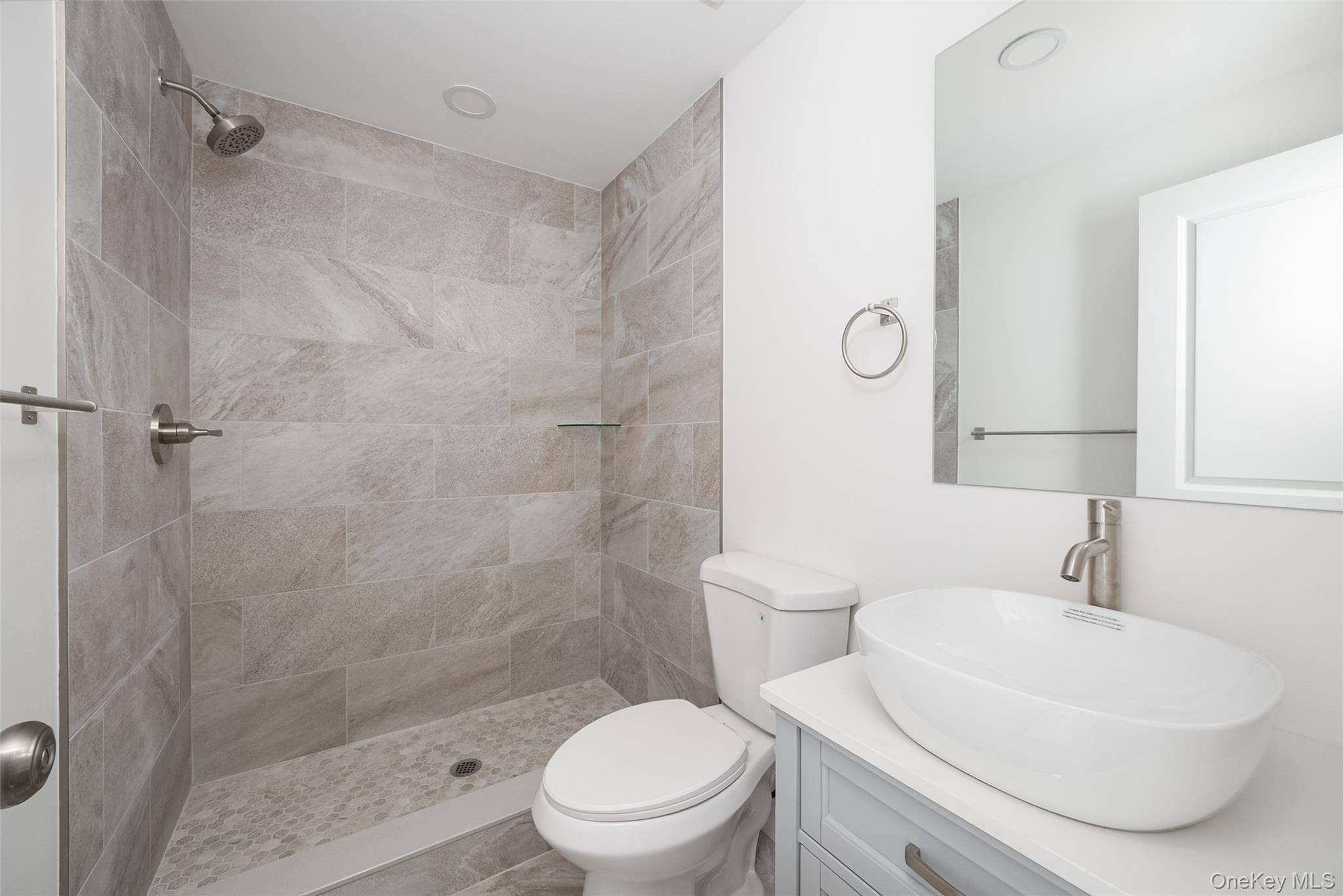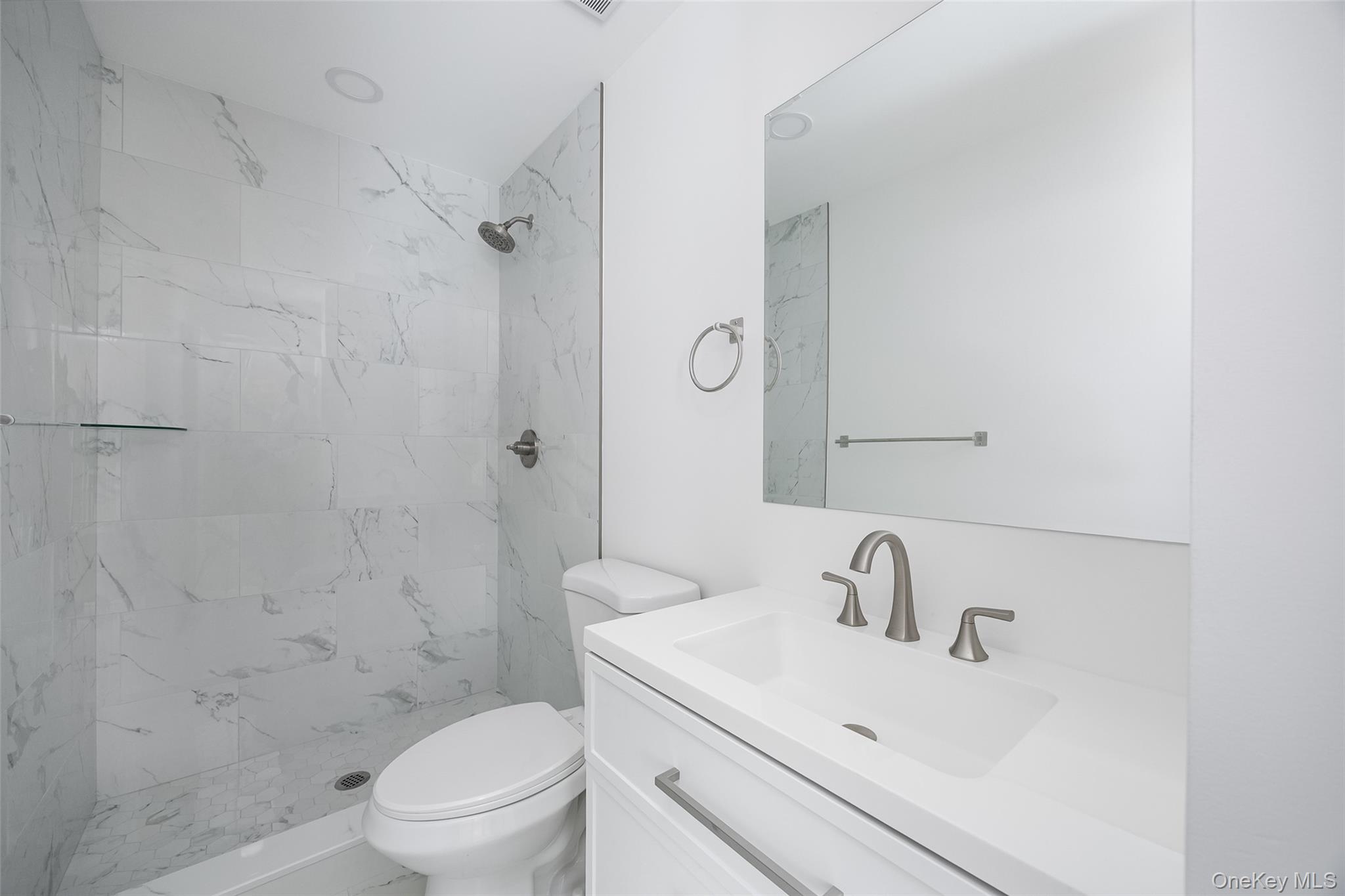 Tastefully updated 3 bedroom, 3 bathroom raised ranch situated on . 75 acre park like property complete with pond and wooded buffers. Modern open concept features center island kitchen w/quartz counters & stainless appliances, which flows seamlessly to dining room w/access to new deck & living room w/fireplace. Primary bedroom includes glamorous ensuite bathroom. Two additional well proportioned bedrooms and updated full bathroom complete the main level. Lower level is idea for guest quarters or in-law suite, including family room w/beautiful fieldstone fireplace, office/den, third full bathroom & laundry room. One car garage plus supplemental storage room. Extensive improvements include new roof, windows, siding, heat pump for energy efficient heating & cooling, water heater, plumbing, 200 amp electric, pressure tank, septic tank & spray foam insulation. Centrally located just minutes from schools, shopping, dining and commuter routes. An impeccably renovated home not to be missed.