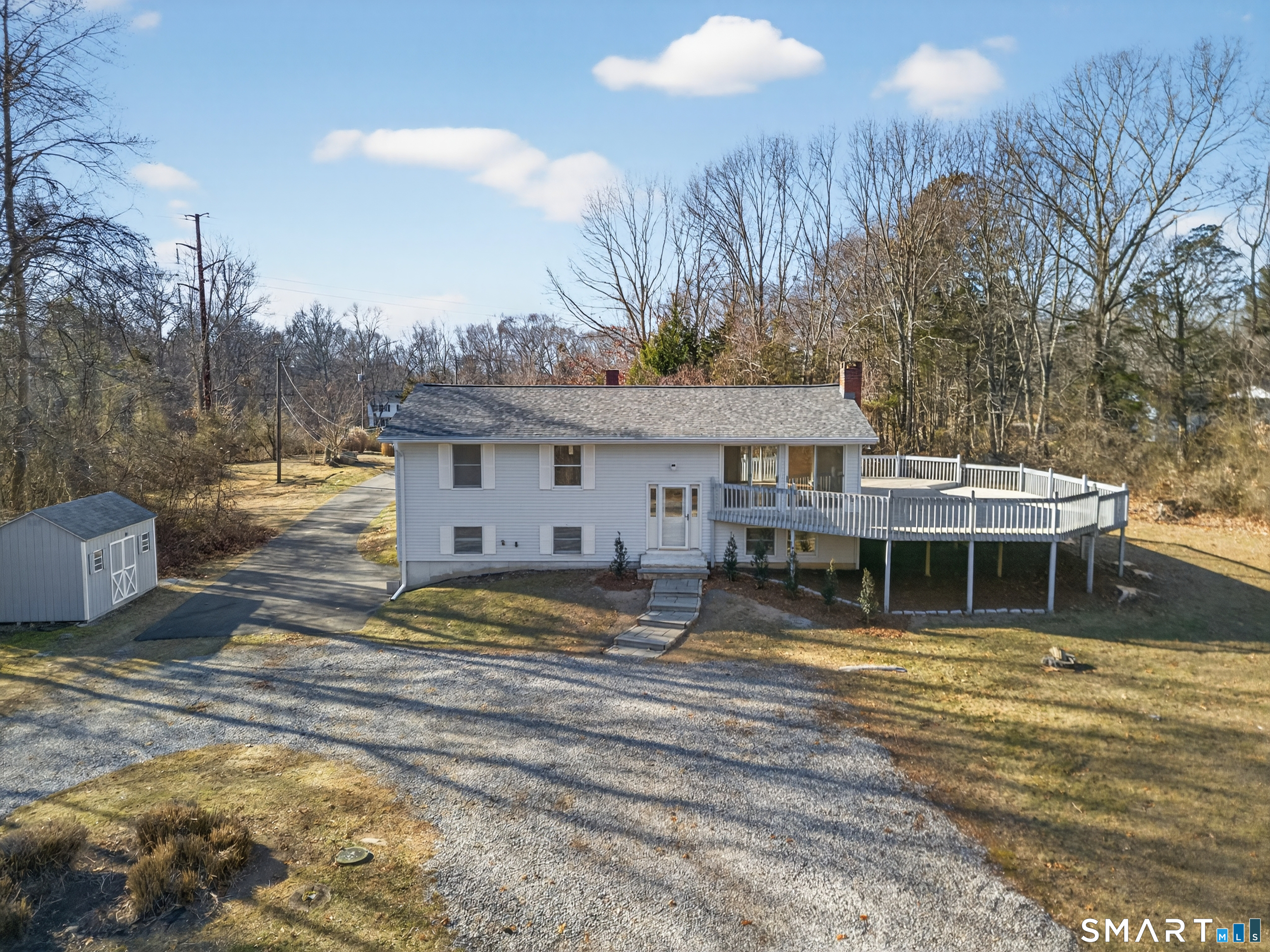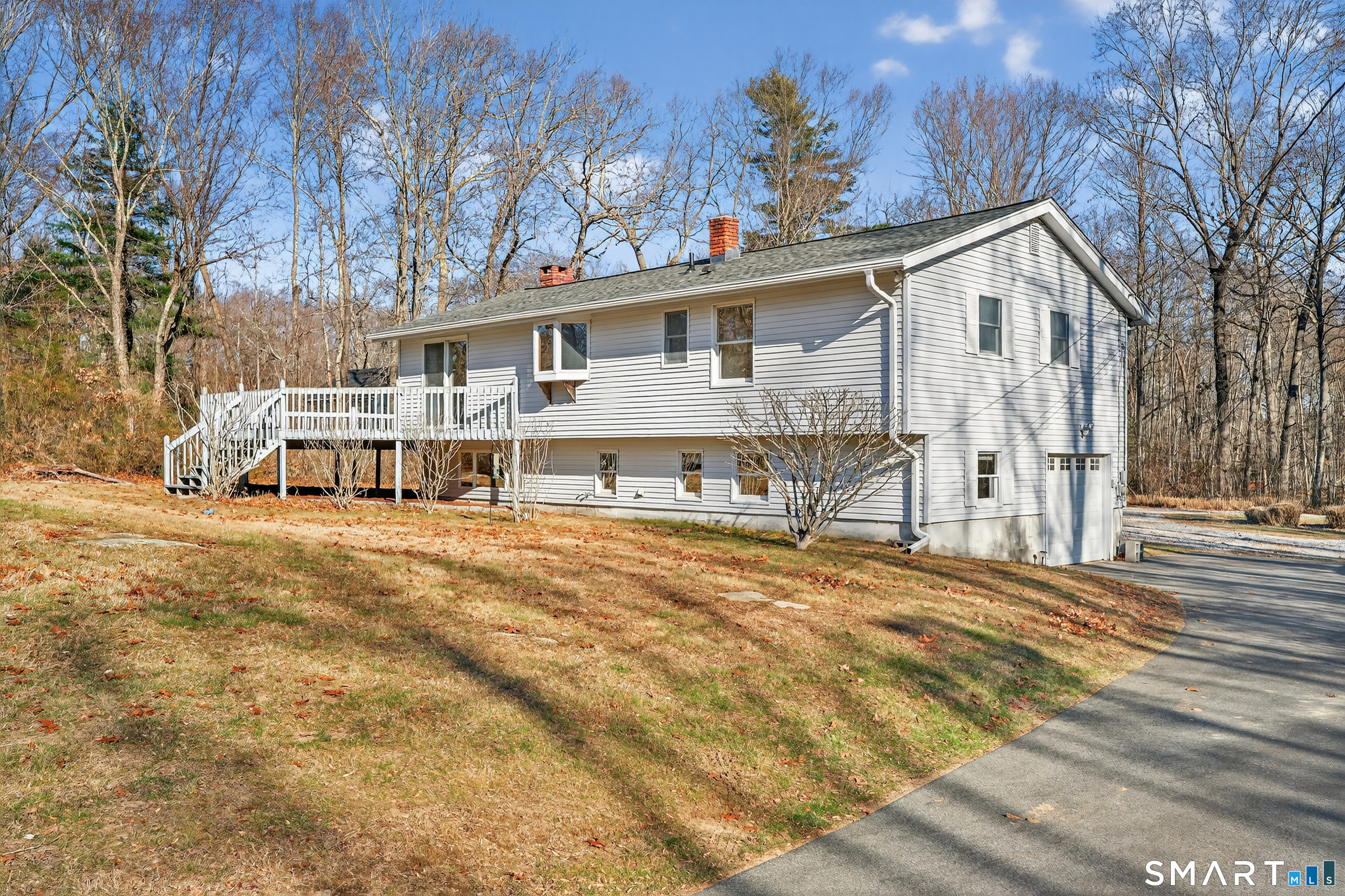 Tucked away in the charming shoreline town of Clinton, this hidden gem welcomes you with a long, private driveway framed by natural grasses and stone outcroppings-setting the stage for ultimate privacy and tranquility. Step inside and be captivated by the main level's airy, open feel, featuring soaring pine cathedral ceilings that bring warmth and character to the family and dining rooms. Sliding doors from both spaces invite you onto a remarkable expansive wraparound deck, perfect for seamless indoor-outdoor living. Whether you're hosting summer gatherings or savoring quiet mornings, this deck is your front-row seat to nature. The lower level offers even more space to relax and recharge, with a cozy family room complete with built-in shelving and a fireplace-ideal for relaxing or hosting. An additional (fourth) bedroom and full bath on this level offer versatile options for guests, a home office, or extended family. A brand new roof installed in November 2025 provides valuable peace of mind as you provide your personal touch to a home that offers incredible potential. The country-to-coastal ambiance with convenient access to Clinton's shoreline amenities such as Cedar Island Marina, Clinton Town Beach, and local favorites like Chamard Vineyards, Clinton Crossing Premium Outlets, and nearby Killingworth make this property the best of all worlds.