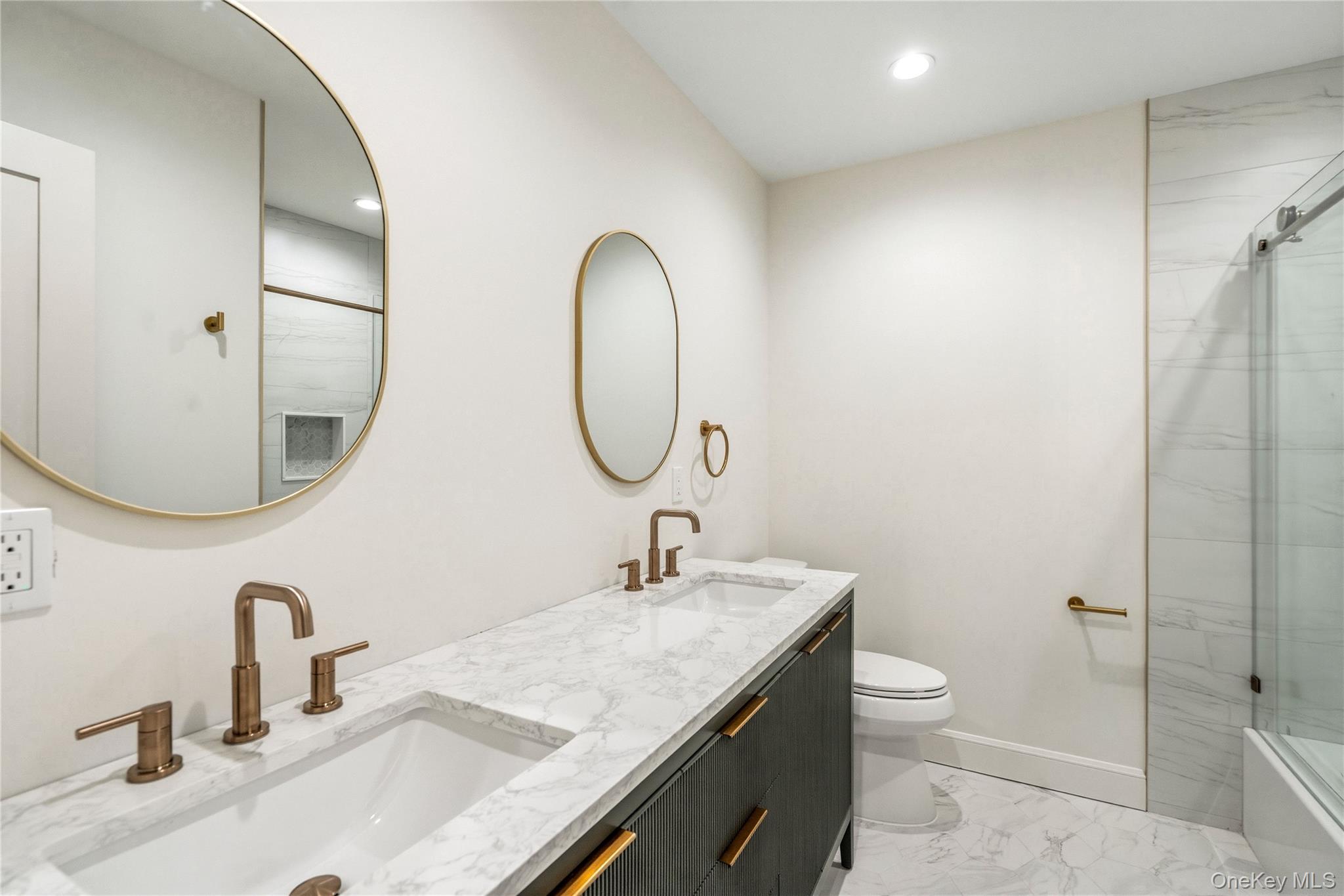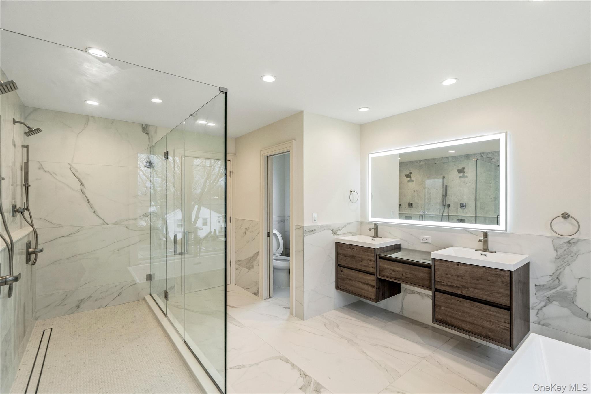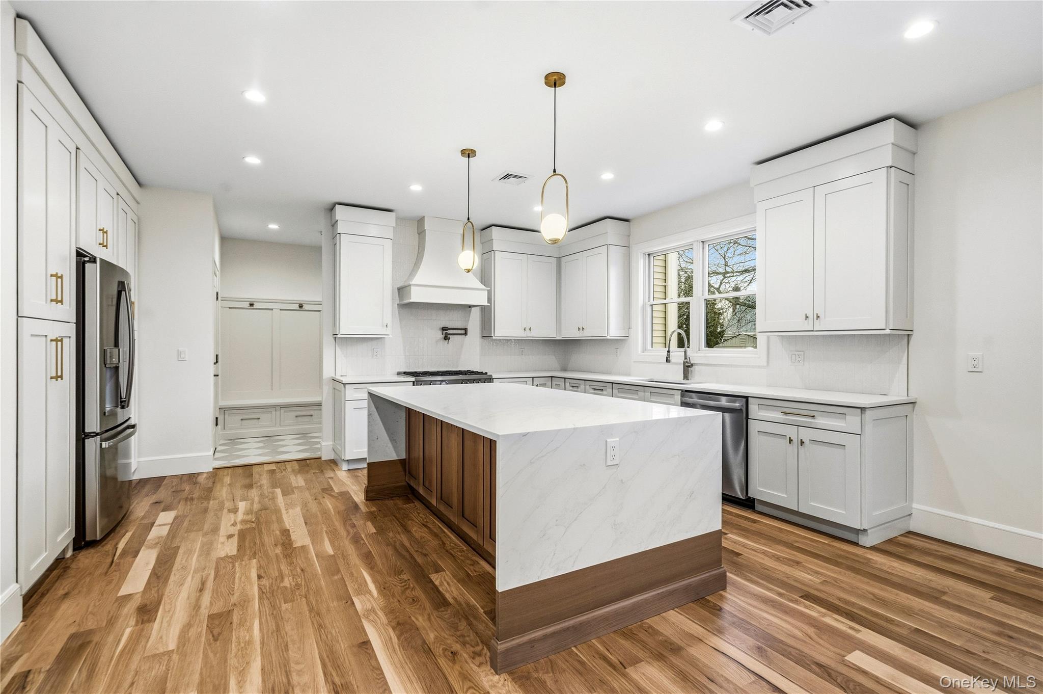 This brand-new construction blends modern farmhouse style with timeless elegance, offering 5 bedrooms, 5. 5 baths, and a fully finished basement with outside entrance. The first floor features a dramatic double-height entry with custom raised panel detailing that flows into the formal dining room with built-in hutch, complete with a coffered ceiling and dry bar—perfect for entertaining. Wide-plank white oak hardwood floors, 9-foot ceilings, and custom crown molding create a seamless sense of luxury. A spacious first-floor bedroom or office, full bath, ideal for extended family. The chef’s kitchen boasts gas cooking, an oversized island, premium stainless-steel appliances, and LED accent lighting. The adjoining family room includes a gas fireplace with built-in cabinets on either side, and sliders leading to a professionally landscaped, fenced yard with paver patio. Second floor features four oversized bedrooms, including a primary suite with decorative ceiling, coffee bar, walk-in closets, and a spa-like bath with soaking tub, glass-enclosed shower, double vanities, plus make-up vanity, and radiant heated floors. A laundry room, and 3 additional bedrooms, two more full bathrooms complete the second level. The fully finished 1, 600 sq. ft. basement with a full bath and outside entrance offers endless possibilities—home gym, media room, bar, or more. East Meadow School District. Pictures are of a similar home built by the builder.