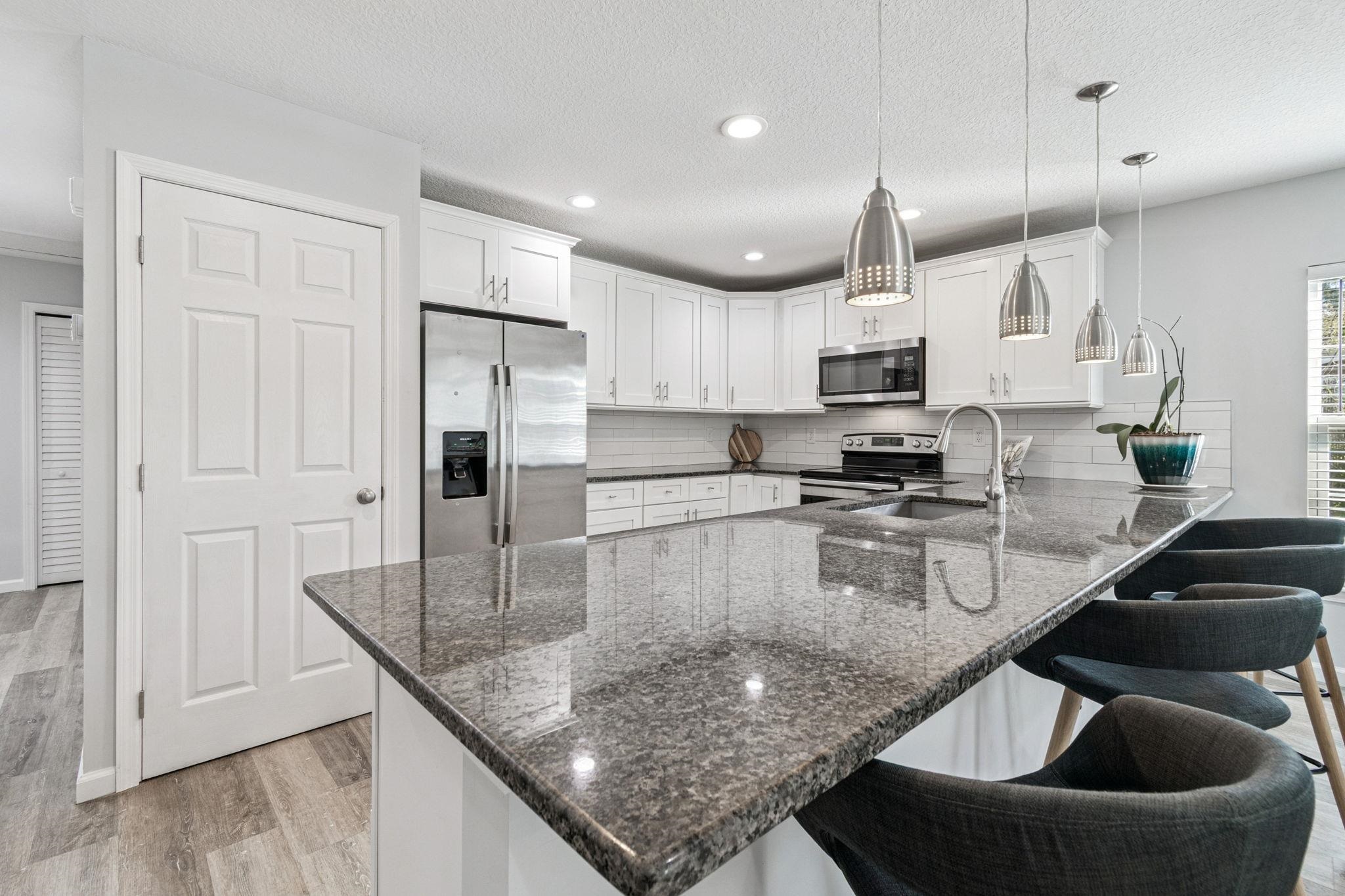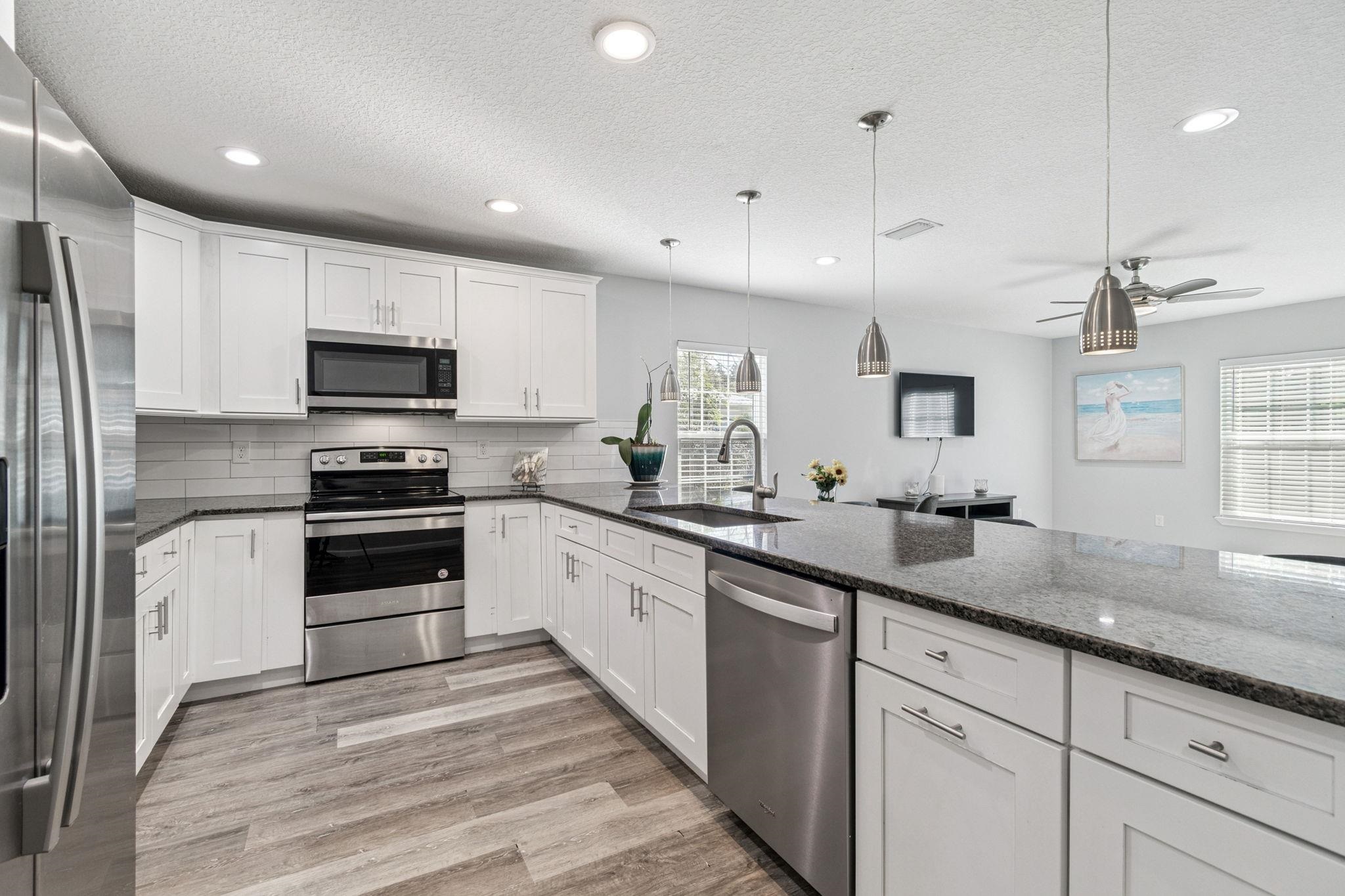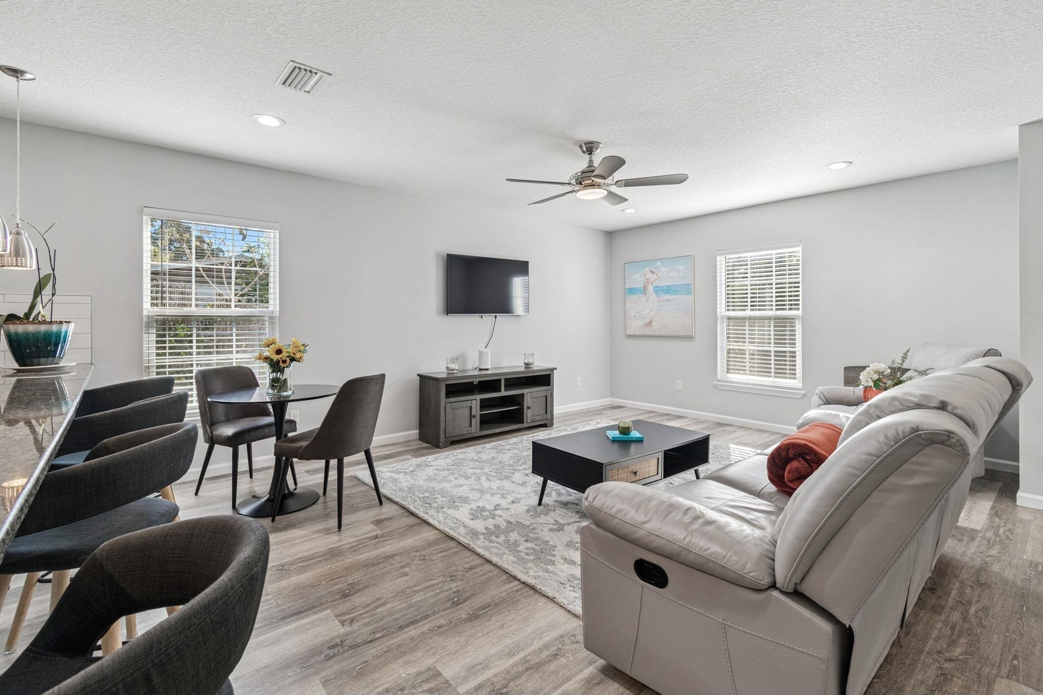 Welcome to 66 Julia Street - a true gem in historic St. Augustine, just minutes from downtown & within easy biking and walking distance to shops, dining & attractions. This beautifully appointed, fully furnished 3-bedroom, 2-bath home offers the perfect blend of charm & modern comfort. The bright, open floor plan is enhanced by vinyl plank flooring, contemporary finishes & an inviting layout ideal for everyday living or entertaining. The gourmet kitchen serves as the heart of the home, featuring SS appliances, granite countertops, an expansive island with bar seating, pendant lighting, white shaker cabinetry, & a classic subway tile backsplash. The spacious primary suite includes a walk-in closet & a spa-inspired en-suite bath with a stone-floor shower and built-in niches. Two additional bedrooms share a tiled hall bath, providing comfort and flexibility for family or guests. Outside, the oversized lot boasts a huge backyard with endless potential—perfect for adding a pool, building a deck, creating an outdoor kitchen, or designing your dream entertainment space. With NO HOA, its prime location, high-end finishes, and move-in-ready appeal, this home is ideal for first-time buyers, growing families, or investors seeking a strong rental opportunity. Don’t miss your chance to own a piece of St. Augustine’s charm. Make your showing today and start living the Florida lifestyle!