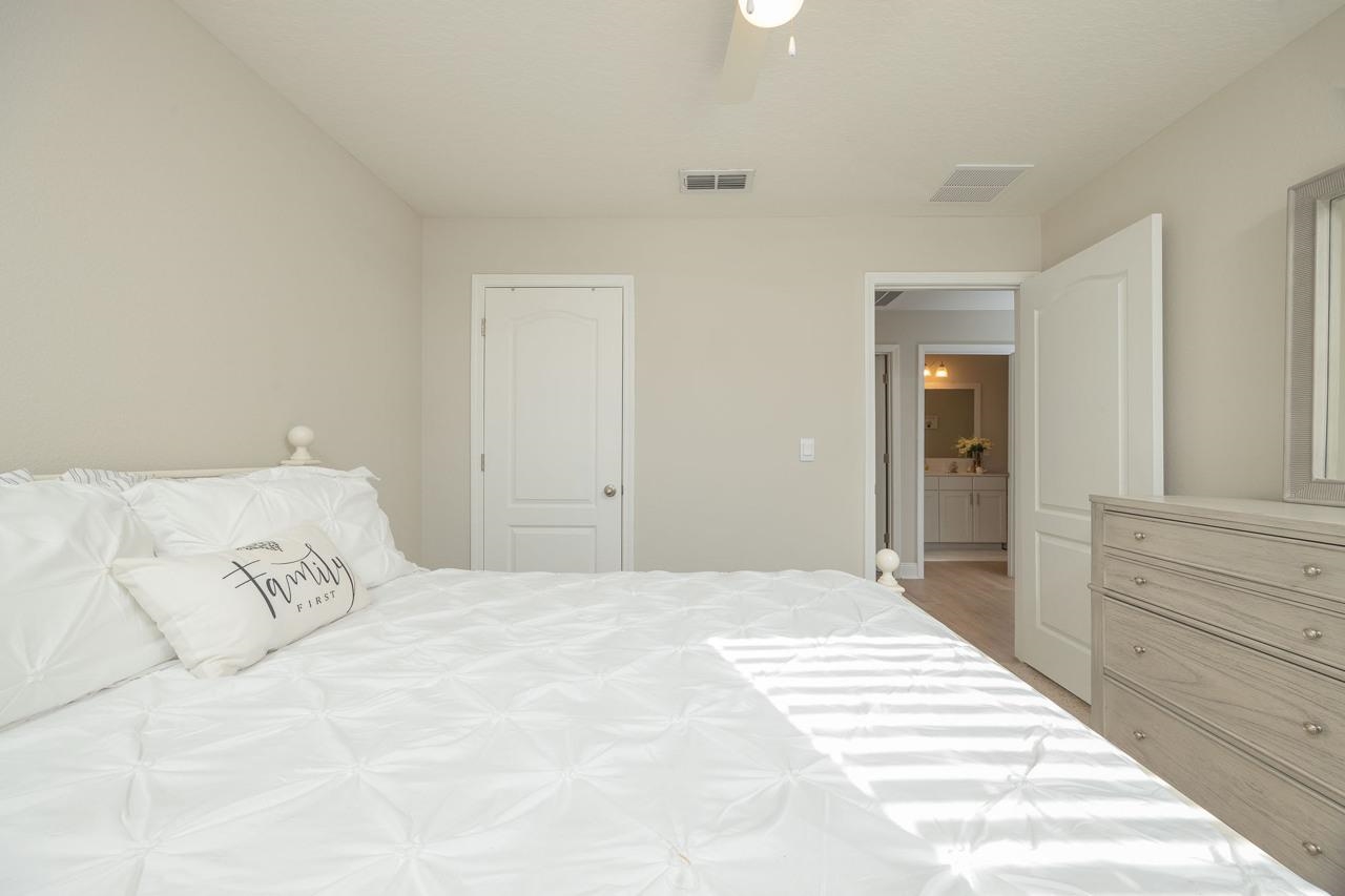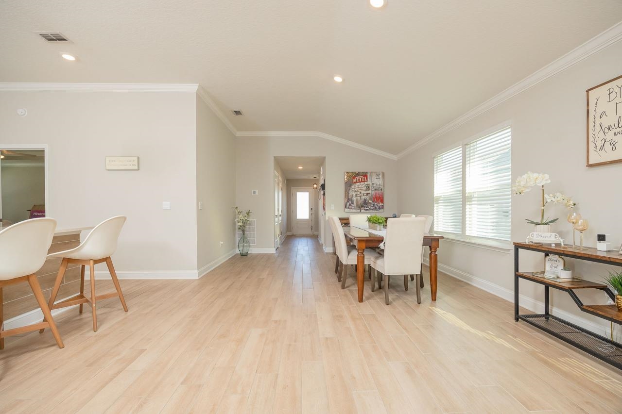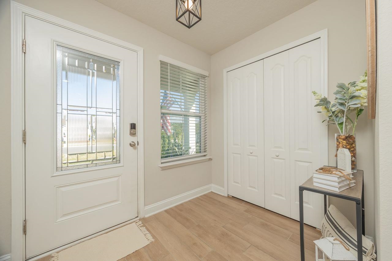 If you have been looking for a better than new, 4-bedroom home with a 3-car garage, walking trails, dog parks and resort type amenities, look no further, you have found it. Welcome to the gated community of Dorado, located in the Entrada Subdivision. This home has been meticulously maintained and is move in ready. The heart of the home is the open-concept kitchen. This space boasts a generous island, providing ample workspace and seating for casual meals or gatherings. The kitchen is designed with direct sightlines into both the living and dining areas, making it an ideal setting for hosting friends and family. The primary suite is set apart for privacy and comfort. It includes an upgraded spacious walk-in closet. The bathroom is outfitted with a dual-sink vanity, offering convenience for daily routines and an added touch of luxury. At the rear of the home, three secondary bedrooms are grouped together in a dedicated area. Entrada offers an impressive array of resort-style amenities designed to enhance your lifestyle. Residents can enjoy a sparkling community pool, a dedicated lap pool, and a fun-filled splash pad for children. The welcoming clubhouse serves as a hub for social gatherings and activities, while the modern fitness center is perfect for maintaining an active lifestyle. For those who love sports and outdoor recreation, Entrada features well-maintained basketball courts and pickleball courts. Families and pet owners will appreciate the playground and the two spacious dog parks. Additionally, walking trails wind throughout the community, providing a serene setting for daily strolls or exercise. Entrada is conveniently situated close to a variety of attractions and essential services. Residents enjoy easy access to the beautiful beaches, the historic downtown of St. Augustine, a diverse selection of restaurants, shopping centers, banks, and medical facilities. With its exceptional amenities and prime location, Entrada provides a welcoming and vibrant community you will be proud to call home.