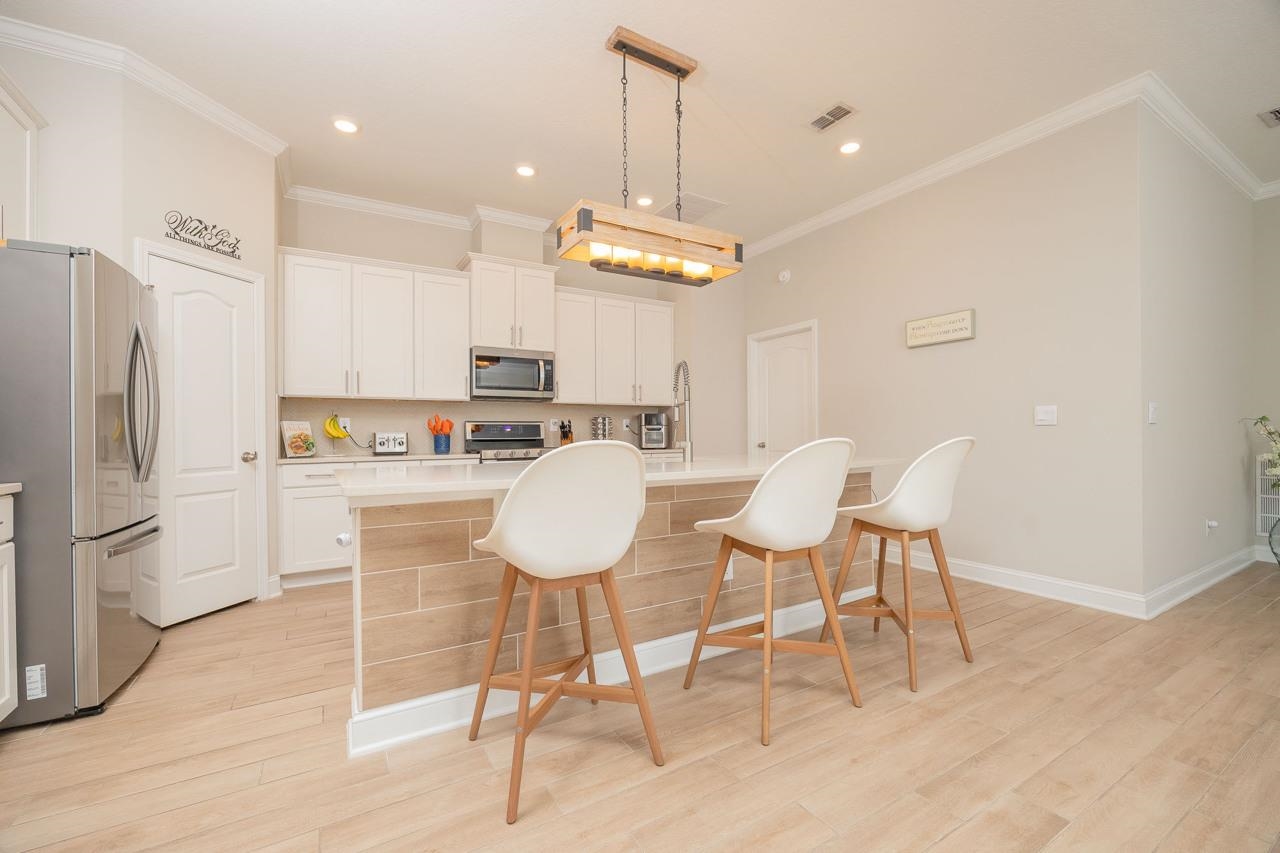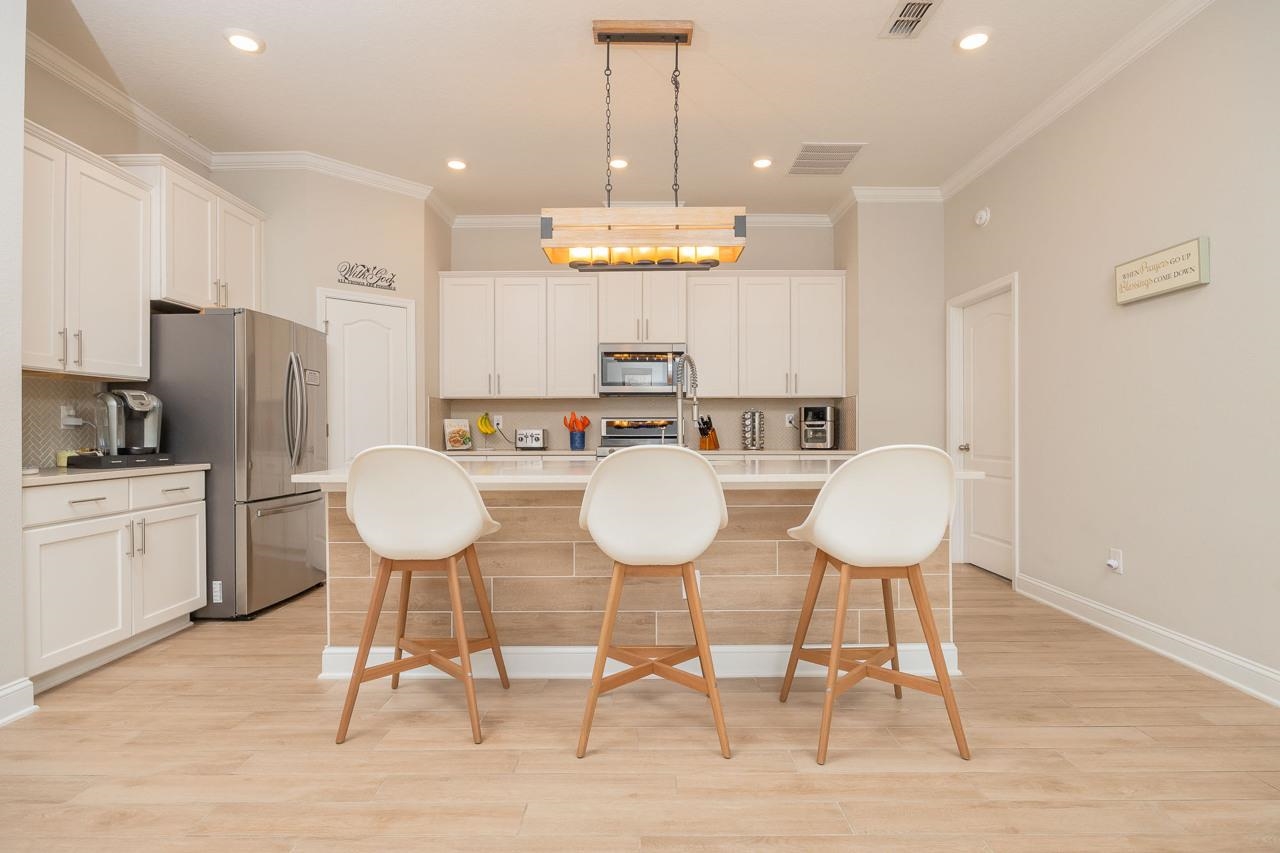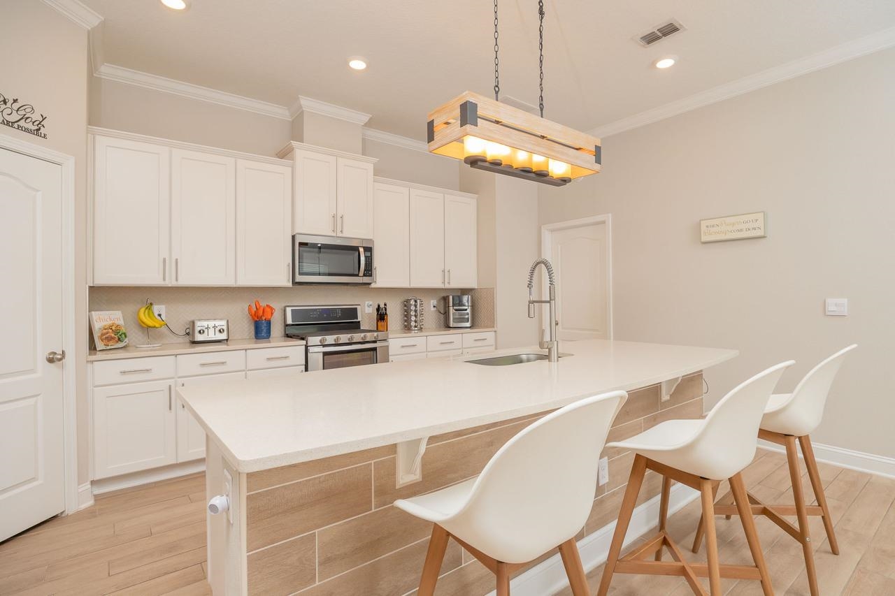 If you have been looking for a better than new, 4-bedroom home with a 3-car garage, walking trails, dog parks and resort type amenities, look no further, you have found it. Welcome to the gated community of Dorado, located in the Entrada Subdivision. This home has been meticulously maintained and is move in ready. The heart of the home is the open-concept kitchen. This space boasts a generous island, providing ample workspace and seating for casual meals or gatherings. The kitchen is designed with direct sightlines into both the living and dining areas, making it an ideal setting for hosting friends and family. The primary suite is set apart for privacy and comfort. It includes an upgraded spacious walk-in closet. The bathroom is outfitted with a dual-sink vanity, offering convenience for daily routines and an added touch of luxury. At the rear of the home, three secondary bedrooms are grouped together in a dedicated area. Entrada offers an impressive array of resort-style amenities designed to enhance your lifestyle. Residents can enjoy a sparkling community pool, a dedicated lap pool, and a fun-filled splash pad for children. The welcoming clubhouse serves as a hub for social gatherings and activities, while the modern fitness center is perfect for maintaining an active lifestyle. For those who love sports and outdoor recreation, Entrada features well-maintained basketball courts and pickleball courts. Families and pet owners will appreciate the playground and the two spacious dog parks. Additionally, walking trails wind throughout the community, providing a serene setting for daily strolls or exercise. Entrada is conveniently situated close to a variety of attractions and essential services. Residents enjoy easy access to the beautiful beaches, the historic downtown of St. Augustine, a diverse selection of restaurants, shopping centers, banks, and medical facilities. With its exceptional amenities and prime location, Entrada provides a welcoming and vibrant community you will be proud to call home.