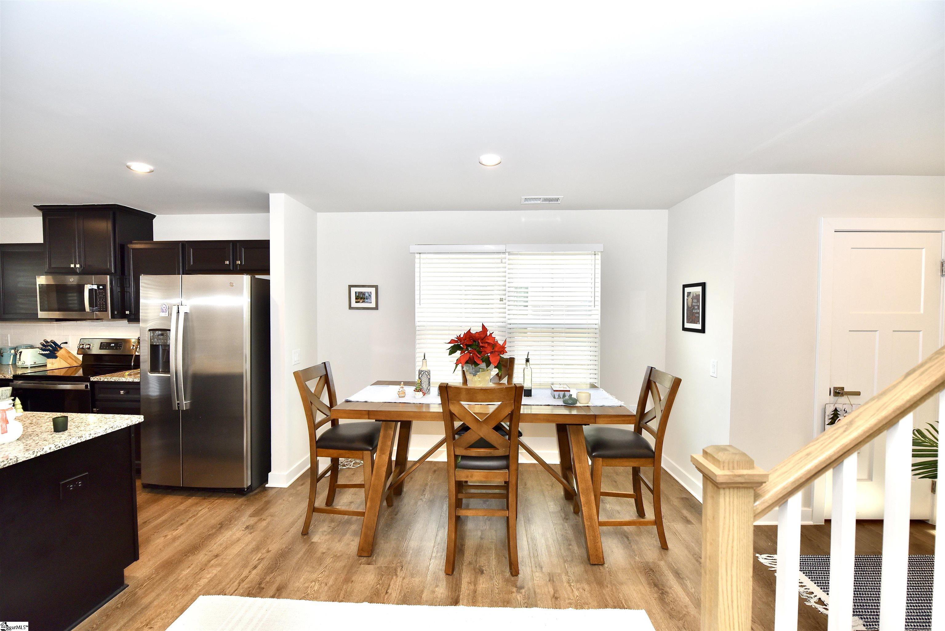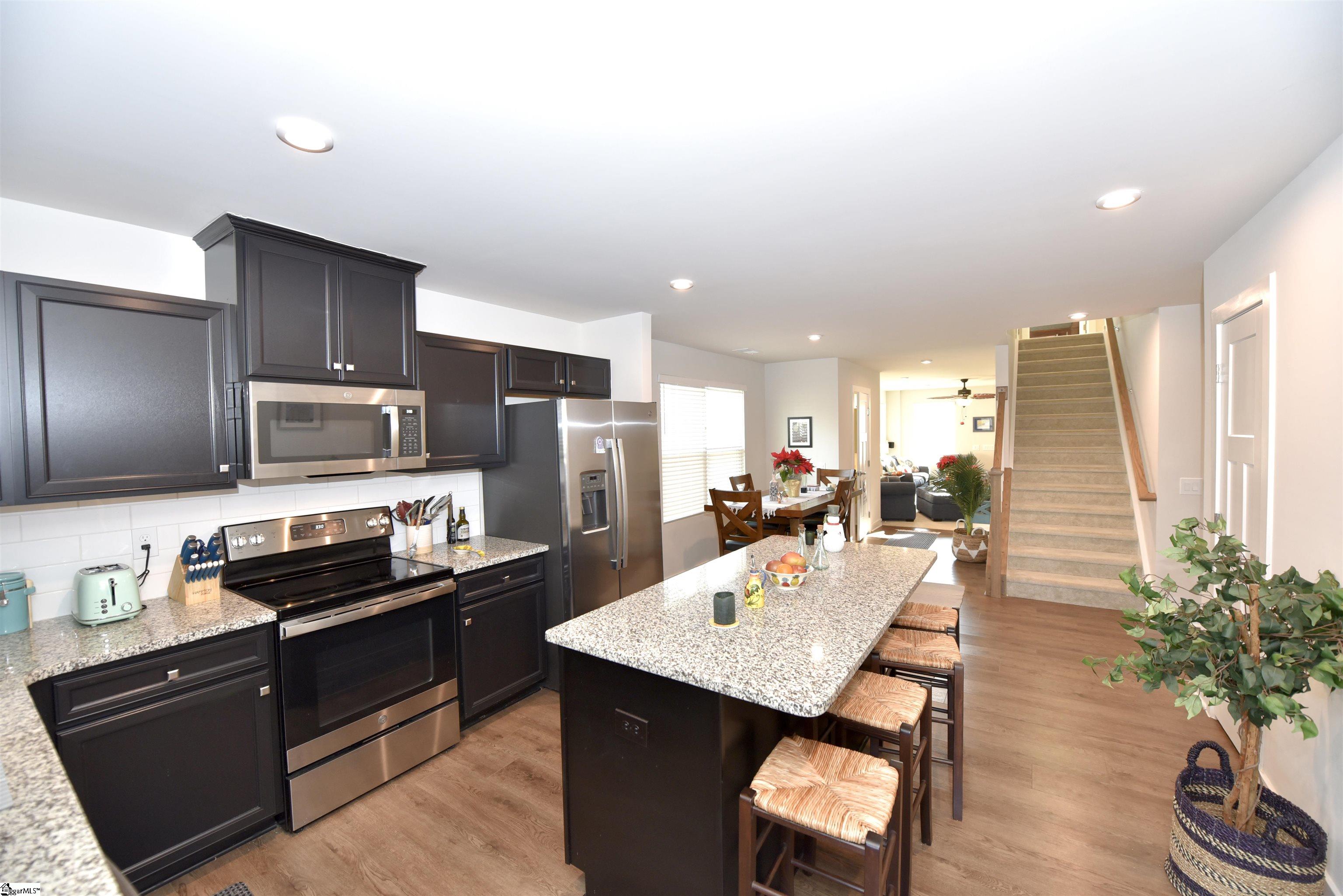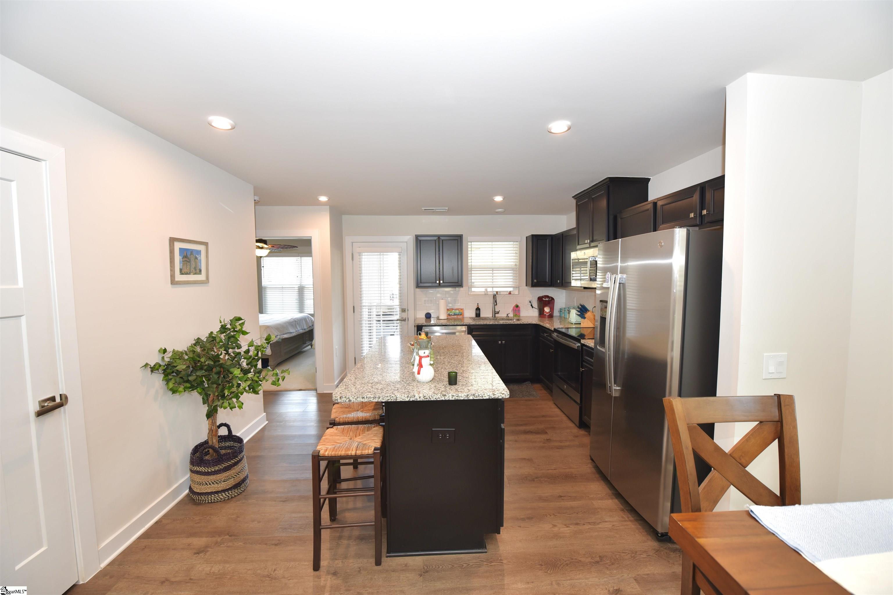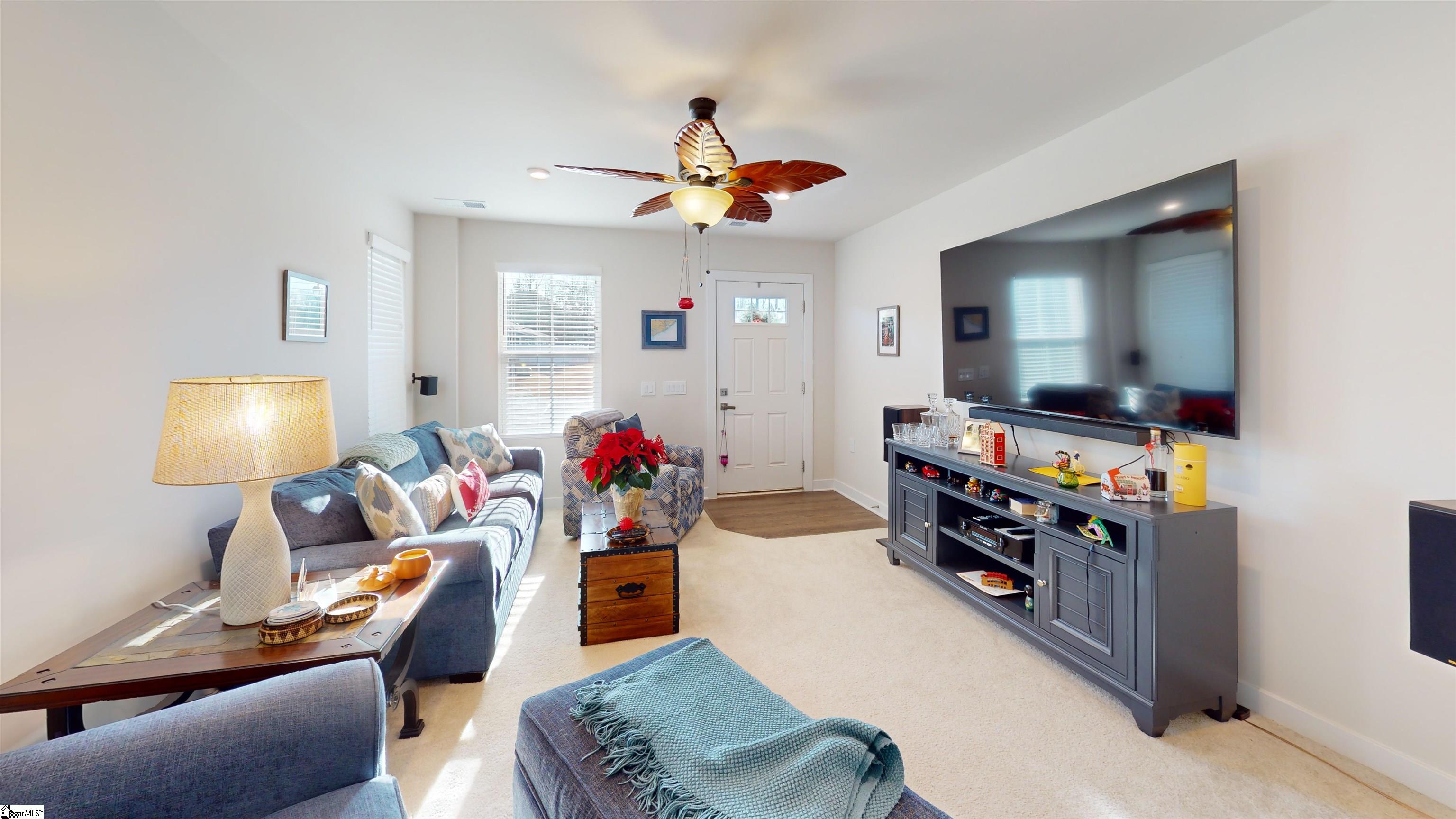 Main Floor Owners Suite within walking distance to the Swamp Rabbit Trail! Tranquil neighborhood green space with covered pavilion and fireplace. Large Covered Porch is INCLUDED!! Close to shopping, restaurants and I-385. Only 6 minutes to Downtown Greenville! Positioned at the END OF BUILDING for added privacy- Enter the front door to a gracious great room with plenty of space to relax or entertain. An adjacent dining space and chef's kitchen (with island and stainless steel appliances included!) lead to a unique outdoor living space with a private covered back porch and tree-lined view. You're sure to find time for quiet morning coffee or tranquil evening relaxation! Nestled privately at the back of the home is the Owner's bedroom with an impressive en suite bath and huge walk-in closet. Upstairs are 2 additional bedrooms, a guest bath, and a finished storage room- perfect to keep things organized.