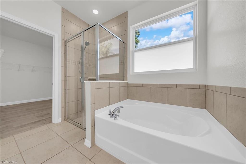 Better than new, this 2021 built home has it all. Enjoy a FULLY FENCED yard for privacy and security, with two gates for easy access. BRAND NEW Wood-Look Ceramic Tile Flooring throughout the residence offers durability and peace of mind for years to come. The home has been fully refreshed with New Behr Paint in a serene neutral tone. Corner lot location features high elevation and a large, covered front porch welcoming you to over 2000 sq ft of living space inside. Spacious open floor plan with large quartz kitchen island, sizeable pantry, and stainless steel appliances, including LG ThinQ French Door Refrigerator. Modern white cabinetry with abundant storage and breakfast bar with push-button garbage disposal already installed. Separate formal dining room or additional living space offers the utmost in flexibility. The primary suite offers a tranquil view of the backyard, as well as en-suite bath, tiled shower with glass enclosure, soaking tub and his-and-her sinks with separate water closet. A split floor plan gives guests the utmost privacy with two additional bedrooms and a full bath with tub and shower, featuring a dual shower head. The large den makes a perfect home office or can easily be converted into a fourth bedroom. High ceilings throughout create a light and bright experience with western views of the sunsets. The covered backyard patio is ideal for grilling or relaxing, under twinkling patio lights. Walking paths meander through the huge private yard, with curated native plants creating a tranquil butterfly garden. Heavy-duty, cantilever patio umbrella, bistro set and outdoor sitting area included for immediate enjoyment. Plenty of room for a boat or toys to be stored across the expansive fenced space. Full-sized, front load LG washer and dryer in dedicated laundry room with room for additional storage. Termite bait stations for added pest protection. This property is nestled into a quiet residential neighborhood just off Skyline Blvd but with all the convenience of Cape Coral Pkwy just minutes away, making it an easy place to call home.
