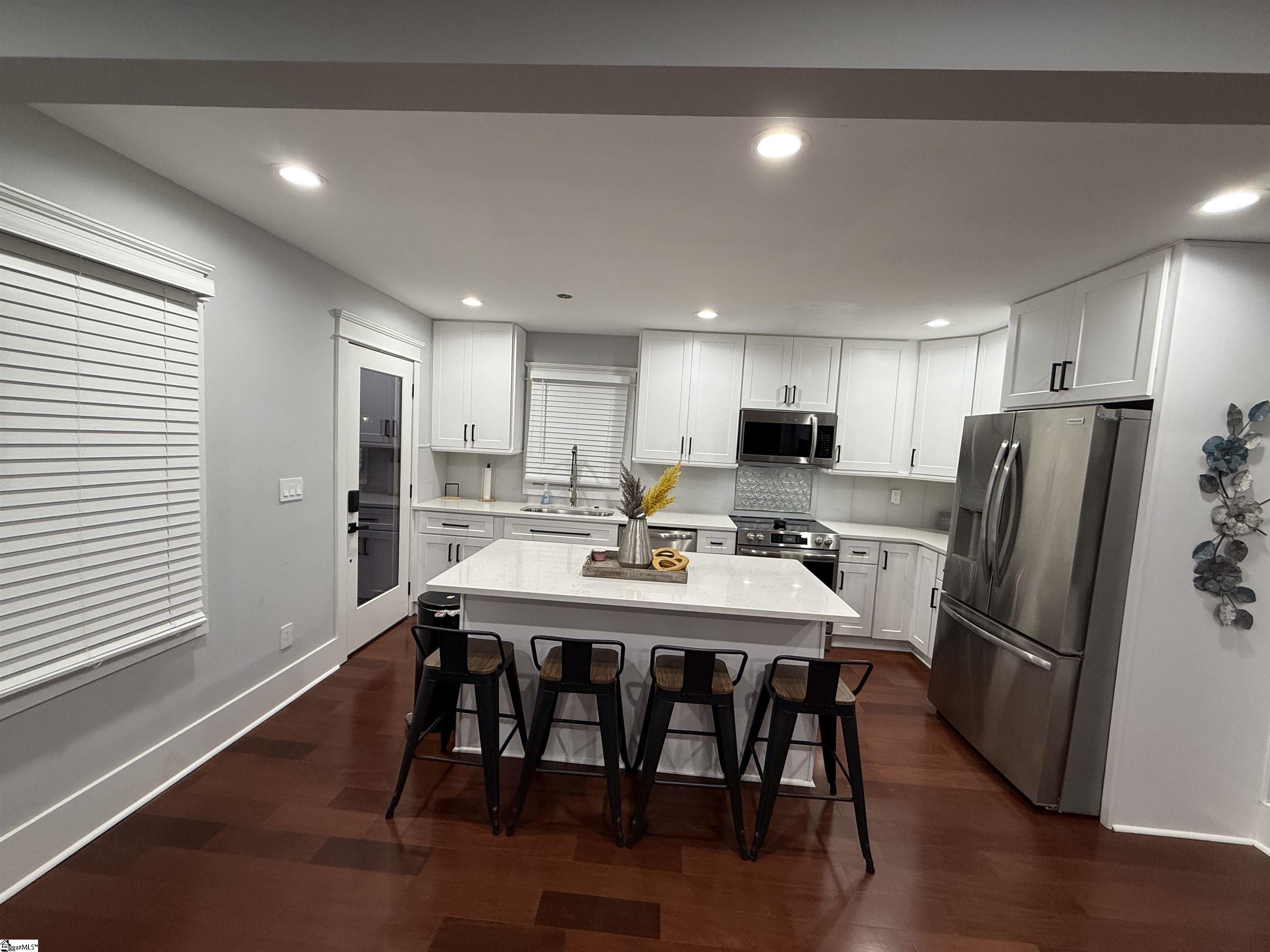 Discover the perfect short-term or mid-term rental solution in this beautifully renovated and fully furnished 3-bedroom, 2-bath home located just minutes from Downtown Greenville. This turnkey property is designed for comfort, flexibility, and convenience—ideal for traveling nurses, medical staff, corporate placements, families between homes, or anyone needing high-quality temporary housing. Minimum 30-day rental required. This home is truly move-in ready. All utilities are included in the monthly rent—electricity, water, trash, lawn care, and high-speed WiFi. The home is fully furnished and fully functioning, offering a complete living experience so tenants only need to bring their clothes and food. Inside, you’ll find a bright open-concept living area with a large sectional sofa, smart TV, modern lighting, and updated flooring. The kitchen features quartz countertops, a spacious island with bar seating, stainless steel appliances, and a fully stocked setup including cookware, dishes, utensils, glassware, small appliances, and essentials. The layout is ideal for cooking, dining, working, or entertaining. All three bedrooms are thoughtfully furnished with comfortable queen beds, new mattresses, linens, dressers, ceiling fans, and smart TVs. Each room provides a quiet, private retreat suitable for rest after long shifts or busy days. The home includes two beautifully updated full bathrooms—one with a tiled walk-in shower and one with a tile shower/tub combo—both equipped with modern vanities, fixtures, and provided bath linens. Additional features include an in-unit washer and dryer, central HVAC, a smart lock for secure access, and driveway parking. The home sits on a quiet street with a wooded backdrop, offering peace and privacy while remaining close to hospitals, shopping, dining, entertainment, major job sites, and Greenville’s thriving downtown. This property brings together modern design, comfort, and convenience in one complete package. With its fully furnished interior, all-inclusive utilities, flexible 30-day minimum lease, and excellent location, it is perfectly suited for tenants seeking a clean and dependable home between long-term commitments or during temporary assignments. Available now for move-in.