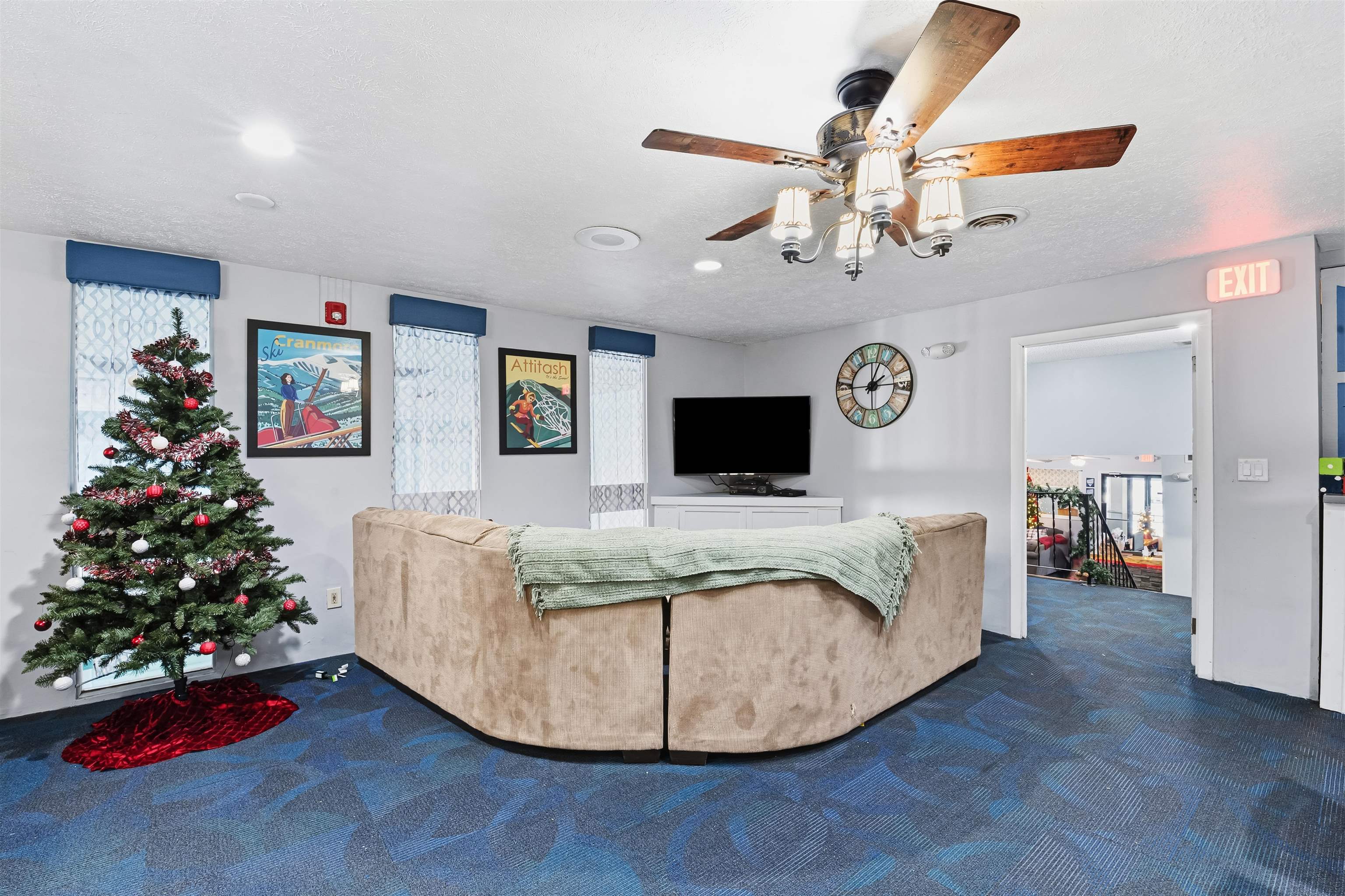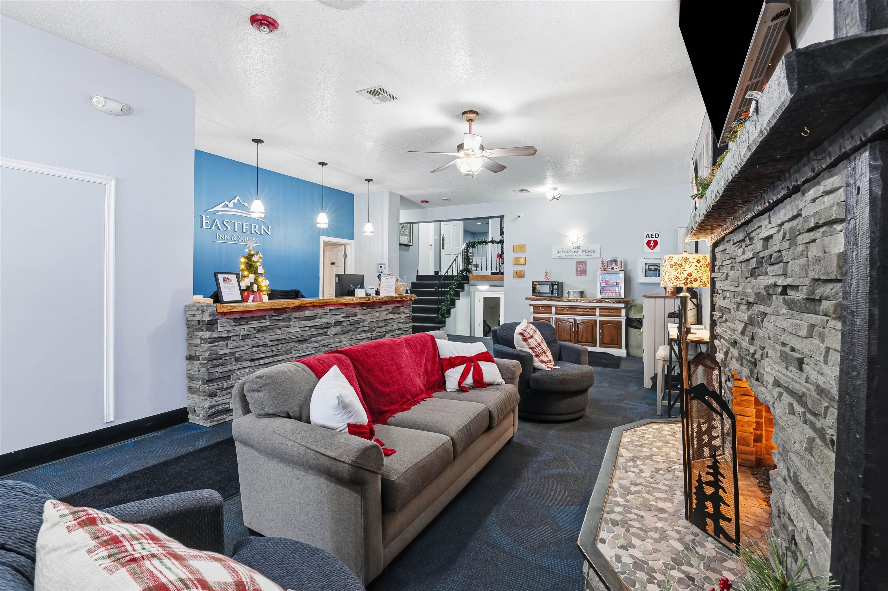 Centrally located in beautiful North Conway and abutting the Whitaker Woods trail system, this updated 2nd-floor double-queen suite offers the perfect year-round retreat. Just a short walk to North Conway Village, this 415 sqft unit is bright, inviting, and truly turnkey with thoughtful upgrades throughout. Inside, you’ll find new paint, new vinyl flooring in the bedroom, and new baseboard trim for a clean, modern feel. The bedroom is the only unit in the building with a ceiling fan, adding extra comfort year-round. The living area retains cozy carpeting, and the entire space benefits from added recessed lighting plus under-cabinet lighting in the kitchenette. This unit features a new heater and new large TV. The bathroom has been updated with a new vanity, mirror, lighting, and toilet, creating a refreshed look. A lockable owner’s closet allows you to leave belongings securely stored between visits. Owners can enjoy up to 120 days of use per year (no more than 14 days per 30-day period without approval), making this the perfect low-maintenance home-away-from-home. Pets are allowed, and owners can customize their interiors. Eastern Inn & Suites provides an impressive array of amenities including a heated indoor pool, hot tub, playground, billiards area, and direct access to trails for hiking, biking, and cross-country skiing. With an unbeatable location near everything North Conway has to offer, this suite is your guaranteed getaway.
