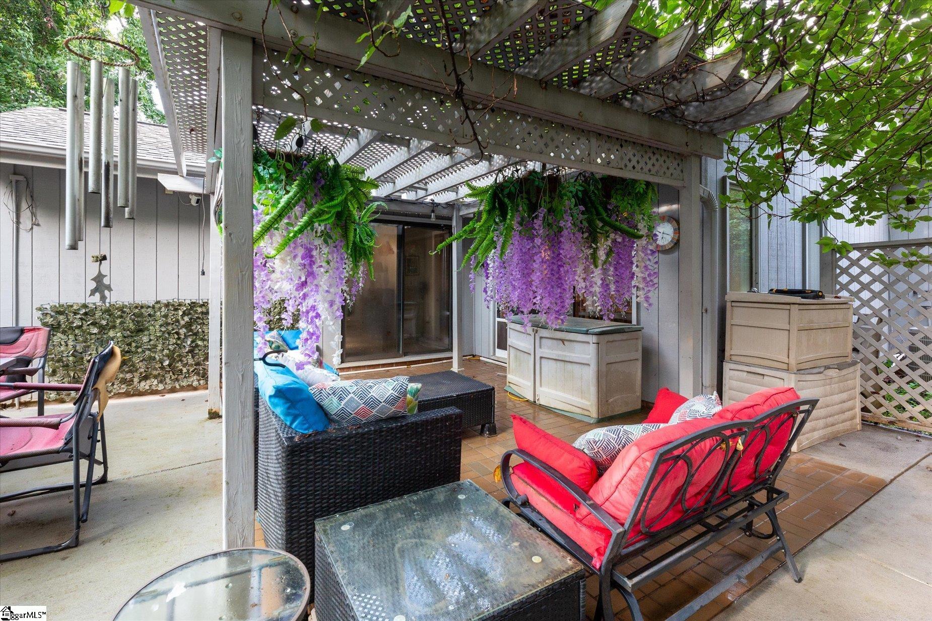 Welcome to your new home in the highly sought-after Pebble Creek neighborhood! This charming 3-bedroom, 2-bath home, just a few blocks from community Pool and golf course, features a spacious floor plan and a beautiful sunroom that invites natural light throughout. Love to entertain? The backyard is an outdoor retreat with a pergola and paver patio, ideal for hosting dinners or simply relaxing. Inside, the primary suite offers comfort and style with a walk-in closet and a recently renovated bath showcasing a walk-in shower, new vanity, and skylight for abundant natural light. The kitchen is generously sized and flows into a dedicated dining room, while the living room highlights a custom built-in cabinet perfect for displaying your favorite books, art, or collectibles. Additional features include an underground pet fence for peace of mind and convenience. Also includes security lights and cameras. Don't miss your chance to make this Pebble Creek gem your own. Schedule a showing today!!