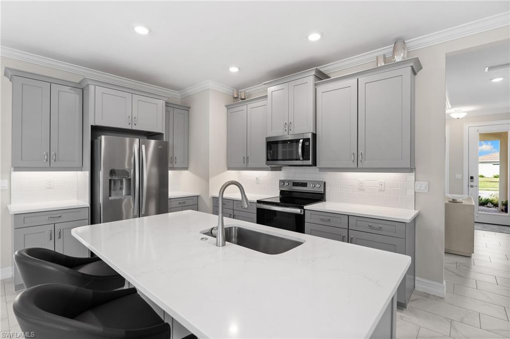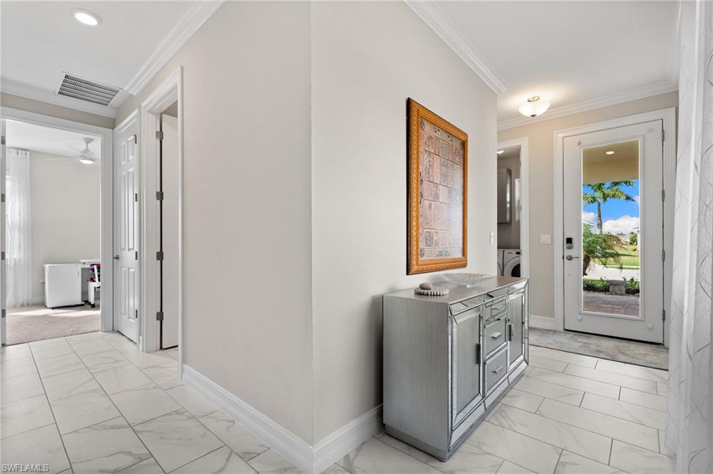Welcome to this beautifully appointed 3 bedroom, 2 bath home built in 2023 and perfectly positioned in the highly sought after Seasons at Bonita. Designed with modern living in mind, this residence features stylish contemporary finishes throughout, including an open concept floor plan, sleek cabinetry, and upgraded fixtures that create a light, airy feel. Situated on an oversized lot, the home offers added privacy and space rarely found in the community. Enjoy tranquil lake views from the main living areas and unwind on the extended lanai, ideal for outdoor dining, entertaining, or simply relaxing while taking in the serene water backdrop. With newer construction, modern design, and a premium lot, this home combines comfort, style, and Florida living at its best, just minutes from shopping, dining, beaches, and all that Bonita Springs has to offer! Seasons is not in a flood zone. Flood insurance is not required.