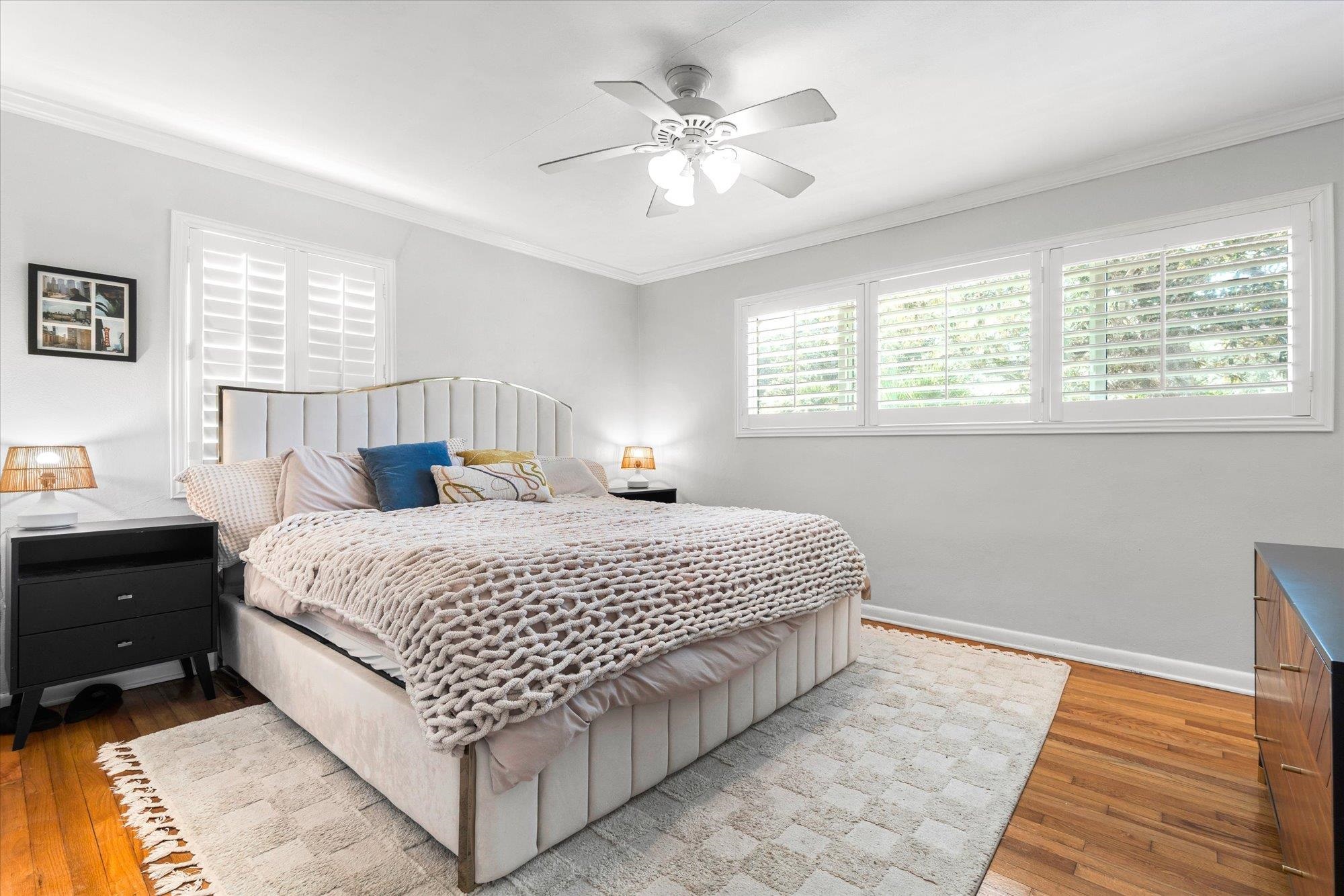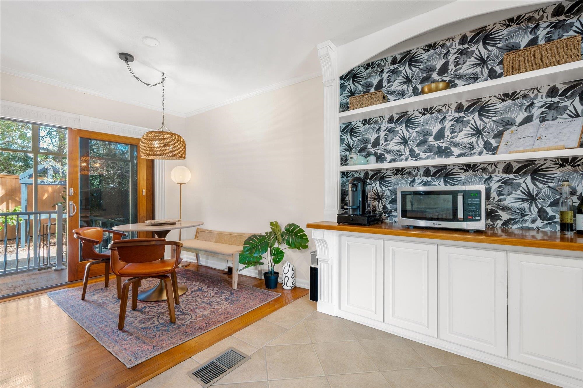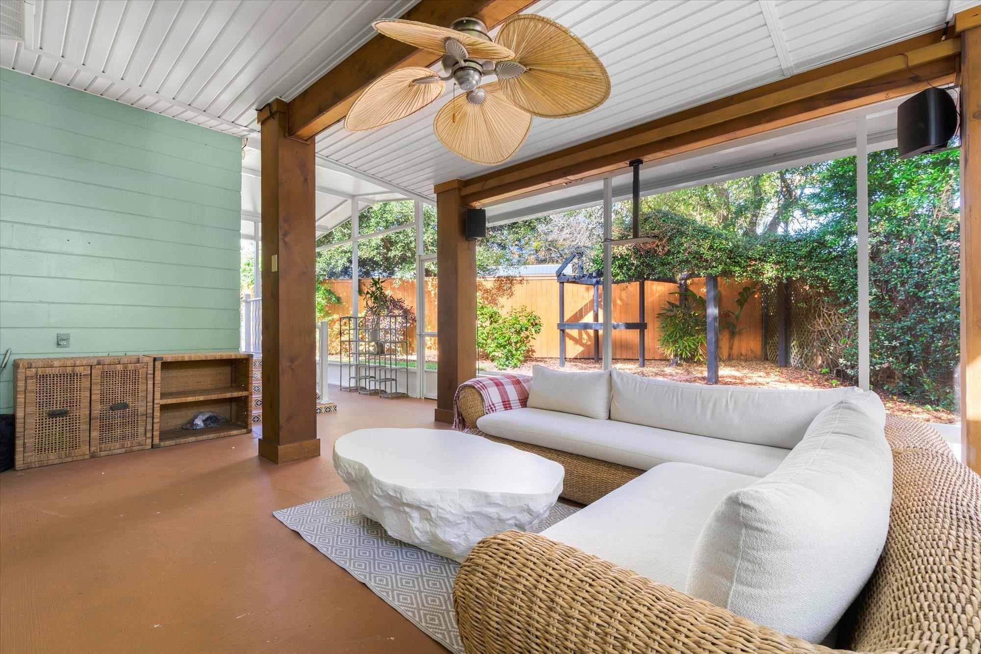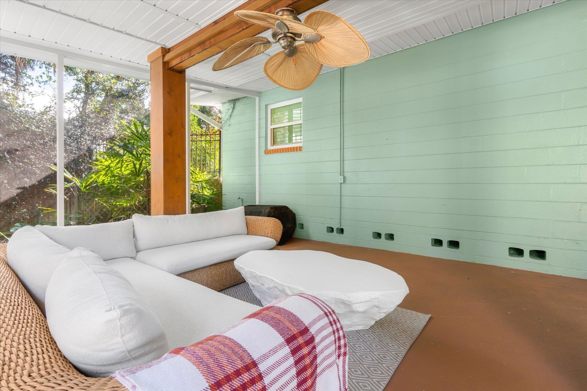 Perched on a high dune in Madeira Heights, this Anastasia Island gem blends thoughtful design with relaxed coastal living. Inside, you'll find beautifully refinished hardwood floors, crown molding in every room, and custom cabinetry and built-ins that make the home feel both elevated and effortlessly functional. The kitchen has been updated with custom cabinets and granite countertops, complemented by a custom dining hutch and a hallway bookcase that adds charm and smart storage. Both bathrooms have been tastefully renovated, keeping the home fresh, modern, and move-in ready. Step outside and enjoy a private backyard retreat. The fully fenced yard features mature landscaping and a screened patio with electric and a ceiling fan that's perfect for lazy afternoons or evening gatherings. A newer well and pump (2021), irrigation from a deep well, and an oversized 1-car garage with room for storage, workshop space, and laundry add to the functionality. The standing seam metal roof, hurricane-impact windows, updated 200-amp electrical service, plumbing upgrades, mobile generator, 120-gallon buried propane tank and tankless propane hot water heater offer peace of mind. The property also includes an updated septic and drain field (2017), gutter system with leaf guards and security system. Positioned in X Flood Zone at 17' above sea level, the home combines everyday practicality with the island lifestyle people love. Walk or bike to the St. Augustine Amphitheatre for concerts or the Saturday Farmers' Market, head over to Anastasia State Park for beach days and nature trails, or launch your boat at Lighthouse Park. Round the bend of Anastasia Boulevard and you’ll find top-rated RB Hunt Elementary School, The Alligator Farm and a plethora of excellent restaurants. Downtown is only minutes away, bringing dining, shopping, and St. Augustine’s charm right to your doorstep. With no HOA, the possibilities are endless - primary residence, vacation home or excellent short term rental. Furniture negotiable.