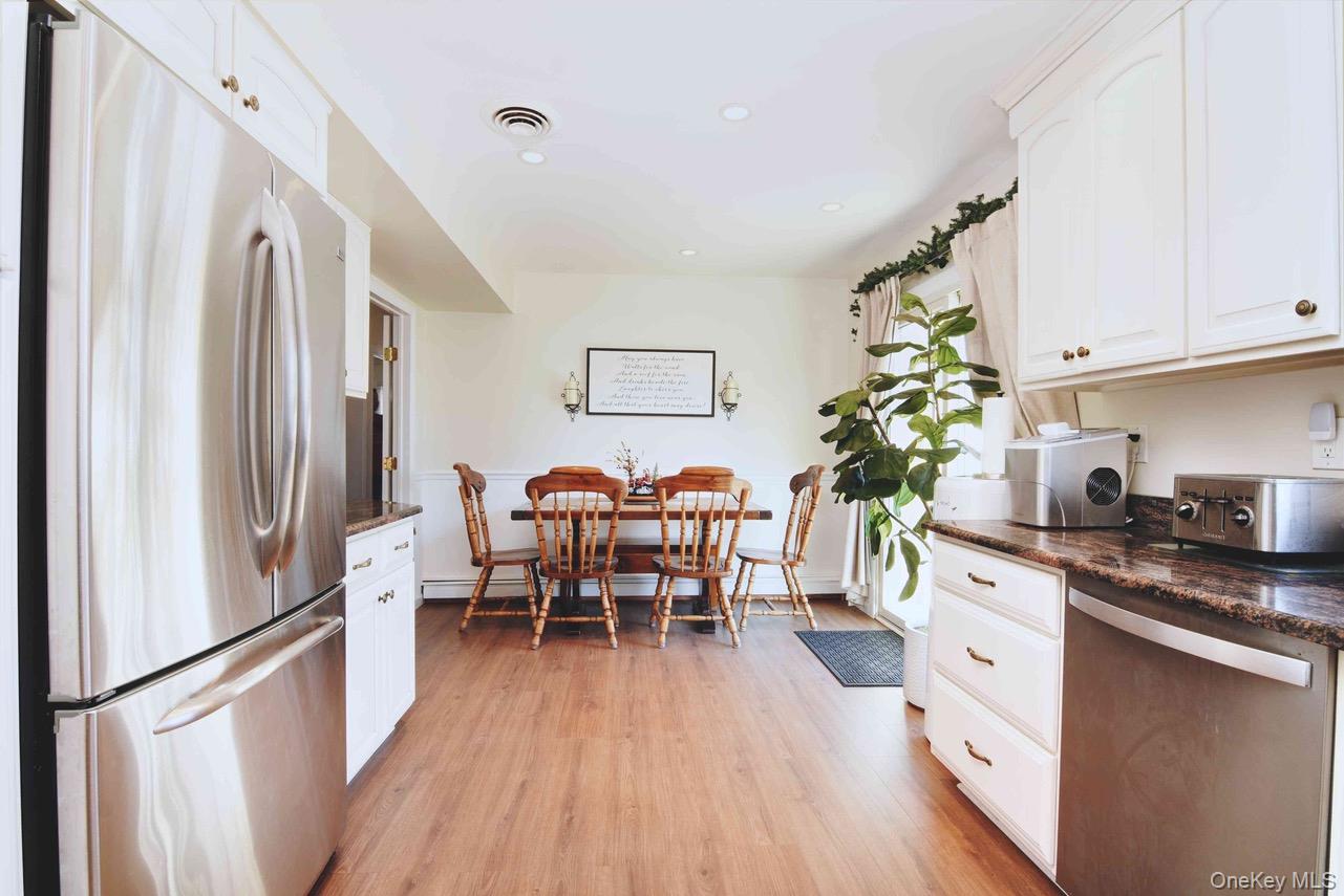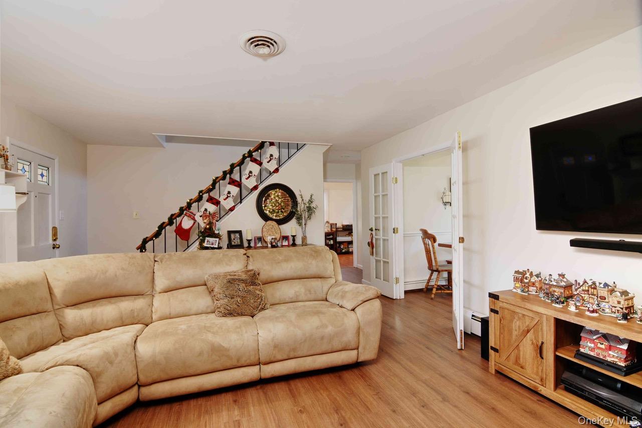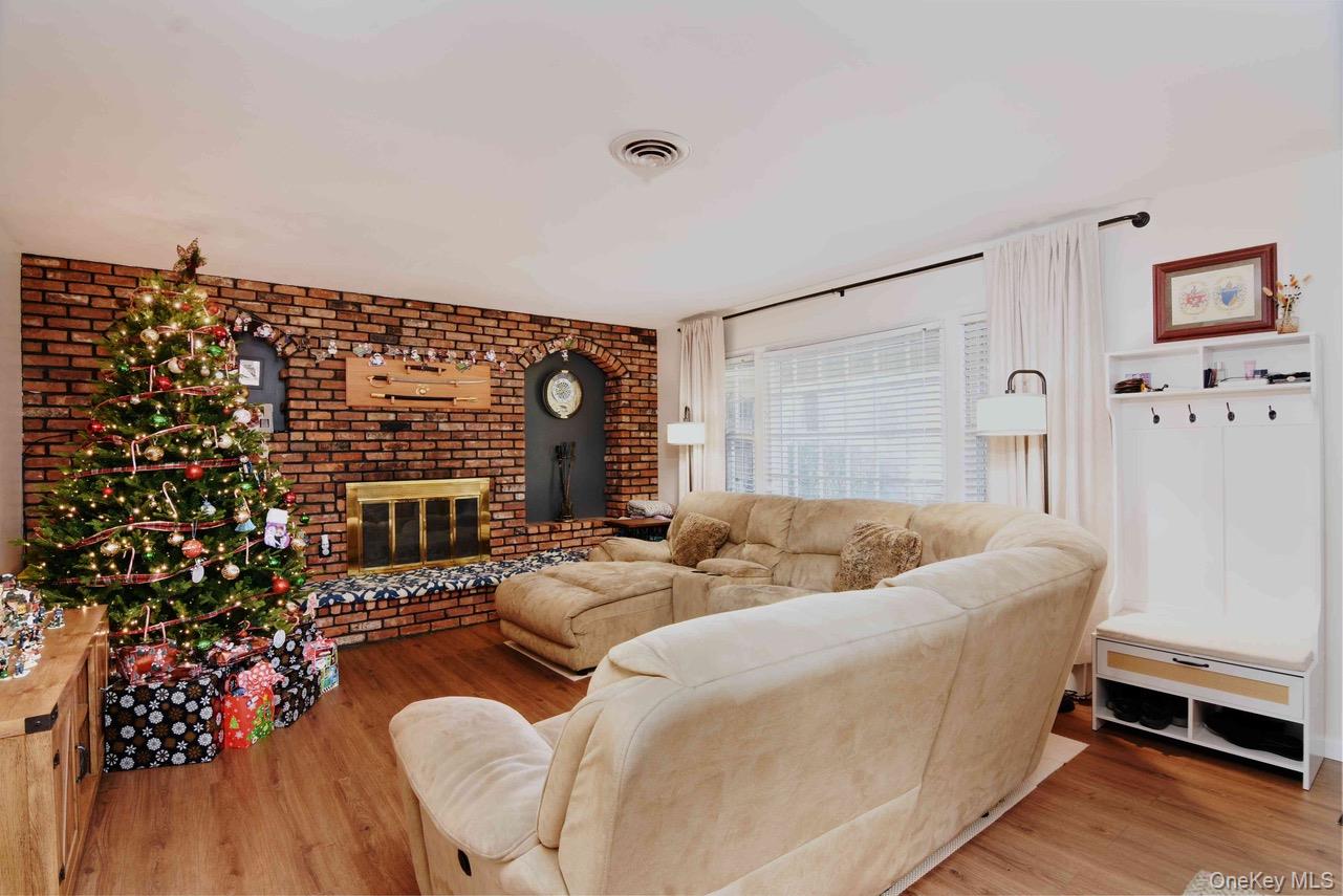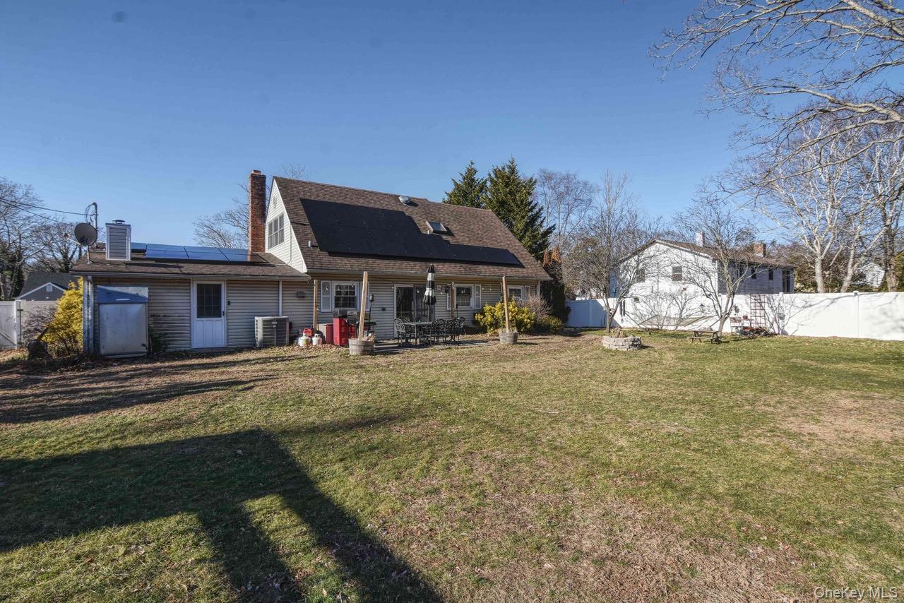 Introducing 5 Wintergreen Drive nestled in the W-section of Coram. This expanded cape features 4 bedrooms, 2 full baths, a wood-burning fireplace, and a spacious primary bedroom. The granite kitchen includes stainless steel appliances, and opens to a separate, convenient laundry room. Additional highlights include a newer hot water heater and boiler, central air conditioning, newer washer/dryer, new flooring, in-ground sprinklers, 220-amp electric, and 2 car garage. With the perfect balance of space, comfort, and location, this home truly has it all! Solar panels are leased