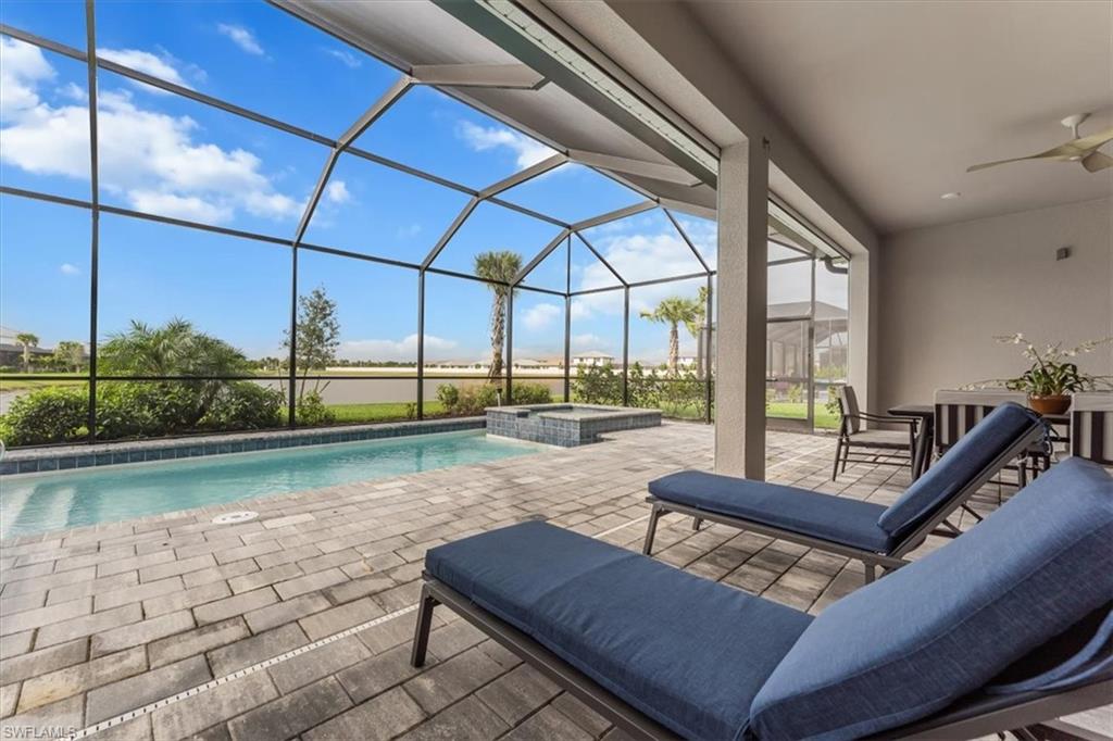 The Estate Home in The National Golf and Country Club stands out with its luxurious amenities, security features, and TURNKEY READINESS, making it an attractive choice for families and retirees alike. The beautiful 3 Bedroom plus Den, 3 Bath “Bougainvillea II” floorplan home is situated on a quiet cul-de-sac street on an extremely private lot with western exposure. The great room style floorplan with sliding glass doors to the extended covered lanai with a HEATED SALT WATER POOL AND JACUZZI and LAKE VIEWS make this home perfect for entertaining. Storm ready motorized roll down hurricane screens on the lanai openings are an attractive and secure option for those seeking a convenient lifestyle. A long list of special features include: A WHOLE HOME GENERATOR; a chef’s kitchen with quartz countertops; a sunny breakfast area with a view of the pool and lake; whole house window treatments; luxury vinyl plank flooring throughout, spacious owners' suite with access to the pool, walk-in shower, soaking tub, dual vanities, and private water closet; and two guest bedrooms located in a private wing of the home -each with their own full bath. This property also comes with a GOLF AND SOCIAL MEMBERSHIP, granting full access to all the amenities at the National Golf & Country Club with UNLIMITED golf opportunities all year round! The newly designed club center includes a full restaurant, a resort-style pool with a poolside Tiki Bar, tennis and pickleball courts, and a state-of-the-art fitness center. The home is TURNKEY FURNISHED, including brand new sheets, towels, and other essentials, making it ready for immediate move-in. The National Golf and Country Club is a gated community with 24/7 security and located in Ave Maria, home to Ave Maria University which adds seminars & sporting events to your many options. Drive less than an hour to Naples to enjoy white sandy beaches, cultural events, and fine dining.