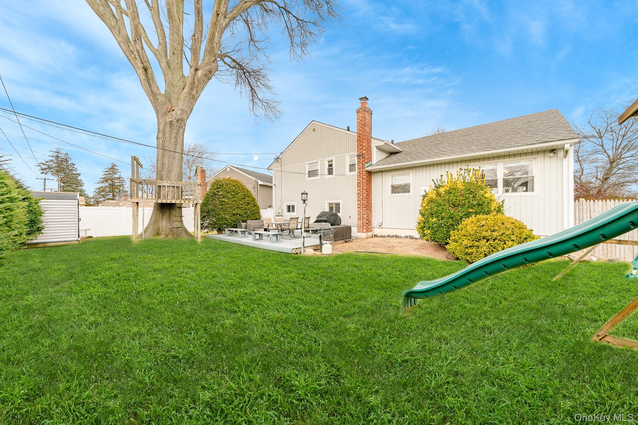 Welcome to this inviting 3 bedroom, 2 bath split-level home located in Wantagh, within the Levittown School District ( East Broadway Elementary, Salk Middle School and McArthur HS). The home features an updated kitchen with granite countertops and stainless steel appliances, seamlessly connected to a dedicated dining area that opens into the bright living room. A large picture window fills the space with natural light, creating a warm and welcoming atmosphere ideal for both relaxing and entertaining. The second level offers 3 bedrooms including a generous sized primary bedroom with en-suite bathroom. Hardwood floors add timeless appeal throughout the main living areas, while the lower-level den provides flexible living space and offers direct access to the fully fenced backyard, perfect for indoor-outdoor enjoyment. An attached one-car garage adds everyday convenience and additional storage. Centrally located and convenient to shopping, dining, parks, and major roadways, this well-maintained home offers comfort, functionality, and a prime location—an excellent opportunity in Wantagh. *** Taxes are being professionally grieved with an anticipated reduction of $2100 a year****