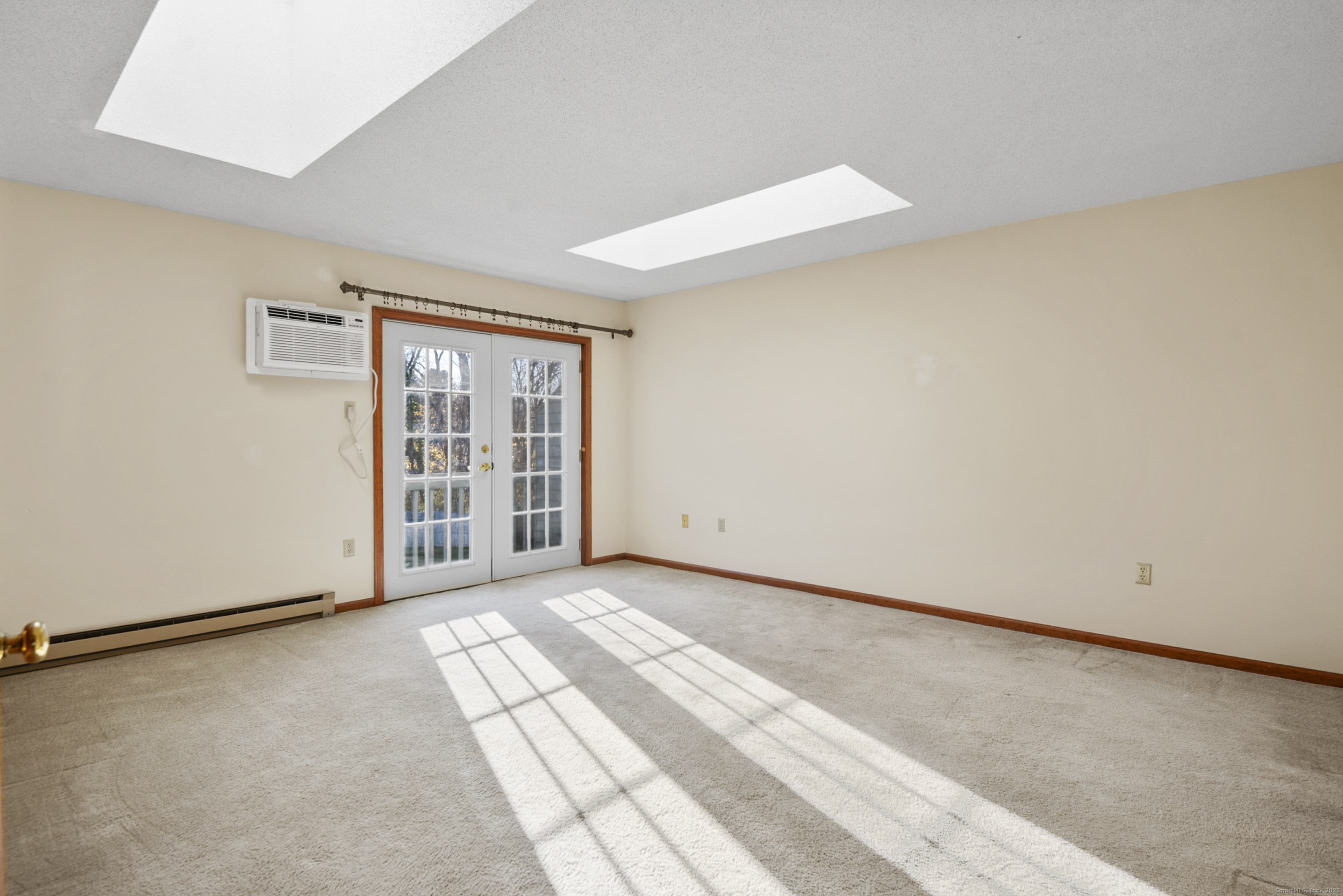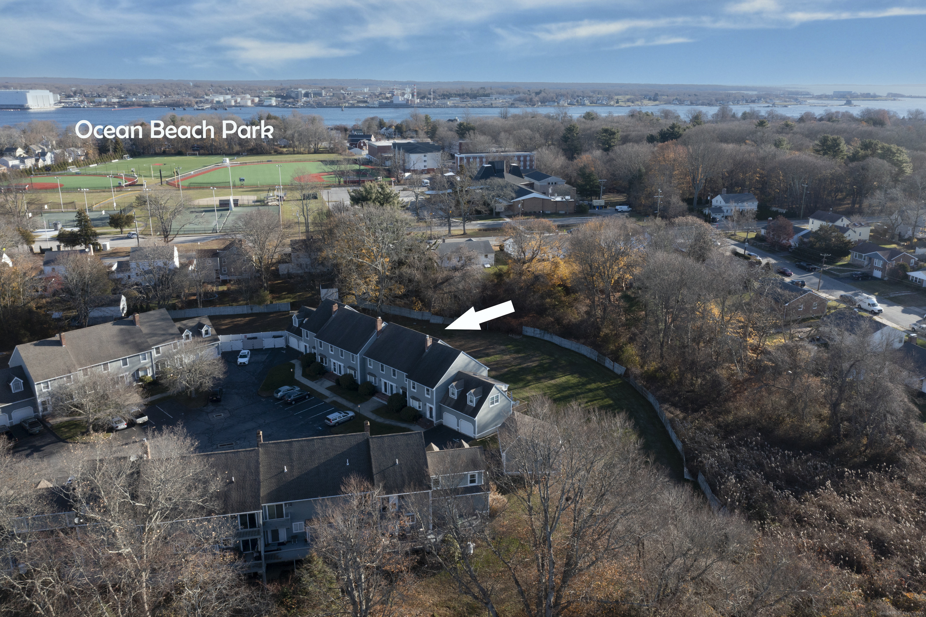 Here's a fantastic opportunity to move right into a spacious 2-bedroom, 1, 440 sq ft townhouse in the Ocean Park complex, conveniently located near all the essentials. The main level greets you with an expansive, open-plan living room featuring a cozy fireplace, perfect for relaxing evenings. This space seamlessly flows into the kitchen, equipped with modern appliances and ample cabinetry and a dining area with French doors that open to a private deck, ideal for outdoor enjoyment. A half bath and convenient laundry room complete the main level. Upstairs, the primary bedroom suite is a true retreat, offering doors to a private balcony overlooking the ample open space back lawn, a full bath, and a walk-in closet. The second bedroom, along with a separate full bath, completes the upper level, providing ample space and privacy. Two brand new wall A/C units have also recently been installed. The full basement is ready for your personal touches, whether you envision additional living space, a craft room, home gym or perhaps an office, there is ample space to do so. This unit also includes a detached 1-car garage #G-21 with a newer door opener and remote for your convenience. Located just a short drive from Pfizer, Electric Boat, the Coast Guard Academy, Mitchell College, L&M Hospital, shopping malls, and beaches, this townhouse offers both comfort and accessibility. Don't miss the chance to make it your own schedule a showing today!