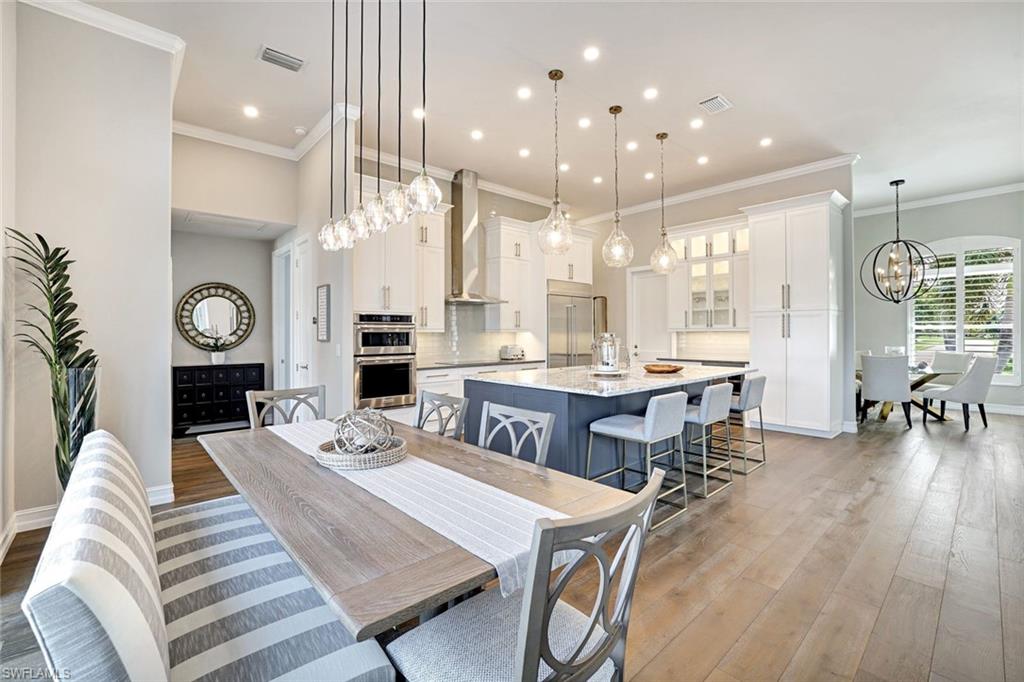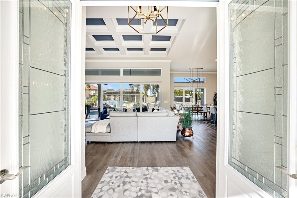 Experience luxurious coastal living in this newly renovated water-direct home at tropical Marco Island! Here you'll find fast boating access to the Marco River & Gulf through scenic Collier Bay. Situated on a 100' lot, the property includes a recently replaced dock with 3 lifts & additional lounging space right on the water. A new flat-tile roof, new impact windows & doors, new A/C, plus a comprehensive interior & exterior coastal renovation bring modern luxury throughout. The redesigned open layout showcases 12' ceilings, luxury wood flooring, new modern interior doors, an office, and an impressive chef's kitchen with 10' high cabinetry, luxury appliances, & a remarkable 9' long island with abundant pullouts. The primary bedroom suite features a custom accent wall & shiplap ceiling, electric shades, and a beautifully reconfigured bath with floor-to-ceiling cabinetry, extra storage, & plantation shutters. Guests will enjoy 2 bedroom suites with blackout shades & manual silhouette blinds, one suite with a slider to access the pool deck. Outdoor living is exceptional with a newly renovated lanai, wide picture-frame screen enclosure, electric Storm Smart screens, & stunning leathered marble tile across the lanai, pool deck, front porch, & stairways. You & your guests will enjoy the outdoor kitchen, pool & spa, & pool bath nearby. There is a 3-car garage with Floortex coating, slat walls, & plenty of storage. This extremely well-maintained residence along with perfectly manicured tropical landscaping complete this exceptional offering!