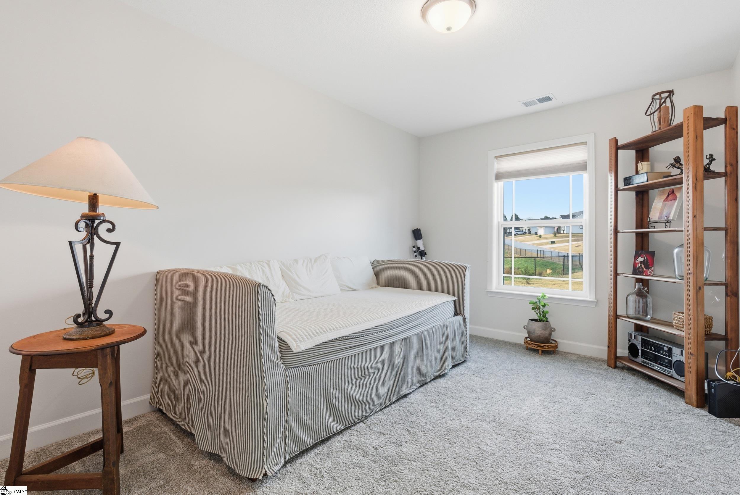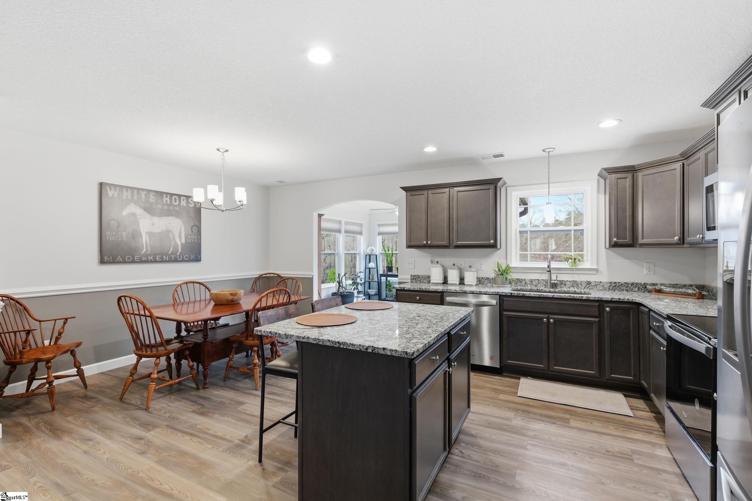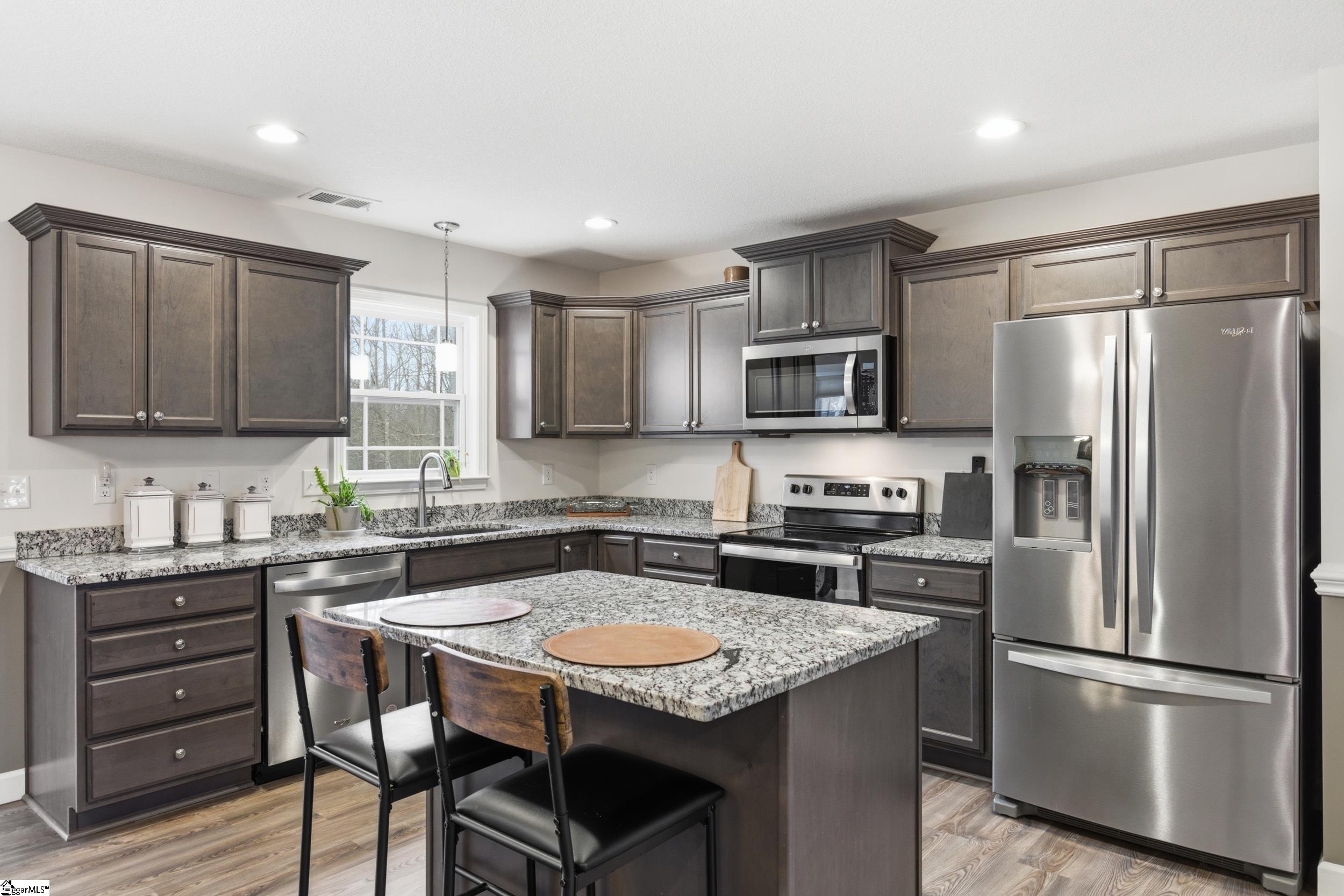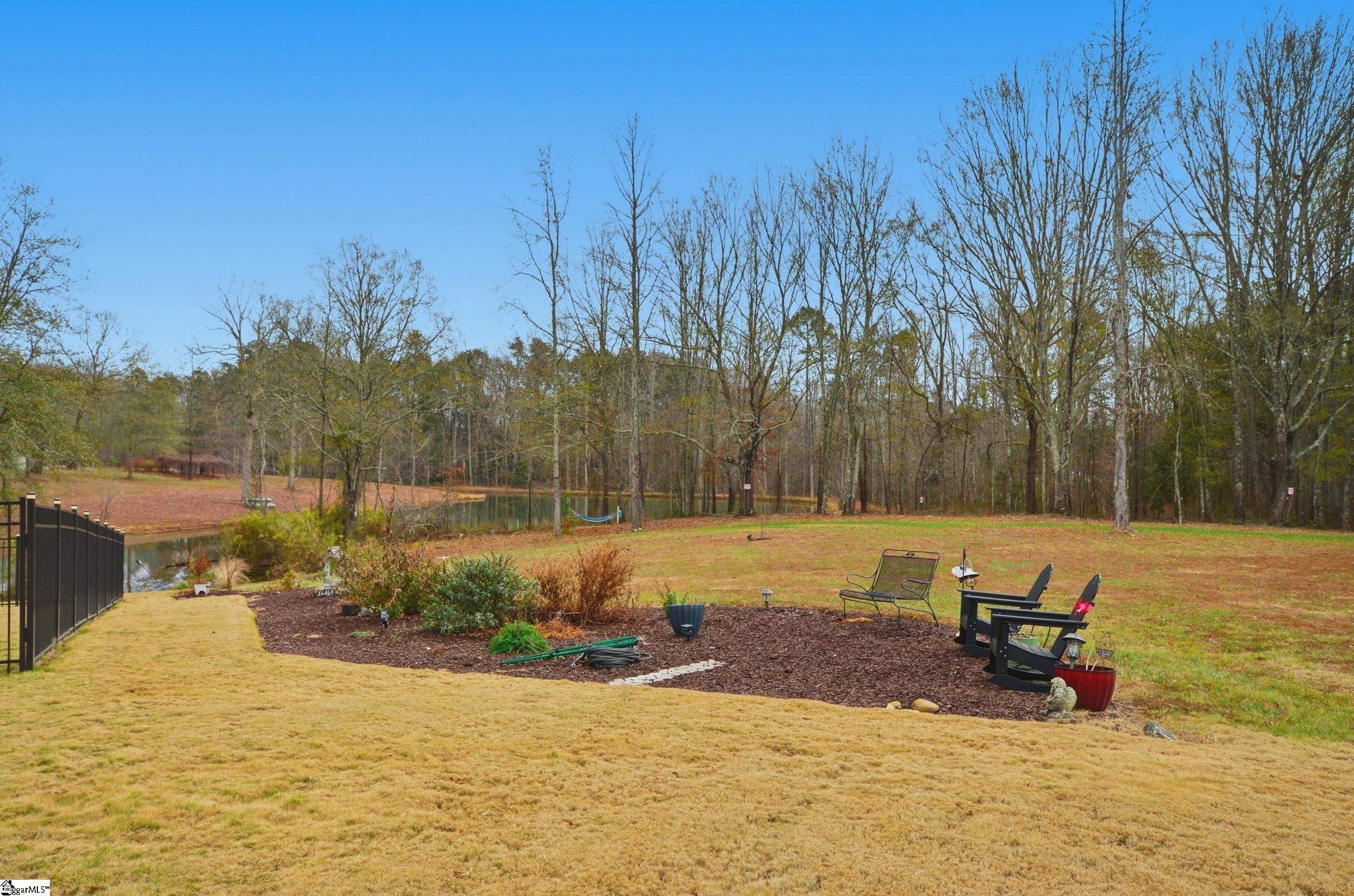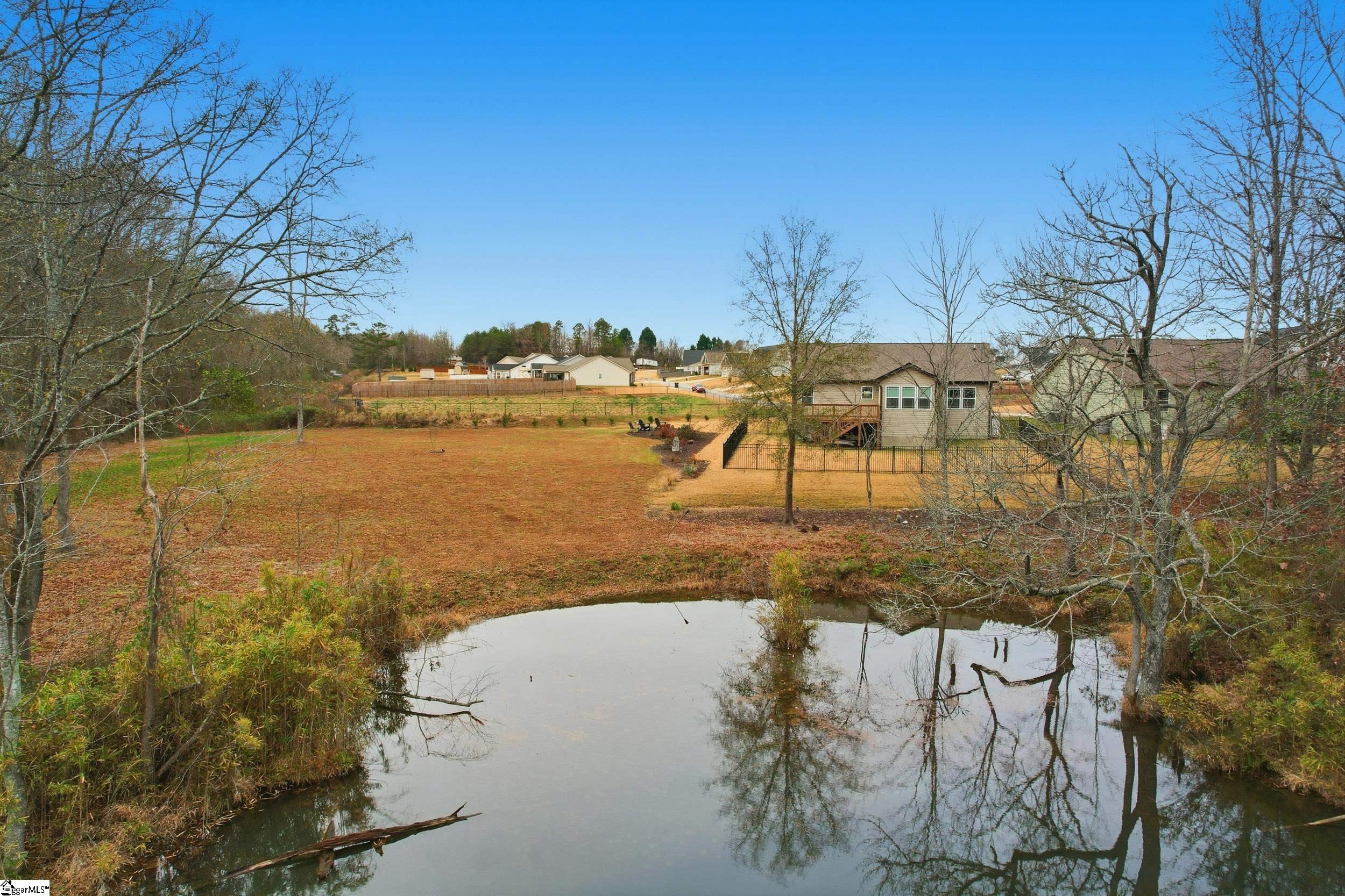 Welcome home to a truly special retreat—nestled on over half an acre at the end of a quiet cul-de-sac, this beautifully maintained 2-year-old single-family home offers 2 bedrooms, 2 full baths, and a dedicated office that easily functions as a third bedroom. The backyard backs to a serene pond, with sections of black wrought iron fencing, creating an inviting outdoor oasis perfect for BBQs, entertaining, or simply lounging in a hammock with your morning coffee. Inside, the split-bedroom floor plan ensures comfort and privacy. The primary suite features an ensuite bath and a spacious walk-in closet. Elegant tray ceilings with accent lighting elevate both the living room and primary bedroom. The living room itself shines with a stone gas-log fireplace, chair rail, and crown molding—ideal for cozy nights in. The kitchen is a showstopper with granite countertops, a center island, a closet pantry, and stainless-steel appliances- everything you need for everyday living and effortless entertaining. Luxury vinyl plank flooring runs throughout the main areas, with soft carpet in the bedrooms for added comfort. This lot and home are far from ordinary—a rare find you won’t want to miss.