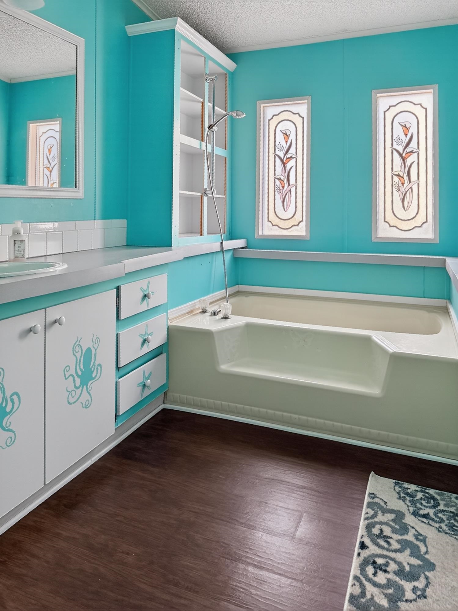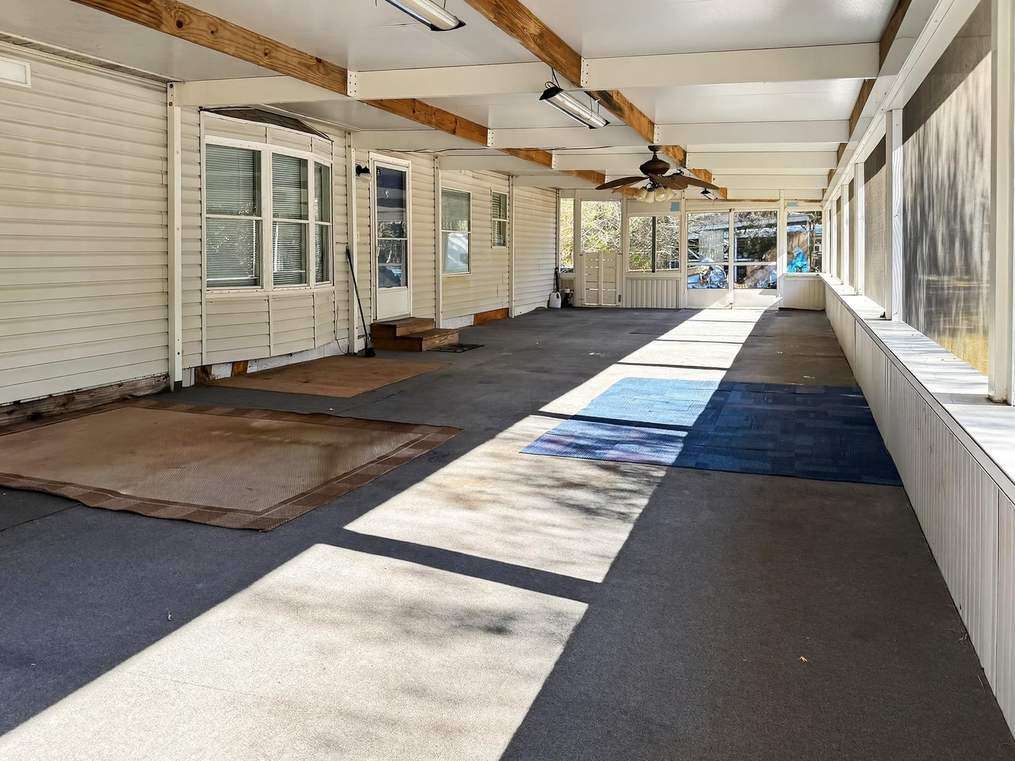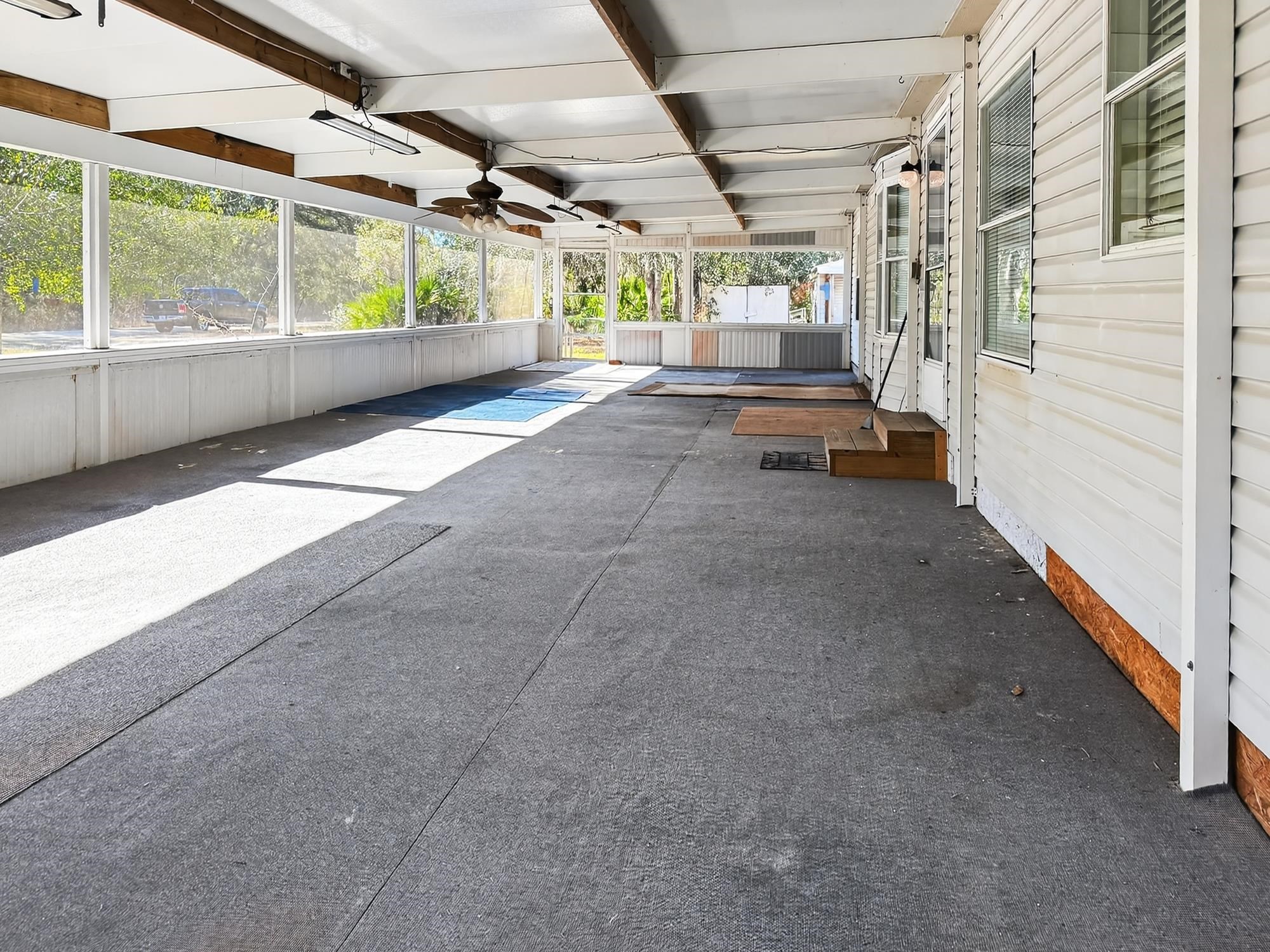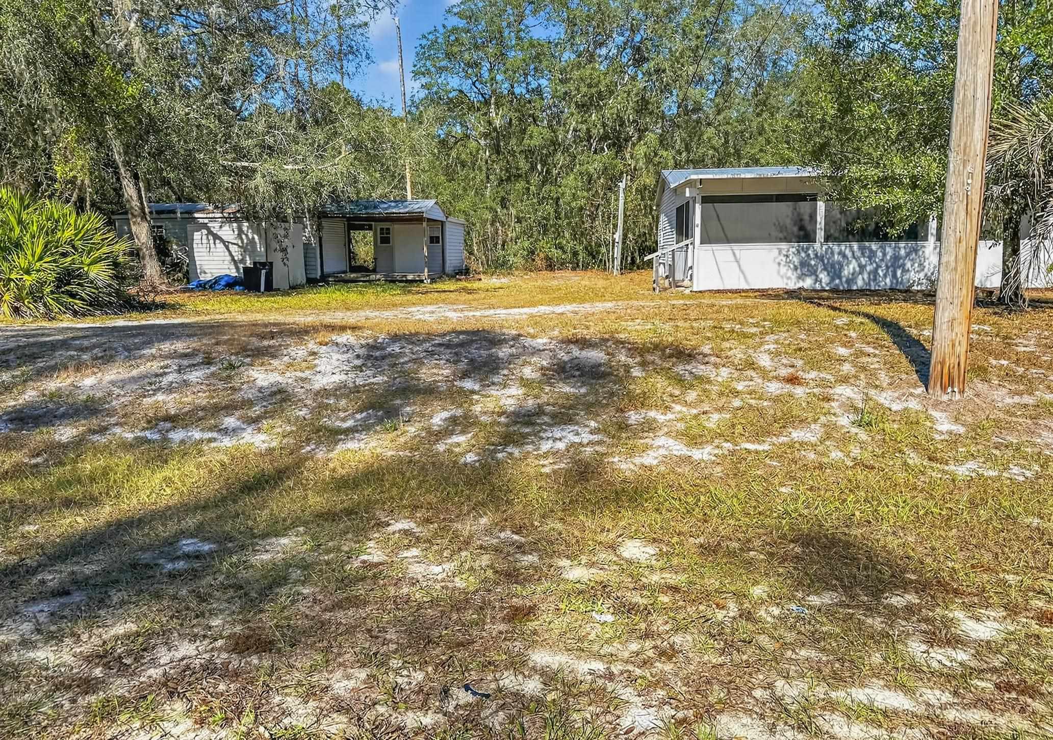 Double-wide mobile home with 3 bedrooms and 2 baths located on just under a half-acre in Interlachen. This home features a screened front porch that runs the full length of the house, offering great space to relax and enjoy the outdoors. The interior offers a functional layout with a spacious living area, a family room with a decorative (non-operational) fireplace, a kitchen with ample cabinetry, and a private primary bedroom with en-suite bath. A separate shed/workshop provides additional storage or workspace. Plenty of outdoor space for parking, gardening, or hobbies. Property is served by a shared well with the neighboring property; the home also has its own well head with an inoperable pump. A great opportunity for affordable living with room to spread out.