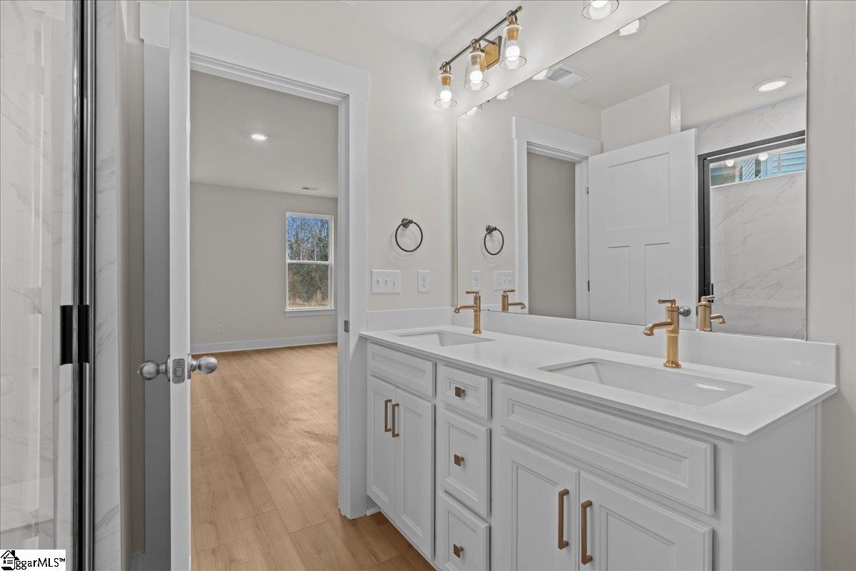 Welcome to Iris Meadows, where your dreams of summer fun and luxury living will come to life! Enjoy first-class amenities, including a community pool and relaxing cabana. The Parker is main floor living at its best! Entering your Craftsman style home from your covered front porch or two car garage you have 2 bedrooms and a full bath adjacent to the spacious foyer. As you come into the living room, you will love how open and bright the room is with the high ceilings and tall windows that give the room lots of natural light along with a gas fireplace. The chefs kitchen features beautiful white cabinetry, light Quartz countertops, center island for additional seating and prep space, tile backsplash, under cabinet lighting, and upgraded stainless steel gas appliances. Off the breakfast area there is a covered back porch overlooking your backyard. The Primary Suite is right off the living room and features double sinks, generous walk in closet and amazing tiled shower with seat and glass door. Up the Oak staircase is a spacious fourth bedroom with walk in closet and full bath. Smart home technology, energy-efficient construction, and a dedicated local warranty team ensure lasting convenience and comfort. Offering a pool, cabana, and craftsman-style homes. With easy access to I-26 and I-85, shopping, dining, and entertainment, and zoning for sought-after Spartanburg District 5 Schools, this community is the perfect place to call home. Come by today for your personal tour and make Iris Meadows your new home. See Sales Agent for additional pricing information.
