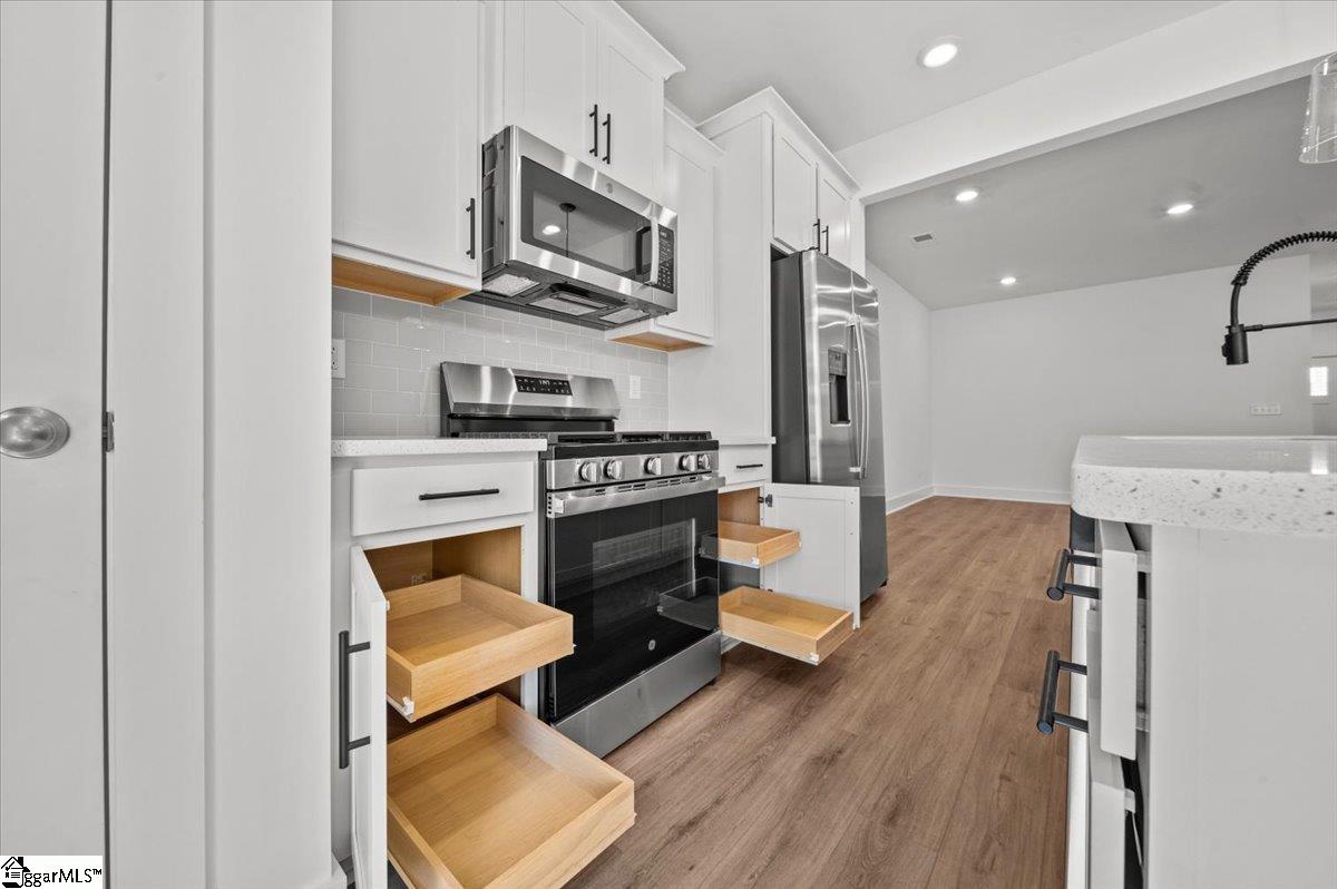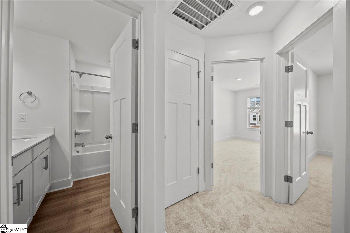 Welcome to Hickory Heights! New townhomes in Greenville County. we are a low-maintenance community ideally located just 10 minutes from both Downtown Greenville and Travelers Rest. SIMPLIFY YOUR MOVE! All homes feature the move-in package boasting a refrigerator, washer, dryer, dishwasher, microwave, in-sink disposal and white faux wood blinds. Spanning approximately 1587 square feet of thoughtfully planned living space, the Litchfield home has the ideal balance between spacious comfort and functional design. The bright foyer leads you into an open-concept layout combining the living, dining, and kitchen areas for seamless flow and effortless entertaining. The oversized island with white Quartz countertops and beautiful white cabinetry give the kitchen a bright feel along with a tiled backsplasch and stainless steel gas appliances including a gas range/oven and refrigerator. The patio off the kitchen allows for outdoor living and also offers extra storage in the outdoor closet. Upstairs you come to the large Primary Suite that features an ensuite bathroom with double vanities, generous walk in closet and 5 foot step in shower with glass door. Two more spacious bedrooms, full bath, and laundry area with washer/dryer included complete the second floor. Blinds are also included throughout the home! The 1 car garage and double parking pad give a convenient and versatile combination for car storage and parking. Smart home technology, energy-efficient design, and a dedicated local warranty team ensure long-term comfort and convenience. An added plus is lawn maintenance is included so you will have more time to enjoy your new home. Enjoy easy access to city life, local dining, outdoor recreation, and area attractions like the Swamp Rabbit Trail and Paris Mountain State Park. There are plenty of entertainment and dining opportunities around, being centrally located near shopping and restaurants in Downtown Greenville (5 Miles), Cherrydale (5 Miles), Traveler's Rest (7 Miles), Easley (10 Miles) and Berea. Just a 6 minute drive from the beautiful Furman University campus along with quick/convenient access to The Swamp Rabbit Trail. Spend your day visiting one of the four state parks in the nearby area (Caesars Head, Paris Mountain, Table Rock, and Jones Gap). Come by today for your personal tour and make Hickory Heights your new home!