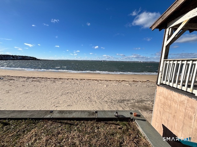 Experience refined waterfront living in this fully remodeled main-level apartment, thoughtfully positioned to offer privacy, comfort, and uninterrupted views of the Long Island Sound. Set well back from the road, the home creates a sense of quiet separation while remaining part of the sought-after Morris Cove setting. Inside, the residence features two generously proportioned bedrooms and one elegantly updated bathroom. Hardwood floors throughout provide a timeless foundation, enhancing the home's clean lines and cohesive design. The kitchen has been carefully renovated with both style and function in mind, anchored by a center island that adds visual appeal, flexibility, and everyday practicality. The true highlight is the home's direct waterfront setting. A private patio overlooks the water, offering a front-row view of the Sound and an ideal space for relaxing or entertaining. With private steps leading directly from the backyard to the beach, access to the shoreline feels effortless and exclusive. Modern comforts such as central air conditioning, abundant off-street parking, and a secluded setback location complete the offering. This residence delivers a rare combination of updated interior finishes and a remarkable coastal backdrop. A distinctive opportunity to enjoy waterfront living at its finest-schedule your showing today.