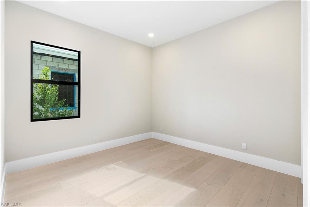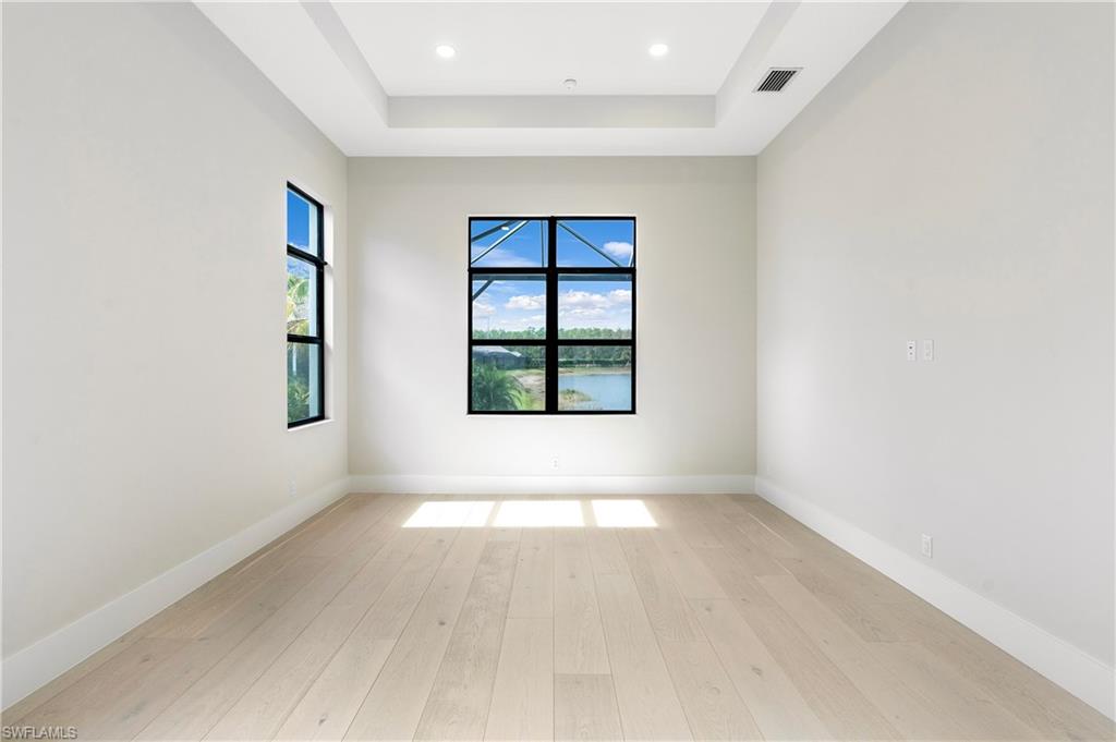 Throughout the home, the Paradise Island Collection of wide-plank European white oak flooring adds warmth and sophistication. Custom tile finishes accent each bathroom, while the fully upgraded laundry room features 30" cabinetry and Arvali Onyx Matte tile. Solid-core doors and LED low-profile canless lighting in all bedrooms and the den contribute to the home’s refined feel.