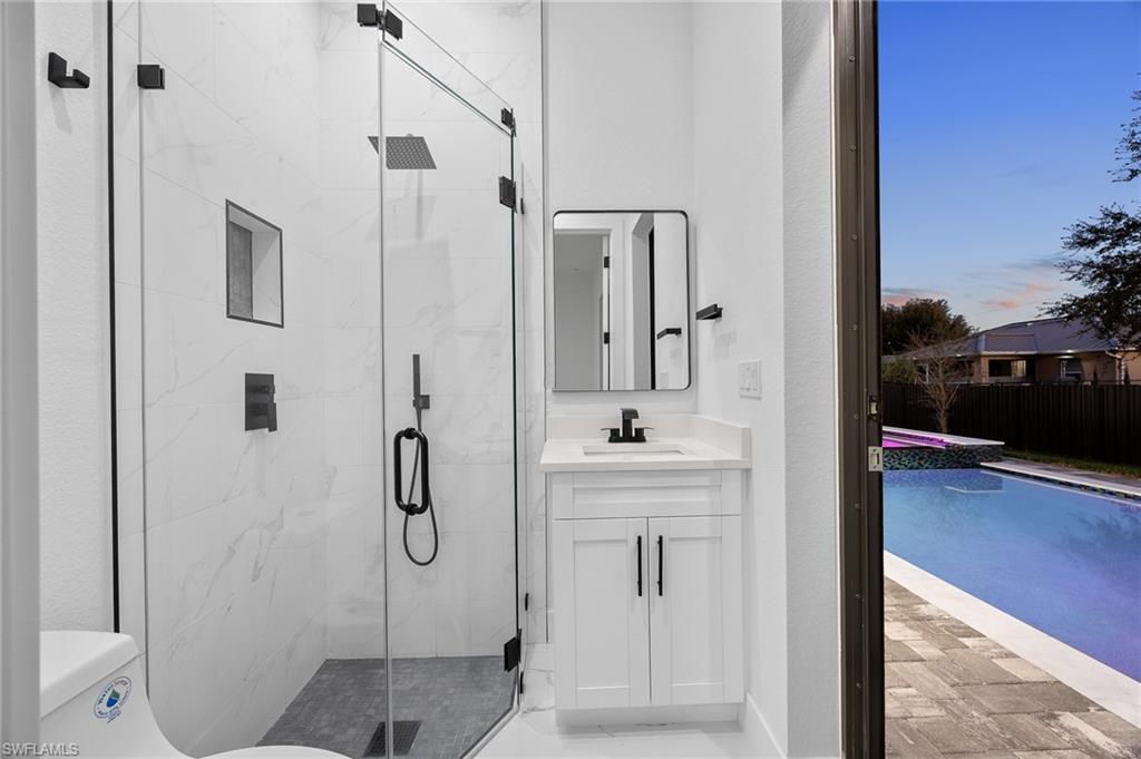 Step outside to an expansive 0. 35 acre fenced triple lot, a standout feature rarely available in Cape Coral. The backyard is designed for outdoor living and entertaining and includes a heated pool and spa, outdoor kitchen, water feature, outdoor shower, and covered lanai with ceiling fans. With three combined lots, there is ample room for future expansion, additional storage, or enhanced outdoor amenities.