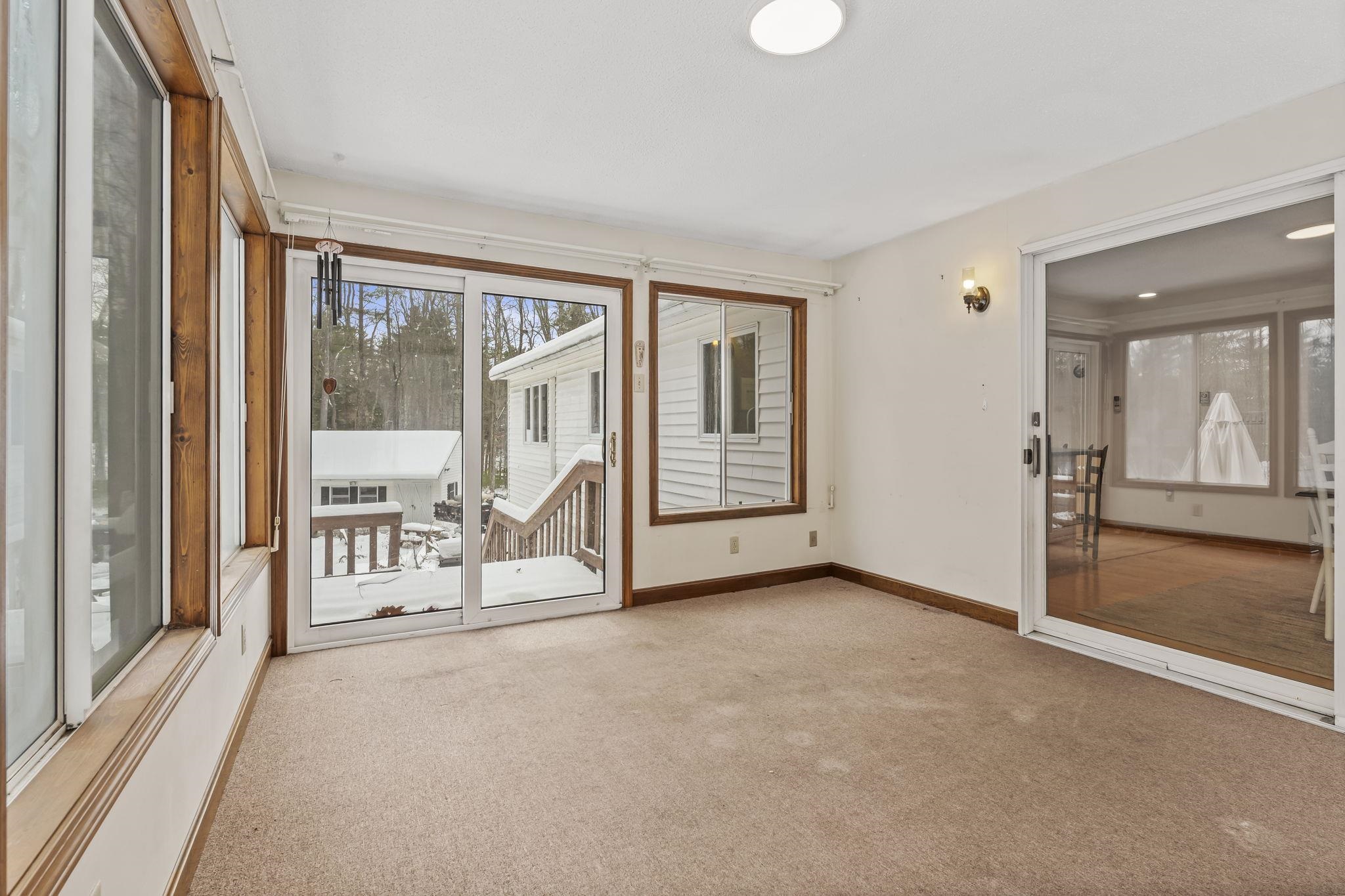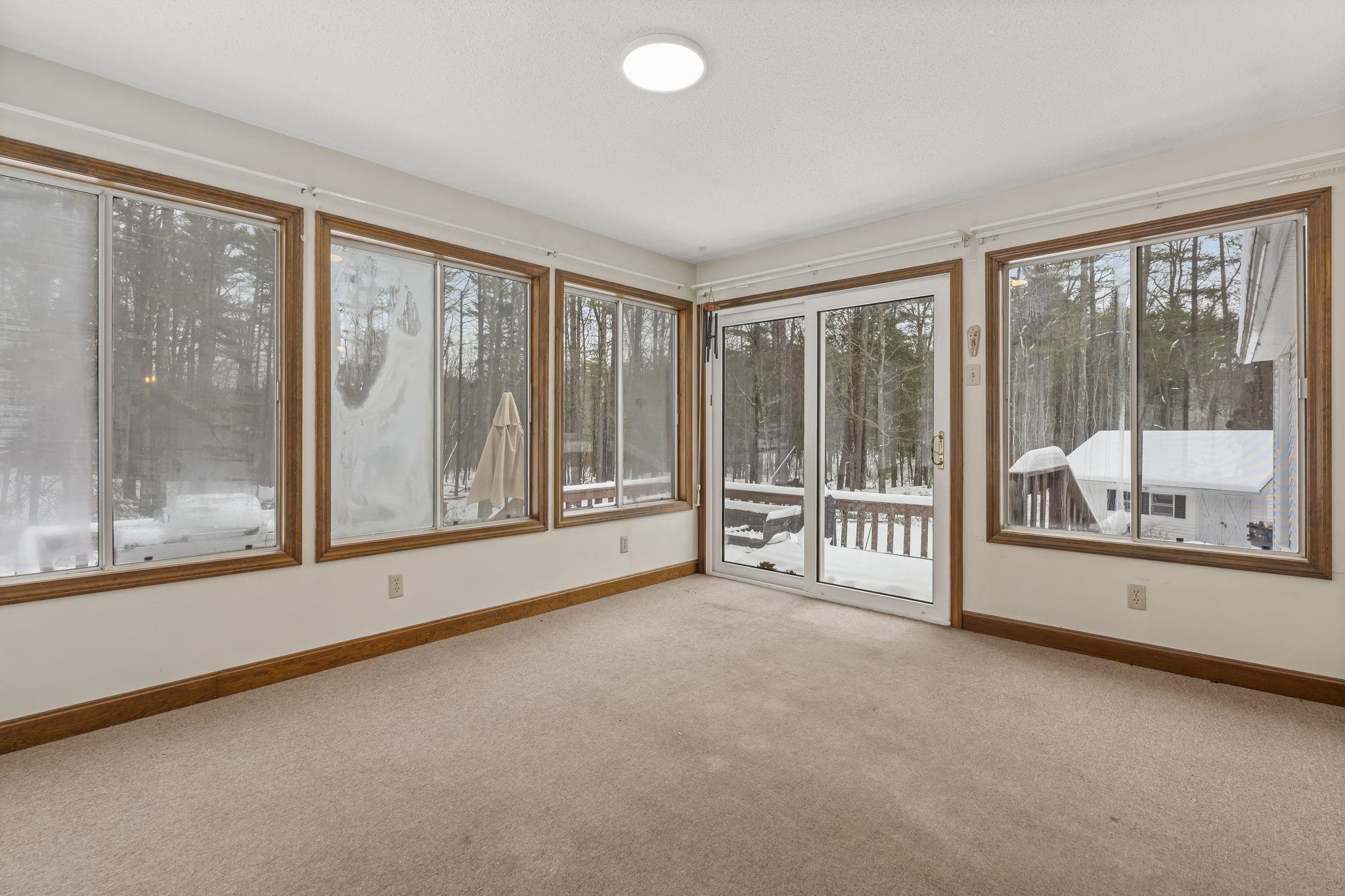 Located in Bow, which is known for its highly rated school system this home is set on over 7 acres of land. Key features include new carpets, a whole-house water filtration system, and solar panels just installed in 2022 that will be fully paid off at closing, providing an eco-friendly and cost-effective solution. This home offers a cozy fireplace for winter warmth, a seasonal porch with wooded views, and an expansive rear deck ideal for outdoor entertaining. Additionally, the finished basement provides extra space for customization. With its prime location and range of features, this property presents a compelling opportunity for buyers! Come check it out for yourself, showings begin Friday 12/19
