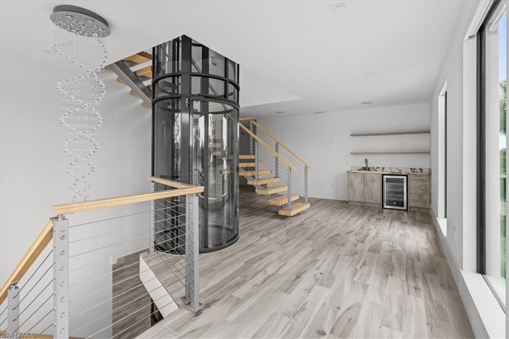 Expansive modern residence offering 4 bedrooms and 6 bathrooms with thoughtfully designed living and entertaining spaces throughout. Features include two laundry rooms, a 3-car air-conditioned garage, second-floor wet bar, and multiple indoor-outdoor living areas. The chef’s kitchen is equipped with top-tier appliances, custom cabinetry, and generous workspace, opening seamlessly to the main living areas with soaring ceilings and refined finishes. A private elevator services all levels, including a fully built-out rooftop retreat featuring an outdoor summer kitchen, cabana bath, and water views—ideal for elevated entertaining. Outdoor amenities include a resort-style pool and spa, covered entertaining areas, and lush landscaping. Built with concrete block construction, impact-resistant windows and doors, and premium materials throughout. Ideally located minutes from the Gulf beaches, Venetian Village, and Fifth Avenue South, this move-in-ready home offers luxury living in one of Naples’ most sought-after neighborhoods.