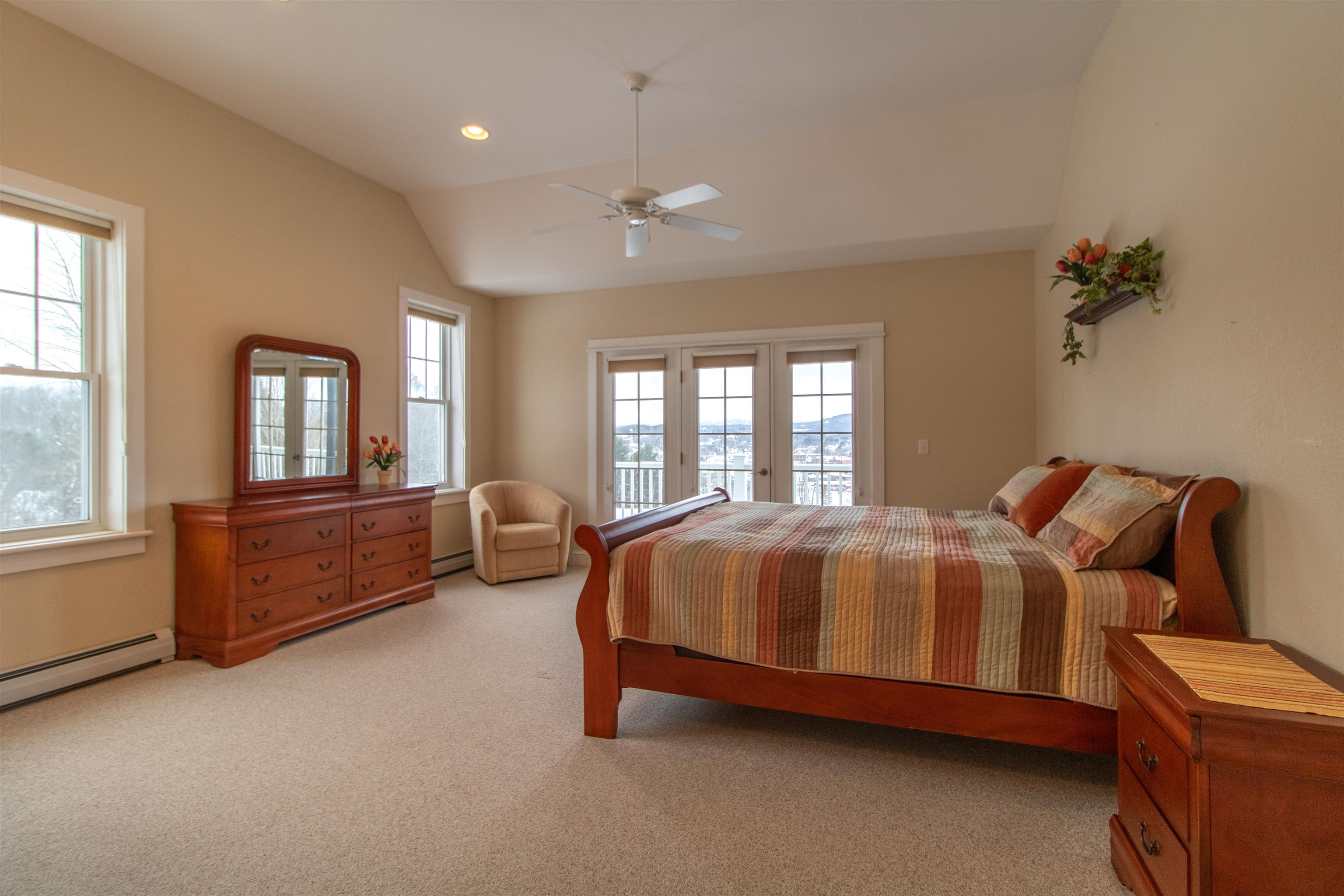 Experience luxurious, low-maintenance living with stunning views of Lake Memphremagog and the surrounding mountains. This top-floor, condo offers convenient elevator access and sweeping sunset views. The open concept layout is filled with natural sunlight. It features a spacious living area that opens to a covered porch, also accessible from the primary suite, perfect for relaxing and enjoying the scenery. The kitchen boasts granite countertops and high-end finishes, complemented by beautiful hardwood and tile flooring throughout. The condo offers three bedrooms and four bathrooms, with the primary suite featuring a private bath and a relaxing soaking tub. Both front and rear covered porches enhance outdoor living. Additional highlights include two separate one-car garages, one of which is oversized with extra storage space. Conveniently located near Newport Country Club, the bike path, and VAST trails, this exceptional condo presents a rare opportunity to enjoy upscale living with panoramic views in a prime location.