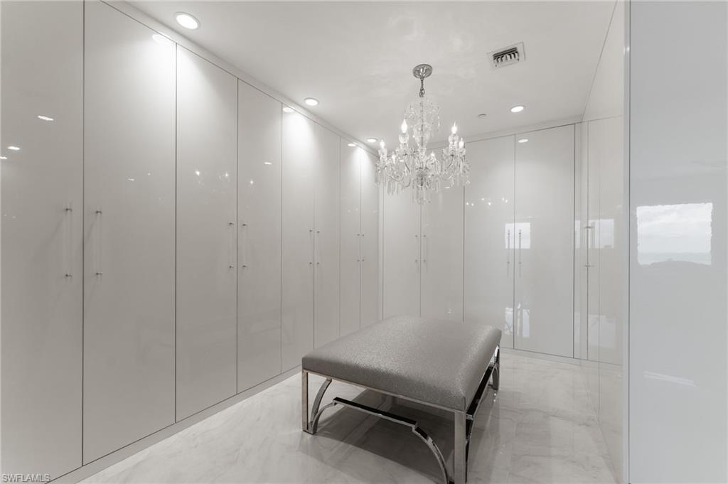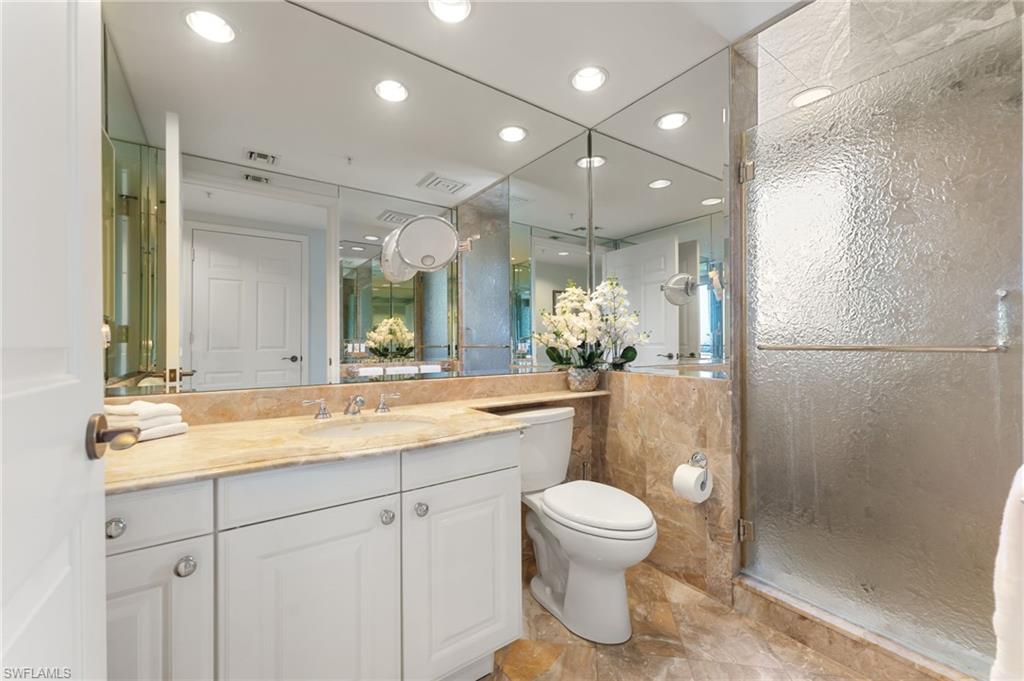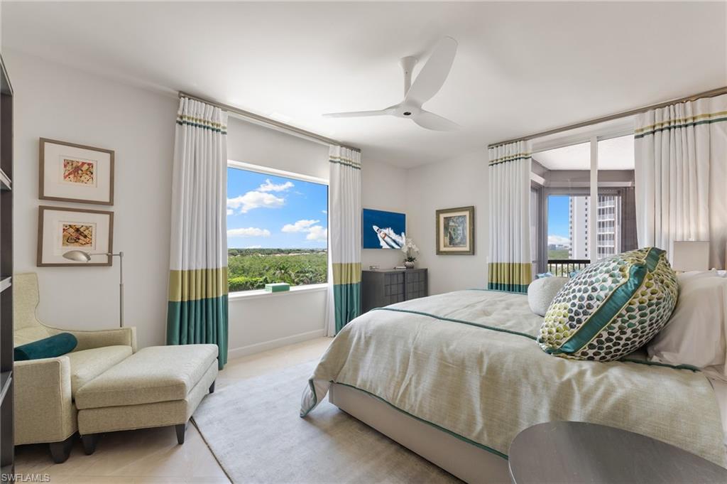 Perfectly positioned on the coveted southwest corner of the Biltmore at Bay Colony, this exceptional three-bedroom plus den residence in the sky sits directly on the crystalline Gulf coastline, offering breathtaking panoramic views and a private poolside cabana. From the moment you enter, the eye is drawn through the great room to the expansive balcony beyond—an ideal setting for entertaining or simply soaking in the endless sea and sky. Updated interiors are thoughtfully curated to reflect the serene hues of the Gulf, creating an elegant coastal ambiance complemented by the soothing sounds of the surf. The spacious, light-filled kitchen is a standout, featuring Taj Mahal quartzite countertops, custom modern cabinetry, and gourmet appliances, all surrounded by walls of glass that flood the space with natural light. Guests will enjoy two generous ensuite bedrooms, each with access to the southeast-facing lanai—perfect for quiet mornings and soft sunrise views. The primary suite is a true retreat, offering direct Gulf views, a beautifully appointed bath, and a perfectly designed walk-in closet. With neutral finishes throughout, abundant space for family and friends, and an ideal seventh-floor elevation capturing both beach and open Gulf vistas, this residence truly has it all. Biltmore at Bay Colony offers a resort-style lifestyle with a luxurious pool, state-of-the-art fitness center, and 24-hour security, all within the privacy of the Bay Colony gates. Residents also enjoy exclusive access to the private beach club, tennis facilities, and more—delivering the ultimate Naples coastal living experience