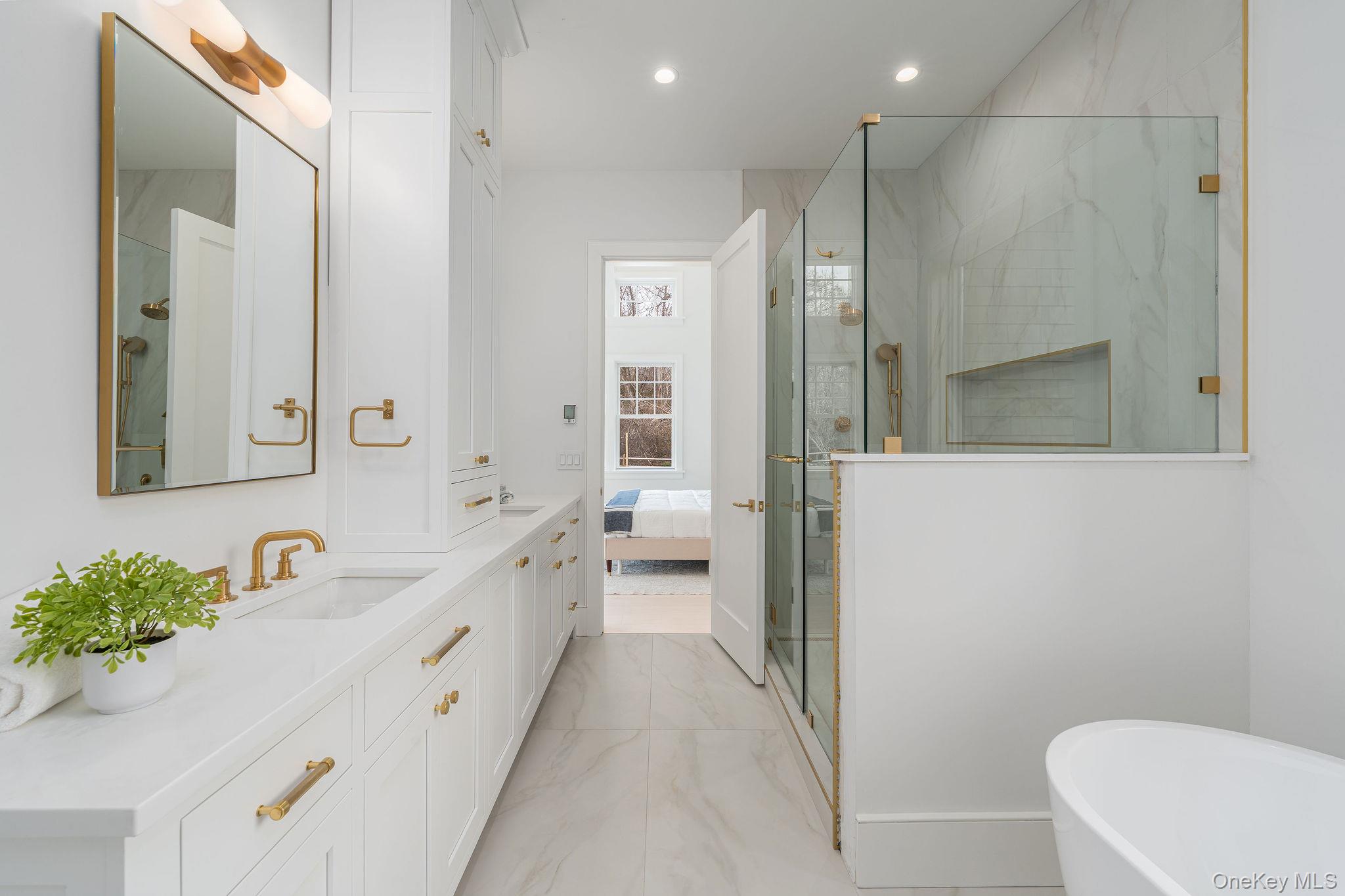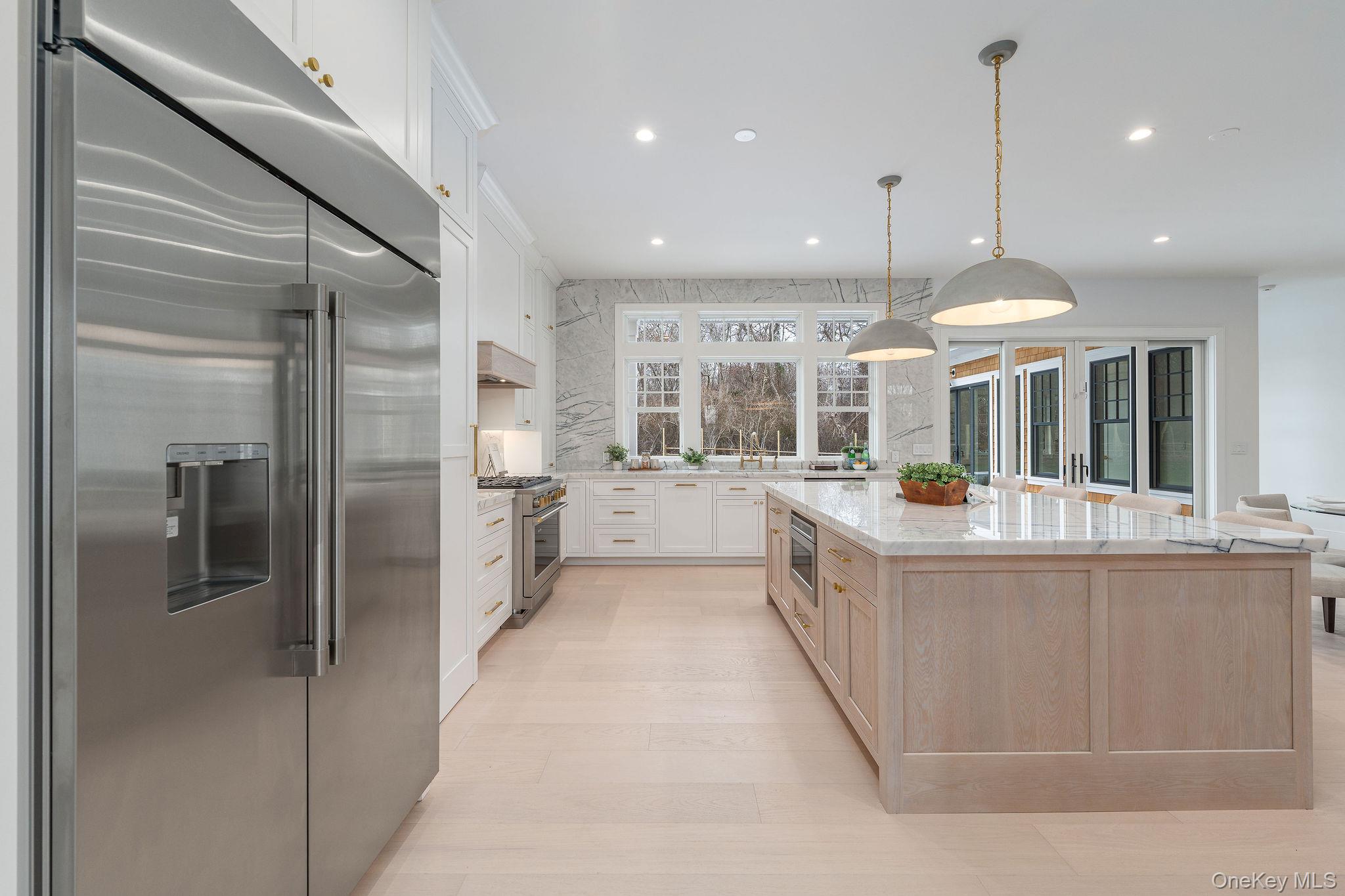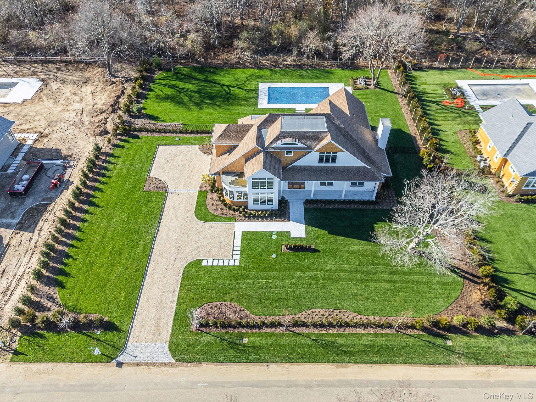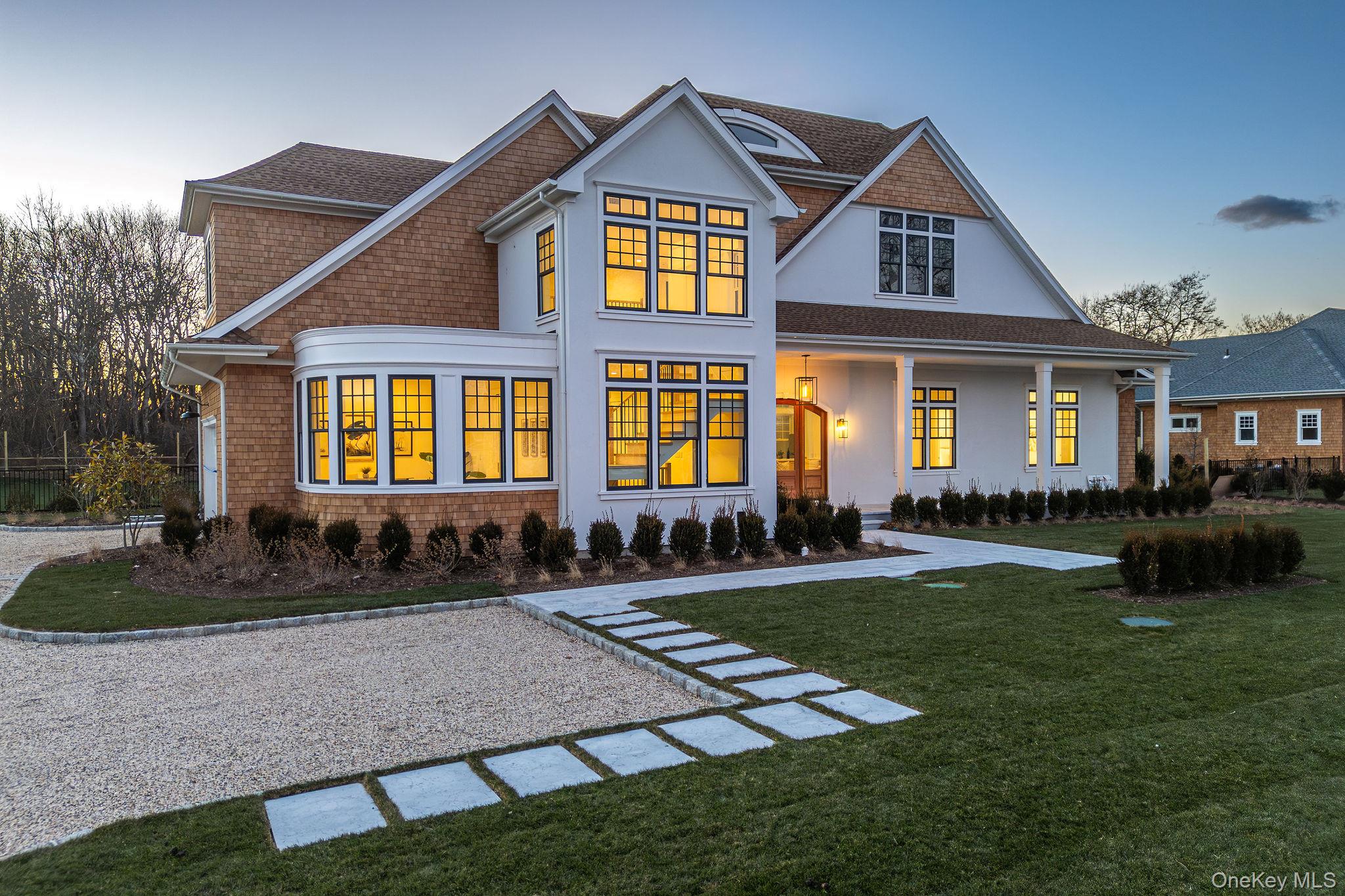 Welcome to the Laurel Collection by Marrcon. New Luxury Construction located in the heart of the North Fork's Town of Southold. This home is situated on . 80 acres & boasts 4, 327 SF of living space with 4 bedrooms and 4. 5 baths and combines clean lines of modern design with the allure of North Fork chic. This home comes with Authentic Western Red Cedar Shingle siding and a stucco accented stair tower that makes the grand foyer rise into the second story. There are 9ft high ceilings on the first and second floors in addition to vaulted and coffered ceiling details with 8-1/2” white oak floors throughout. Enjoy two bedrooms on the first-floor which includes a primary bedroom with a generous walk-in closet and private access to the masonry patio opening to the backyard pool and garden. The great room contains a 46” linear gas fireplace and is open to the well-appointed kitchen which includes custom inset cabinets, marble countertops and high-end GE Monogram appliances with a wet bar. The second floor has two bedrooms both ensuite with large tile and custom vanities. The second floor also contains a beautiful family room and a large laundry room with custom cabinetry and a sink. The basement can be finished to suit which includes 9’ ceilings. Enjoy the incredible entertainment ready backyard featuring a 20X40’ heated gunite saltwater pool, including automatic pool cover with a Napa Stone marble patio. The secluded backyard includes custom designed landscaping and masonry by our Landscape Architect.