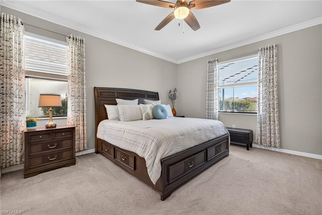 Discover resort-style living in this stunning one-story home located in the highly sought-after Arborwood Preserve community of Fort Myers. This spacious 3-bedroom, 3-bath residence features an inviting heated pool and spa, perfect for relaxing or entertaining on your extended lanai. The second bedroom features en-suite bathroom suitable for guests or multi-generational living. Enjoy peace of mind with accordion shutters on all windows and the front door, plus hurricane and sunscreen shades on the lanai for added comfort and protection. Inside, you’ll find upgraded tile flooring throughout the main living areas and new ceiling fans in every room. The lanai is enhanced with custom lighting, creating the perfect setting for evening gatherings. Neutral color palette throughout. Shows like new! Located in a vibrant, gated community with resort-style amenities including a clubhouse, outdoor bar & grill, fitness center, movie theater, and tennis, bocc, e and pickleball courts — this home offers the perfect blend of luxury, comfort, and Florida lifestyle.