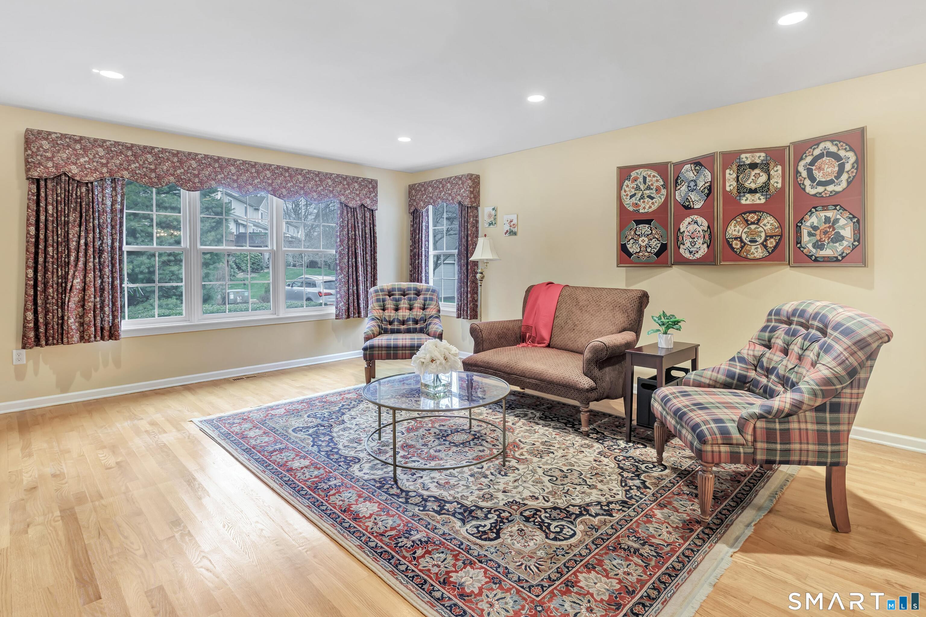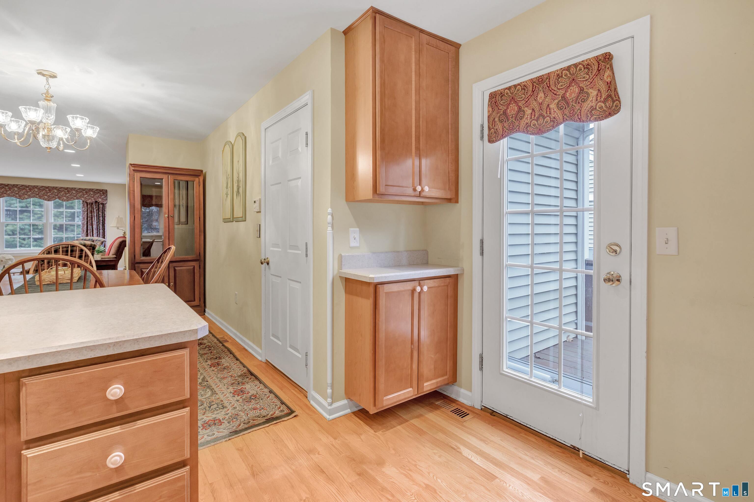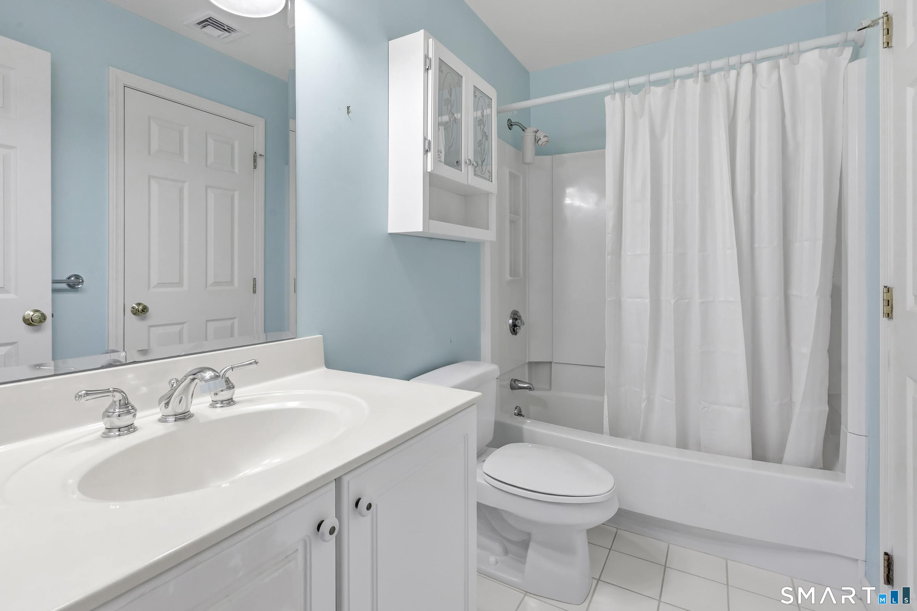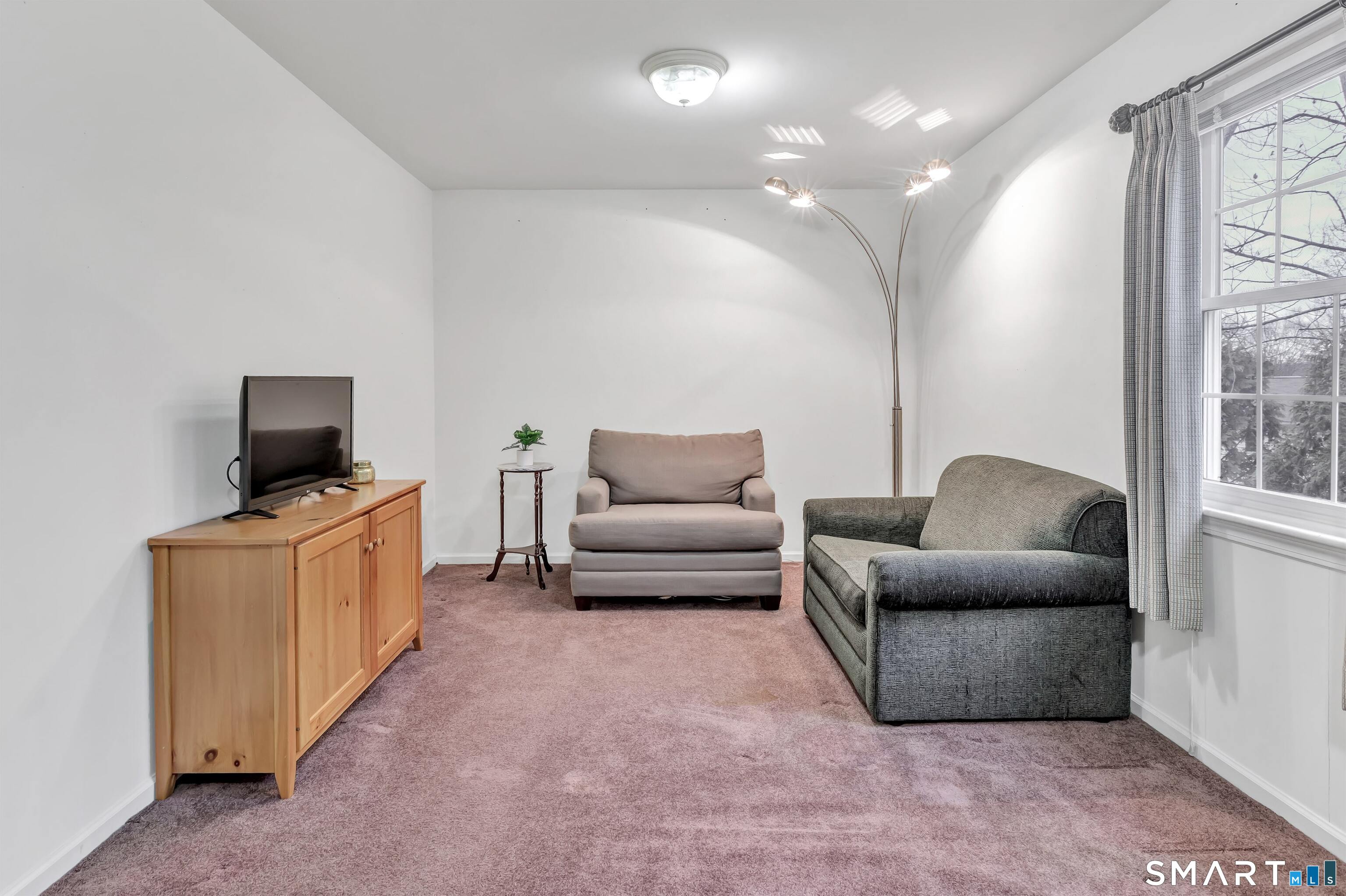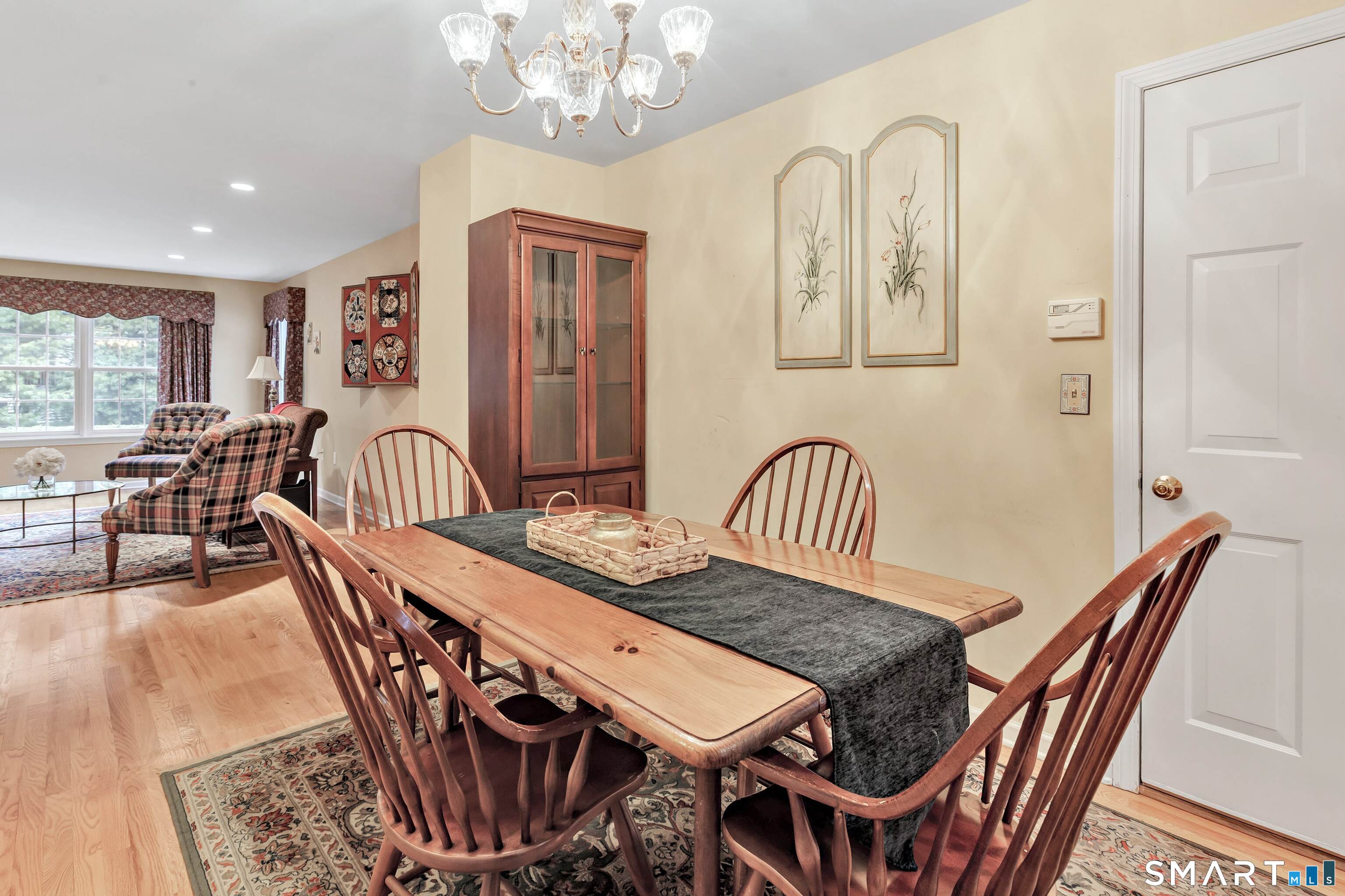 From the moment you step onto the covered front porch at 8 Hawthorne Ridge, there is a sense of privacy and quiet that defines this well-kept 55+ community. The foyer opens into the main living space, where natural light fills the room thanks to the home's end unit position. The living room flows effortlessly into the dining area and kitchen; here, a breakfast bar offers seating, while a window over the sink looks out to a private, tree-lined backdrop. Just off the kitchen, a deck overlooks greenery, providing a peaceful setting for morning coffee or quiet evenings outside. The main level also features a primary bedroom with a full bath, a half bath & stacked laundry closet. Upstairs, the second bedroom is complemented by a full bath, walk-in closet, and a large, flexible bonus space that works well as a home office or sitting room. A pull down attic provides extra storage. The walkout LL offers 988 sq ft of unfinished space and opens directly to a quiet backyard. Whether used for storage or future customization, this level adds valuable potential. Add'l features include a 1 car attached garage and a location that feels tucked away while remaining close to I-95, the Merritt Parkway, shopping, dining, and daily conveniences. With just 39 units, this community offers a peaceful, private setting where pride of ownership is evident. For those looking to downsize while maintaining comfort and flexibility, 8 Hawthorne Ridge offers a welcoming place to settle into your next chapter.