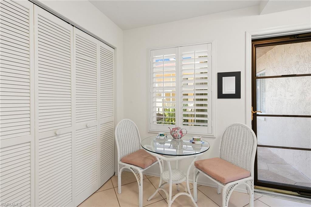 Enjoy immediate use of your new home in Naples this winter. Located in Foxfire Golf and Country Club, a premier bundled golf community, this furnished 2-bedroom, 2-bath residence offers direct access to 27 holes designed by Arthur Hills. The move-in-ready interior features impact-resistant windows, tile flooring throughout, and a screened lanai with glass sliders to enjoy the cross breeze. Additional highlights include plantation shutters, an updated air conditioning system installed in 2024, upgraded bathroom vanities with granite countertops, and a newer in-residence washer and dryer. Both bedrooms offer golf course views, and the spacious primary suite includes a walk-in closet. A nearby elevator and covered carport provide added convenience. Foxfire amenities include an elegant clubhouse, state-of-the-art fitness center, tennis courts, bocce, an Olympic-size pool, spa, several satellite pools, three dining venues, and vibrant social activities. Just minutes from historic downtown Naples, upscale shopping, performing arts centers, medical facilities, and Gulf beaches. This home is ready for the winter season. Luxury and value at this level are increasingly rare.