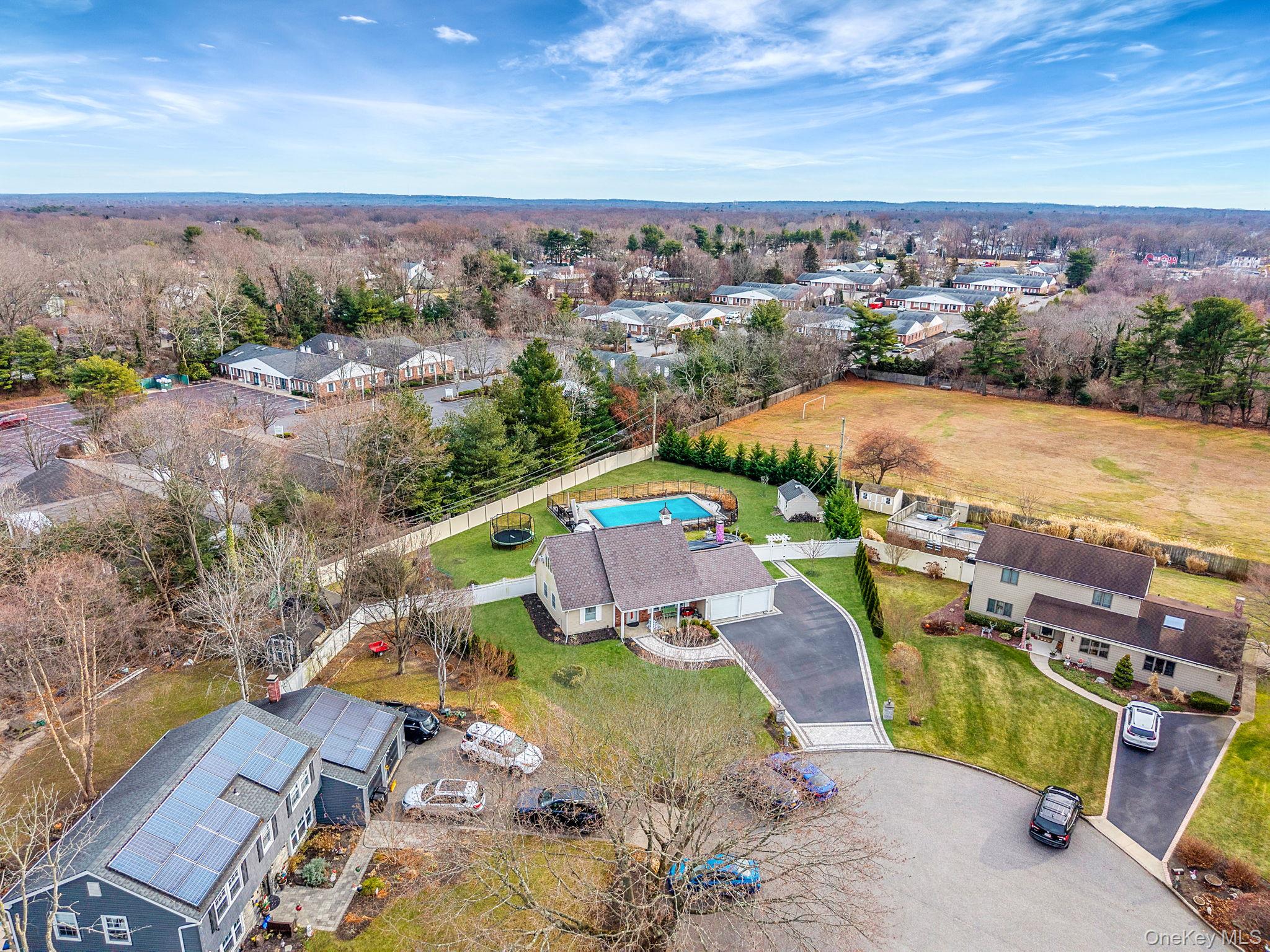 Welcome to 10 Pickwick Court, a well-maintained, Turn Key Cape Cod–style residence located on a quiet court in Stony Brook within the desirable Three Village School District. Built in 1967, this 4-bedroom, 2-bathroom home offers a functional, modern layout, thoughtful updates, and a spacious property ideal for comfortable everyday living and entertaining. The first floor features two bedrooms and full bathroom, an updated galley kitchen with granite countertops and ENERGY STAR–qualified appliances, a dry bar, and an open dining and living area with recessed lighting throughout. The home also includes a den, providing flexible space for a home office or additional living area. Vinyl flooring runs throughout much of the home for durability and ease of maintenance. Home was recently renovated. Upstairs, you’ll find two bedrooms and a second full bathroom, offering ample space for family or guests. Additional highlights include a laundry room on the main level, an electric fireplace, attic storage, baseboard heating with oil and ENERGY STAR–qualified windows and doors. Love to host, Love to have backyard parties?! The backyard offers full entertainment - a fenced yard as well as a wraparound fence for the in-ground, saltwater pool and pool cover—connected brick patio with firepit --perfect for outdoor enjoyment. The home sits on approximately half an acre and includes a two-car garage, a private extended driveway, and a covered front porch. The property also features leased solar panels, public sewer and water, oil heat (oil tank above ground), 9 zone inground sprinkler system and PSEG electric service. Conveniently located near major roadways, shopping, dining, and Stony Brook University, this home combines location, space, and practicality in one complete package. Roof updated: 2015 Pool and Patio: 2022 Furnace: 2018 Chimney Box replaced: 2014 200 amp Electric Tankless Water Heater: 2014 Kitchen Appliances: 2017 Kitchen Renovation: 2017 LG Washer and Dryer: 2010 Solar Panels installed: 2015 Slab Foundation . 50 Acre lot 1600 Sq ft Living Area